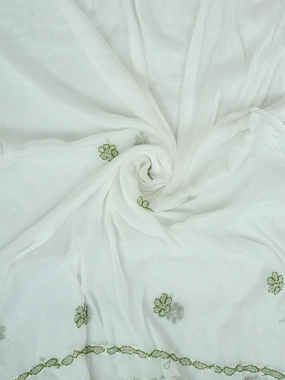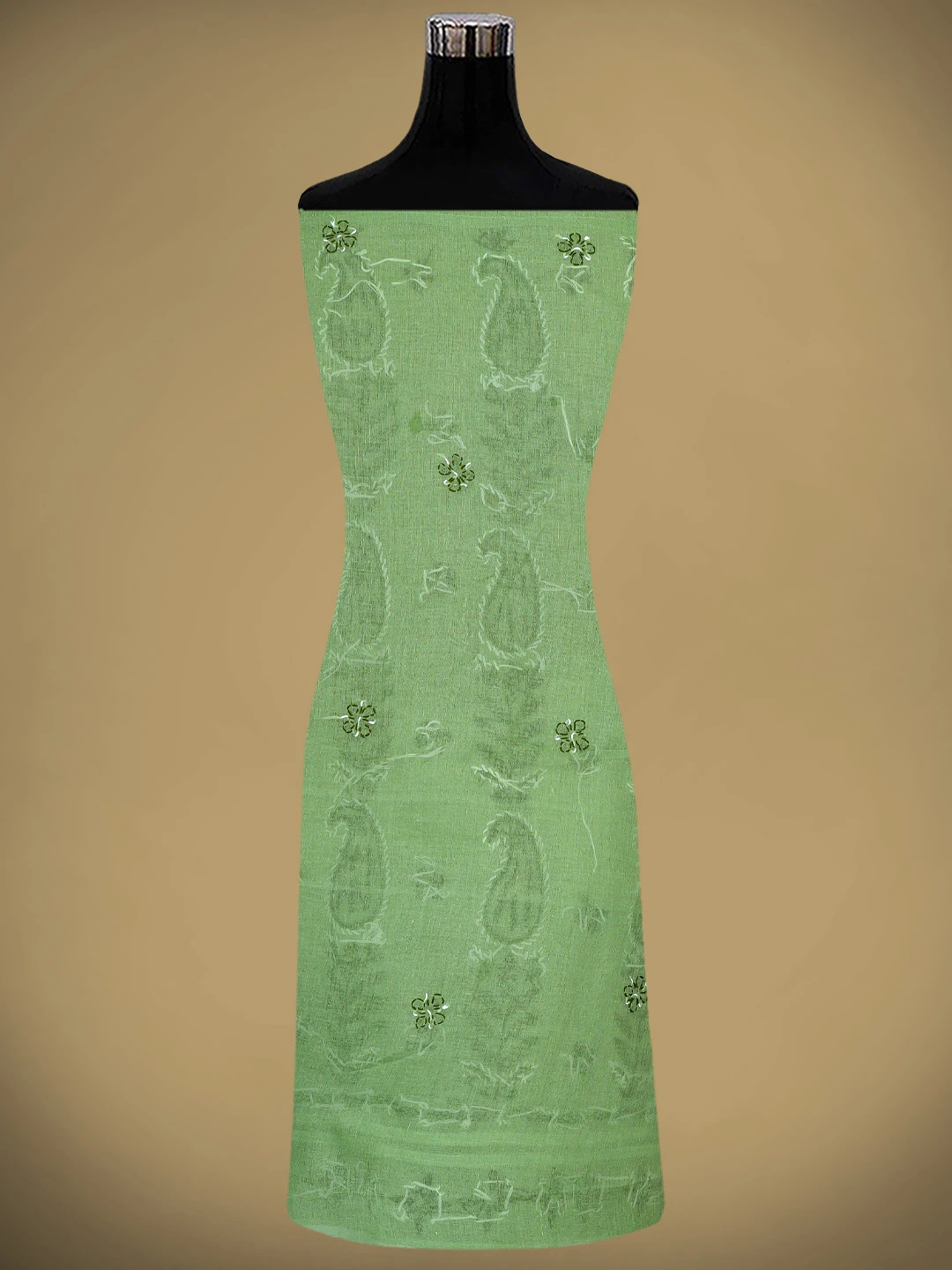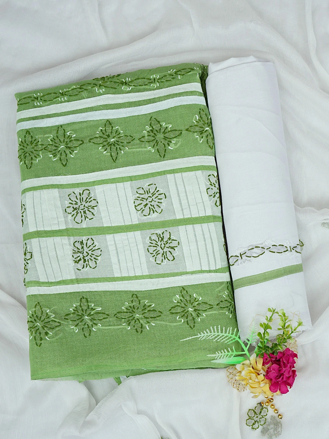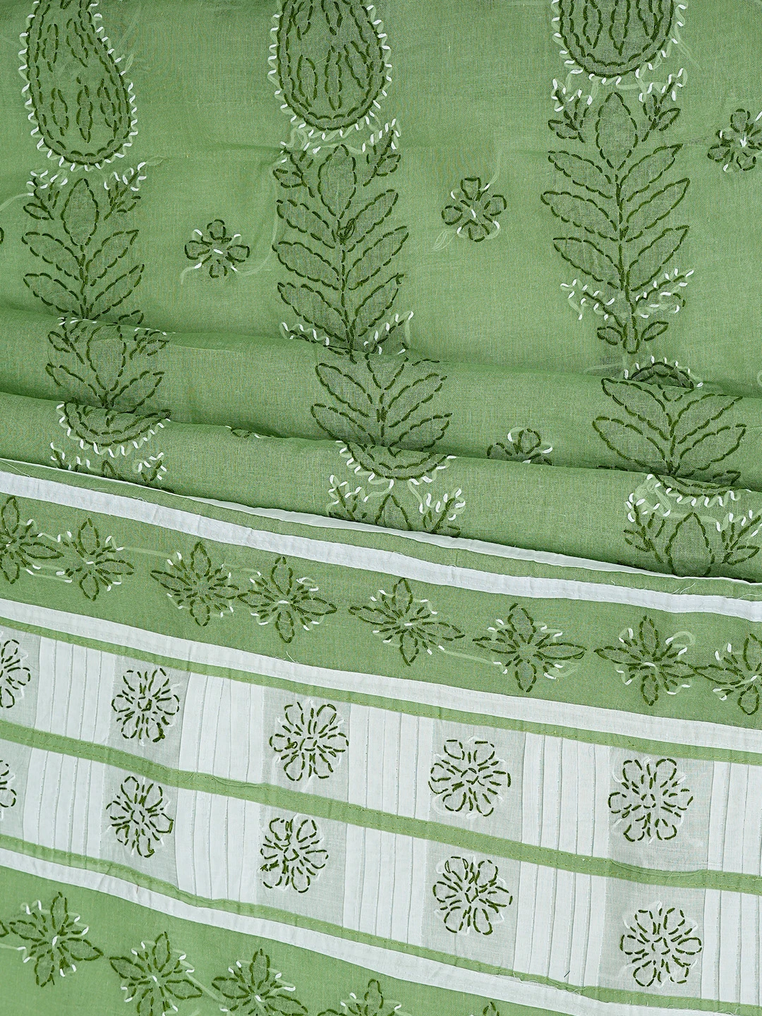 Ada Hand Embroidered Green Cotton Lucknowi Chikankari Unstitched Suit Piece 01A882751