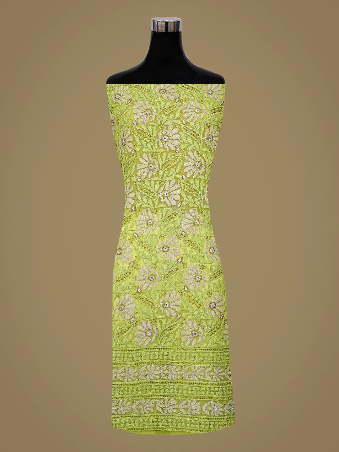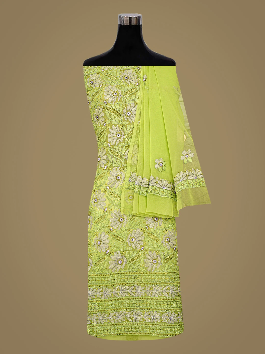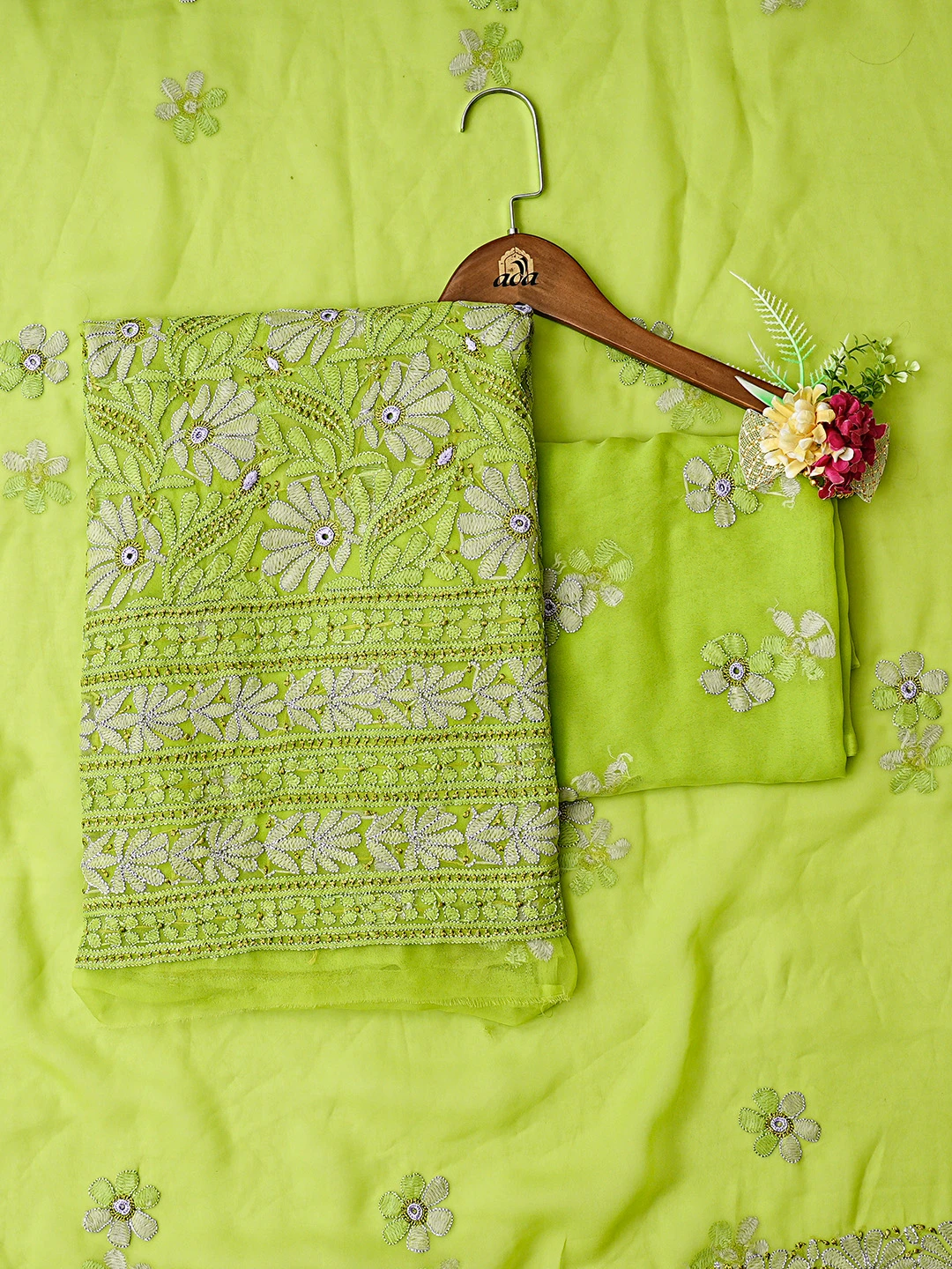 Ada Hand Embroidered Green Georgette Lucknowi Chikankari Unstitched Suit Piece 01A799916