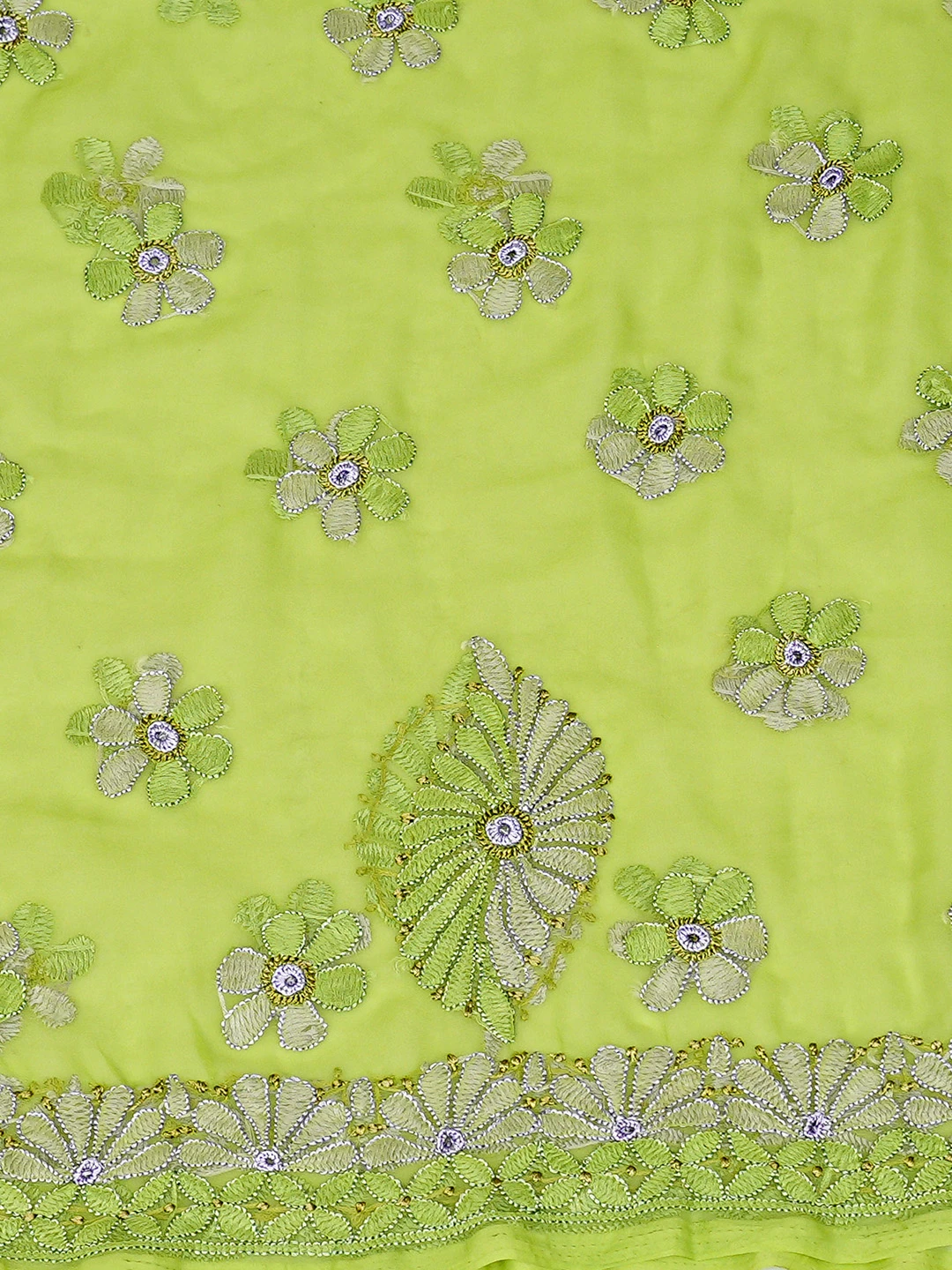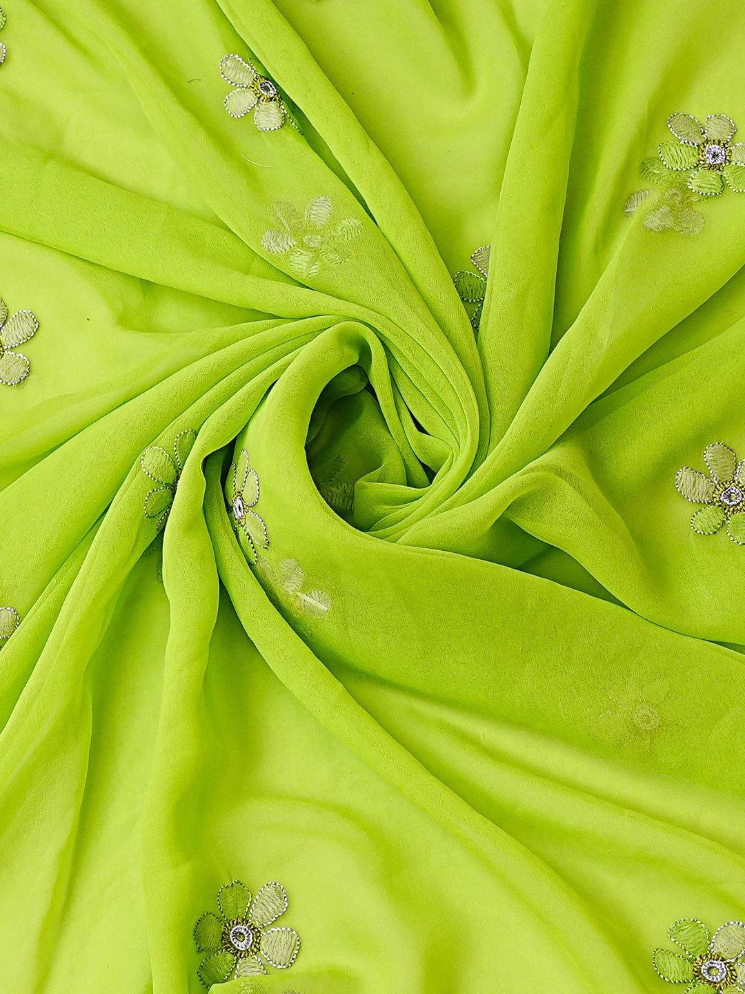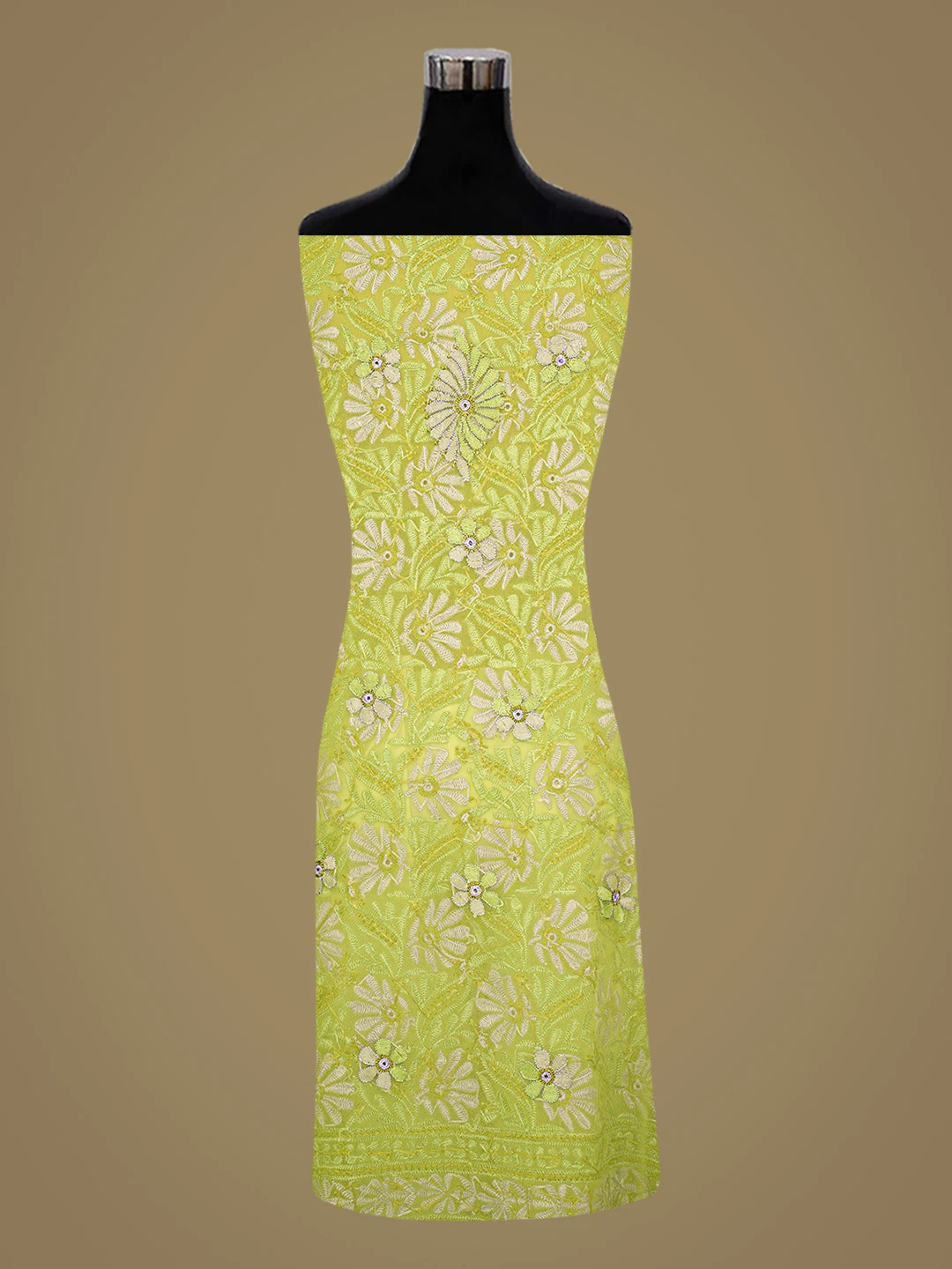 Ada Hand Embroidered Green Georgette Lucknowi Chikankari Unstitched Suit Piece 01A799916
