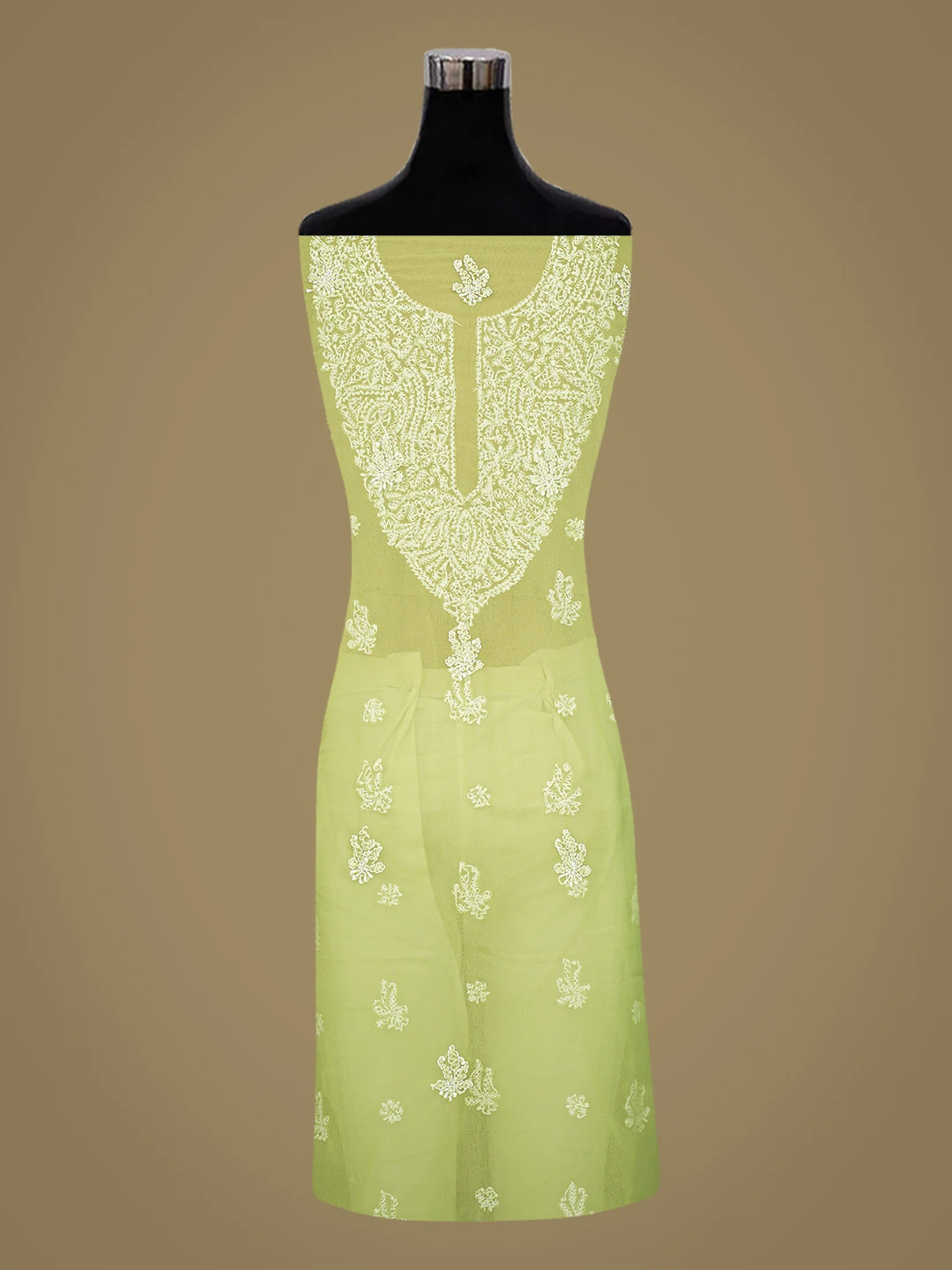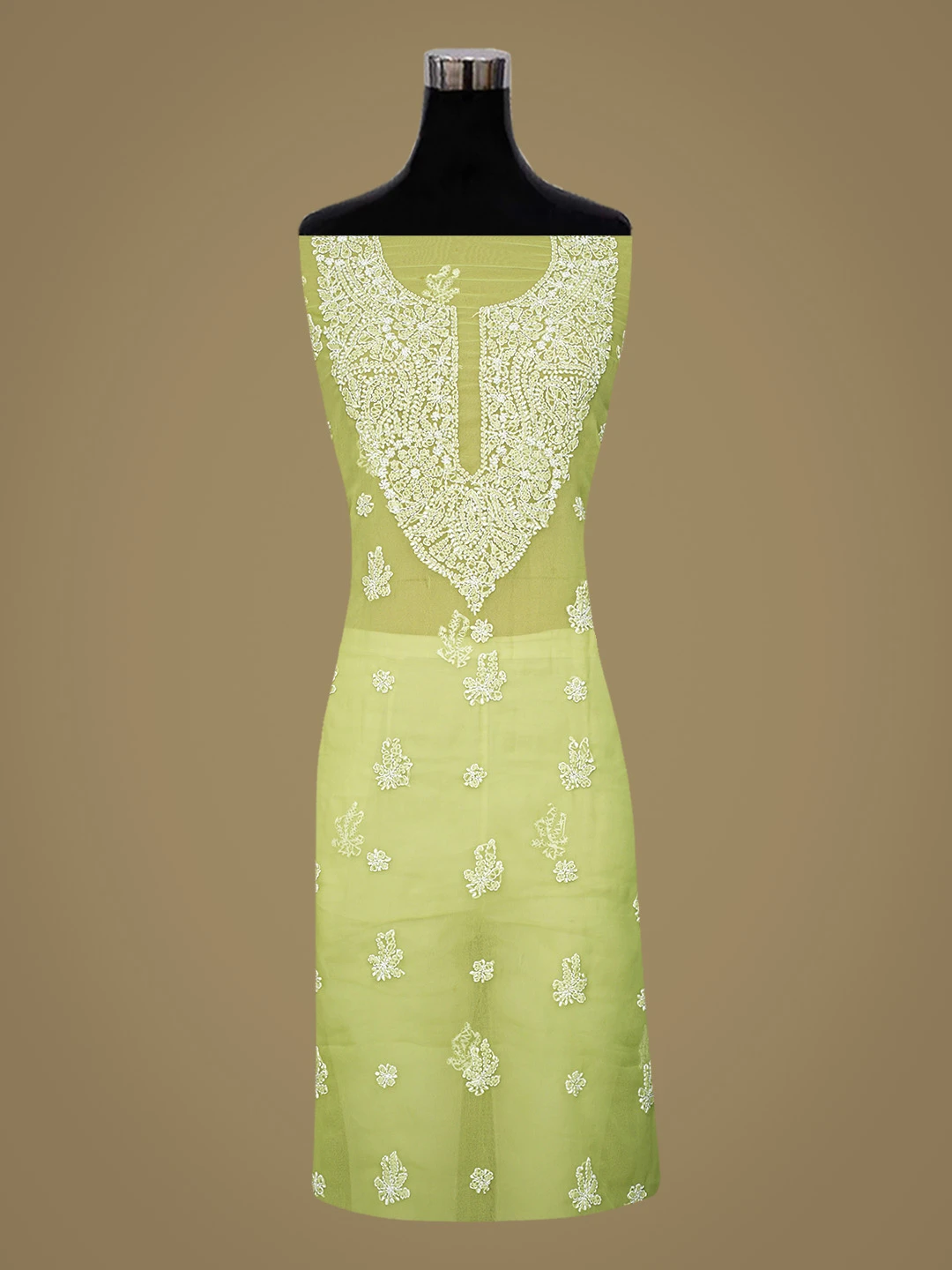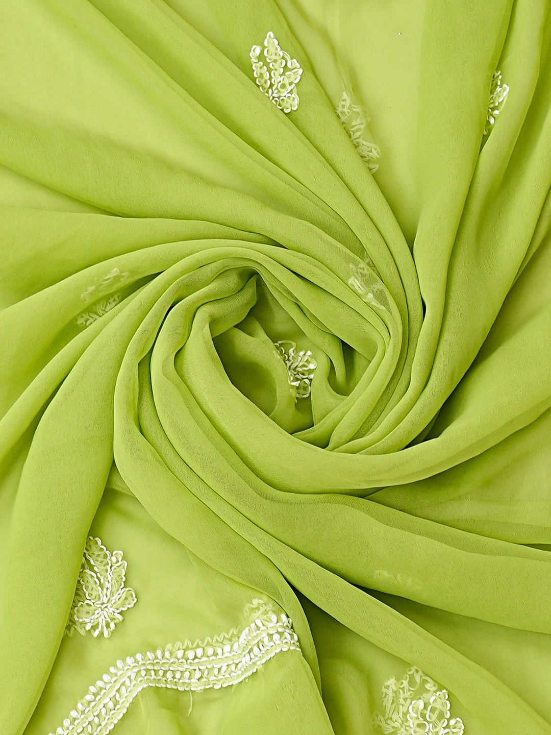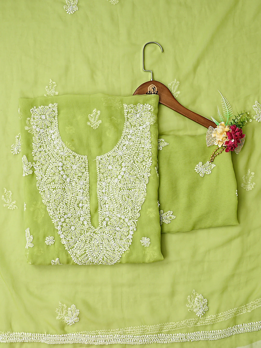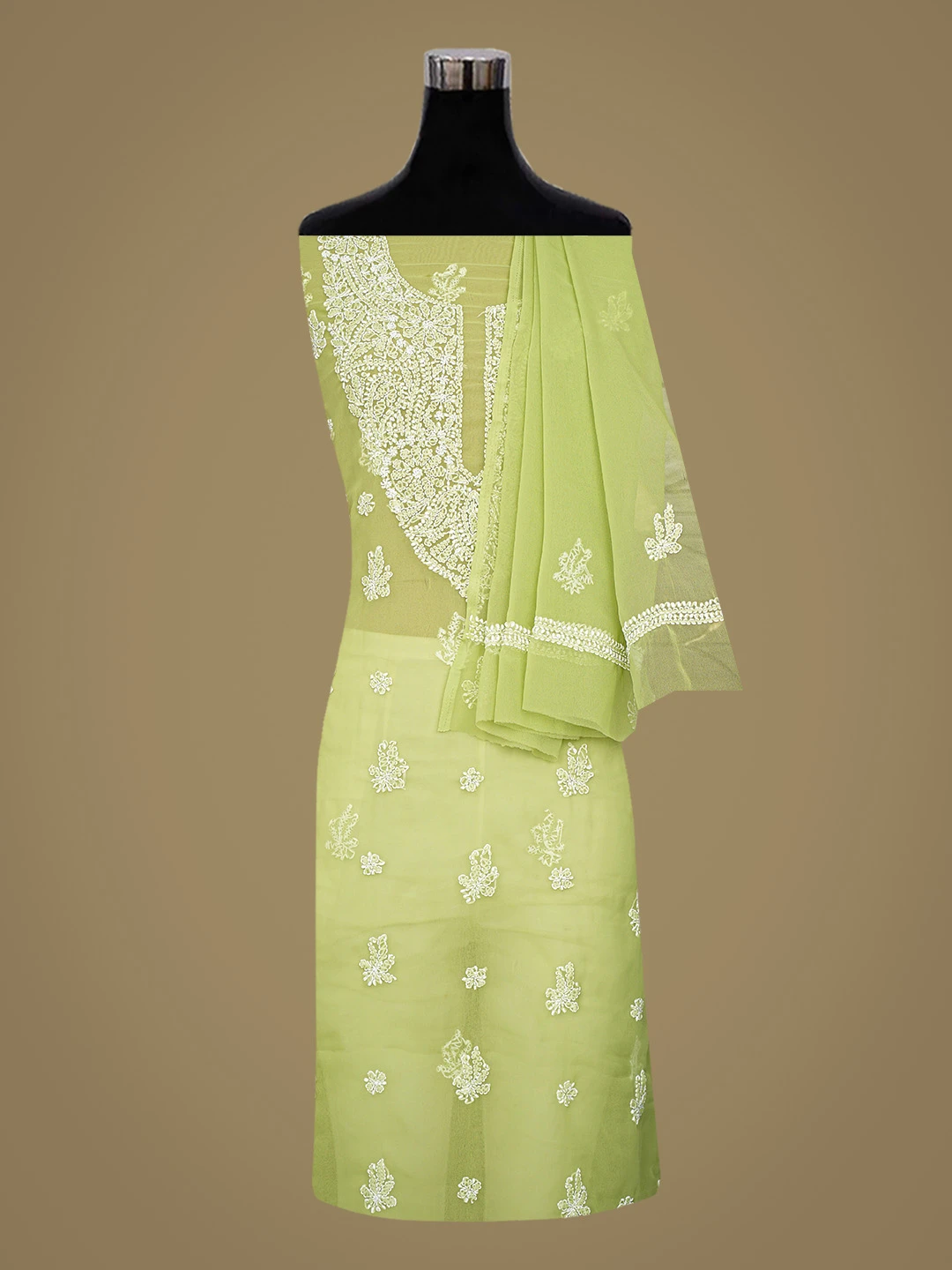 Ada Hand Embroidered Green Georgette Lucknowi Chikankari Unstitched Suit Piece 01A866781