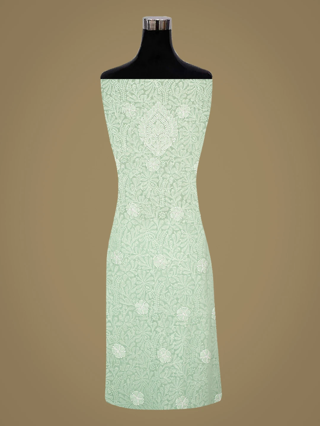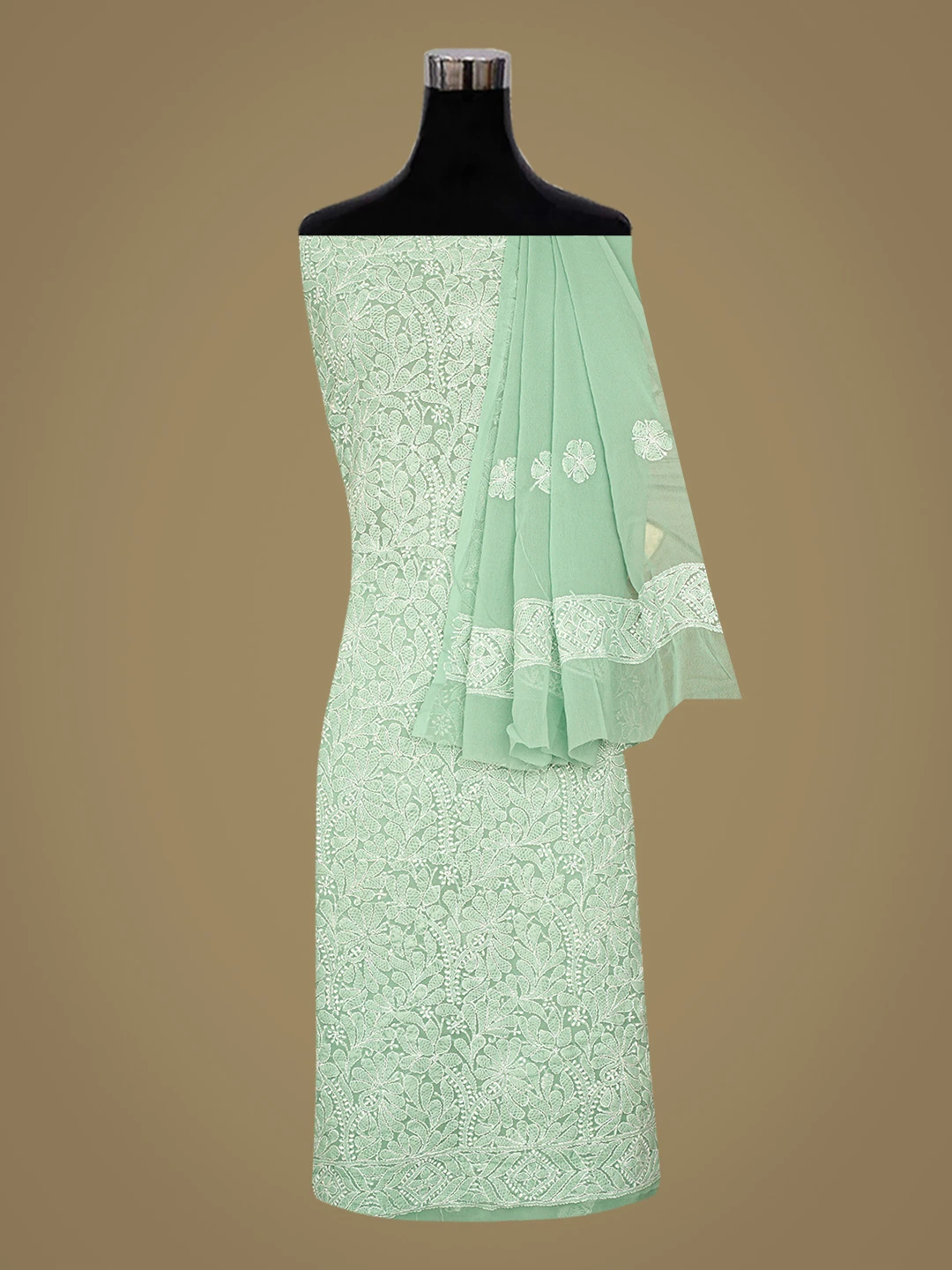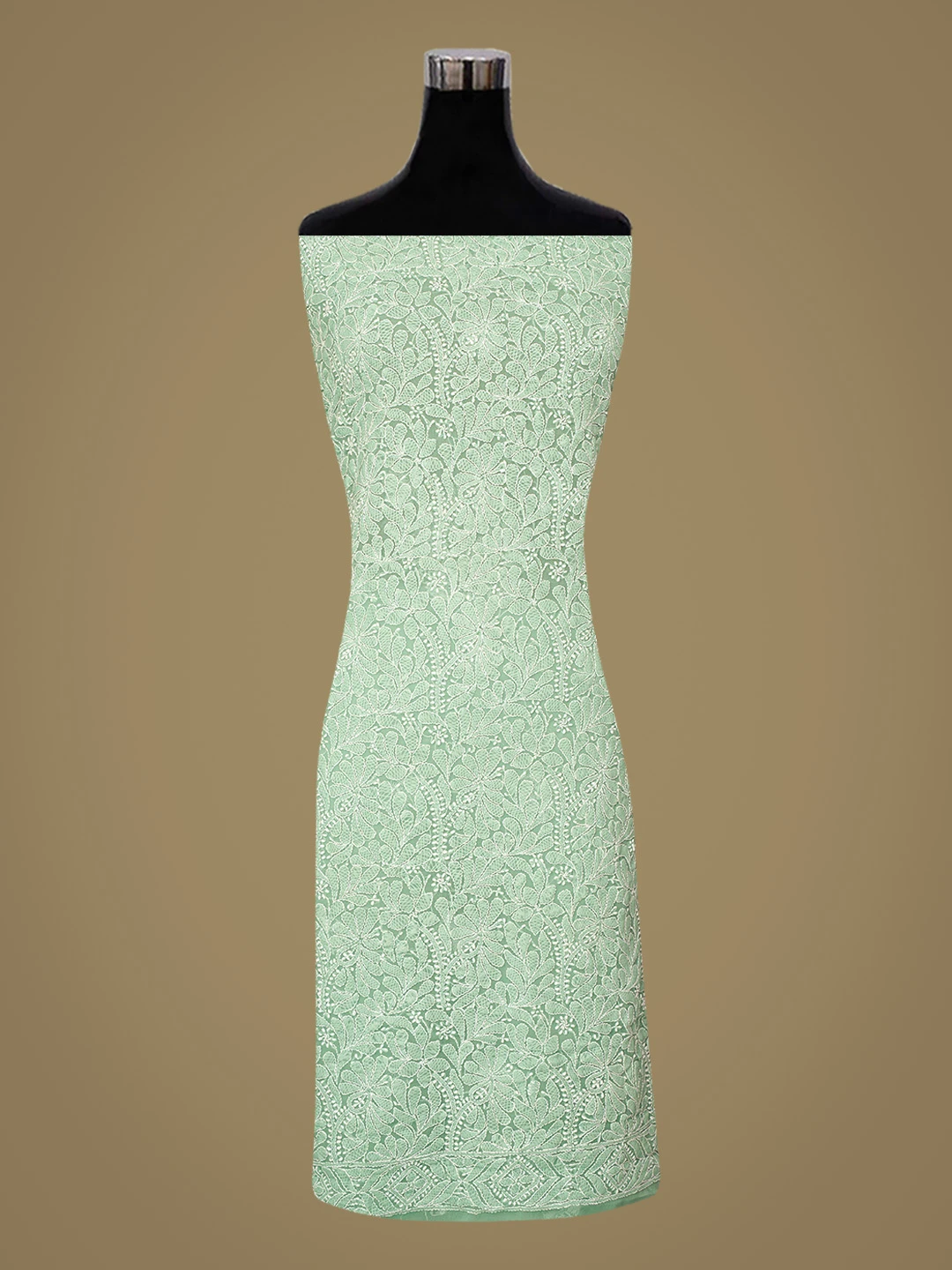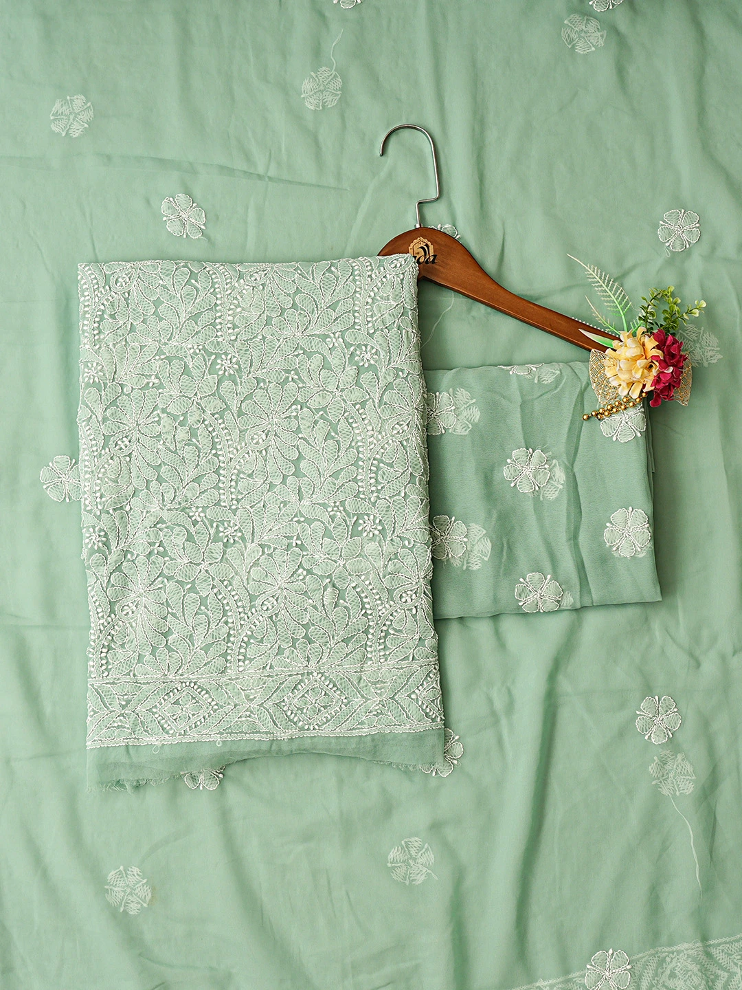Ada Hand Embroidered Green Georgette Lucknowi Chikankari Unstitched Suit Piece 01A867804