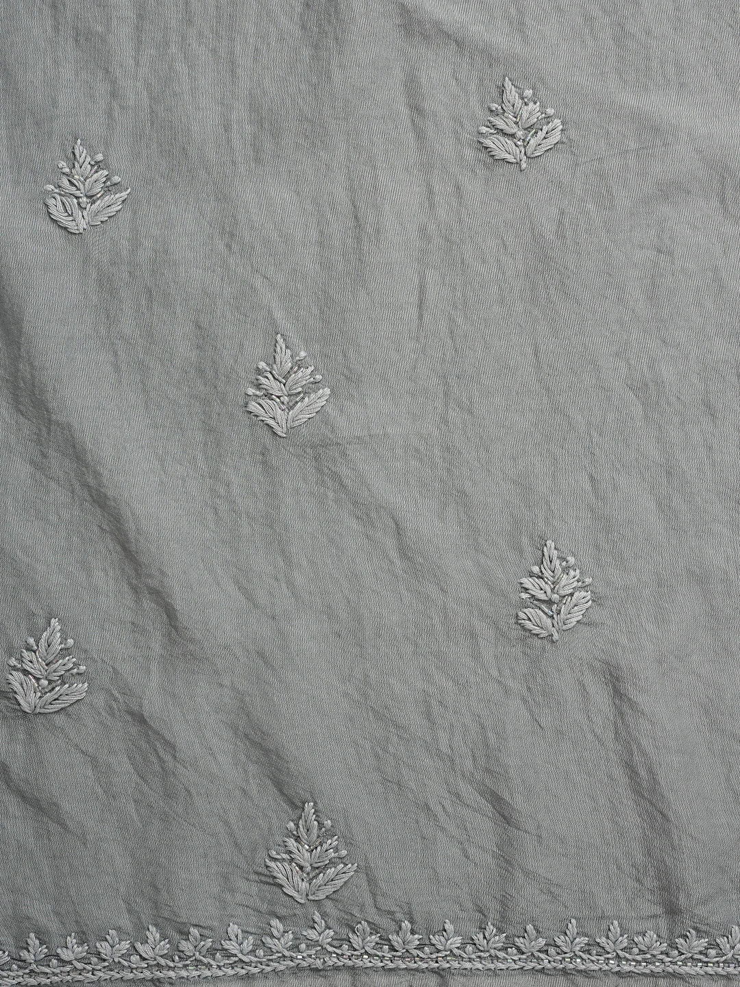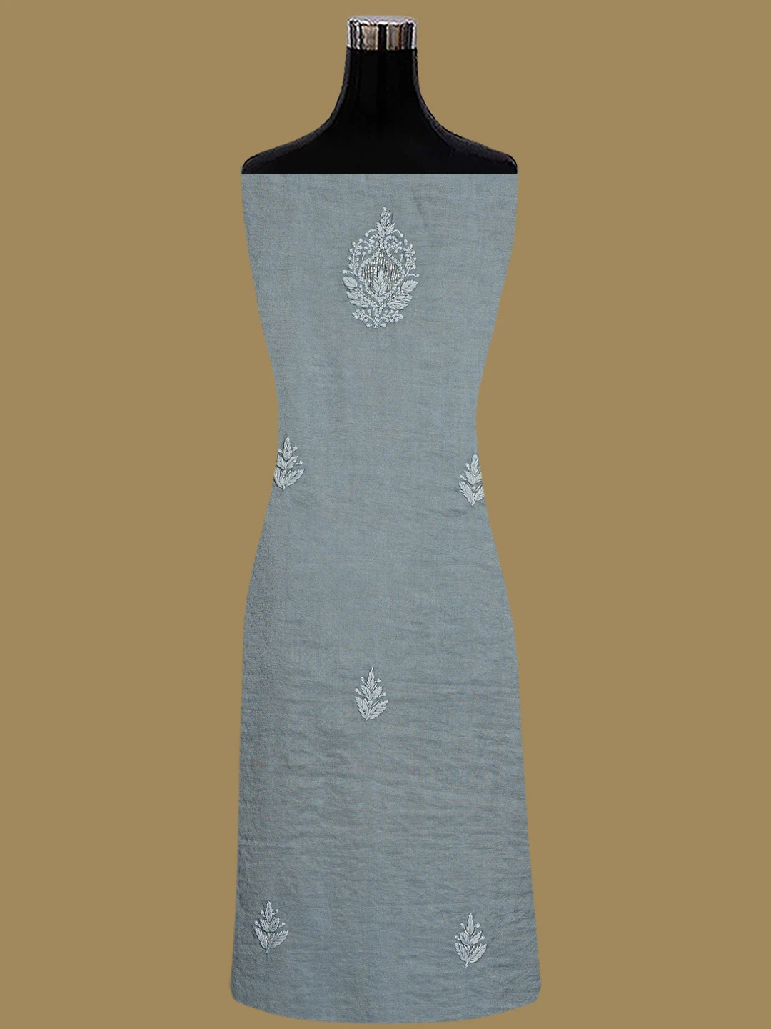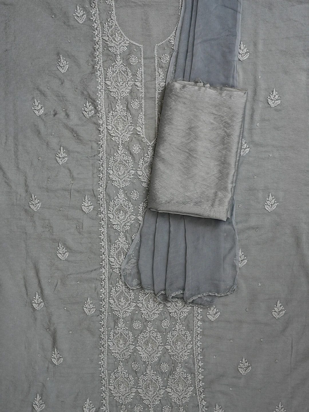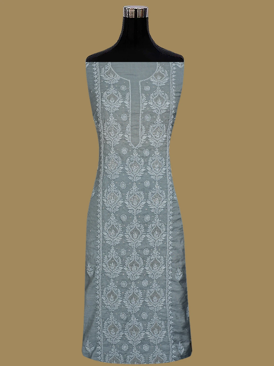 Ada Hand Embroidered Grey Chanderi Lucknowi Chikankari Unstitched Suit Piece With Cutdana Work 01A788693