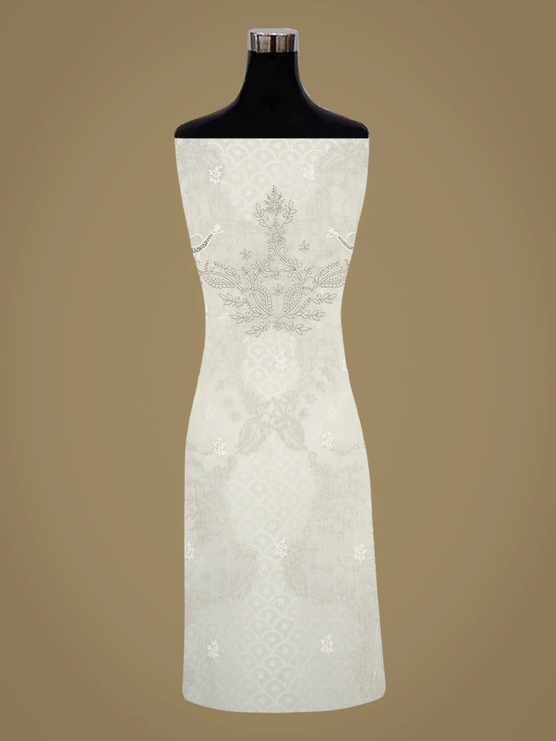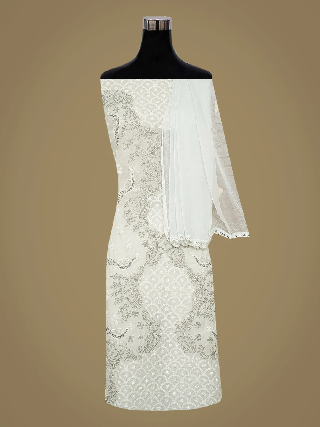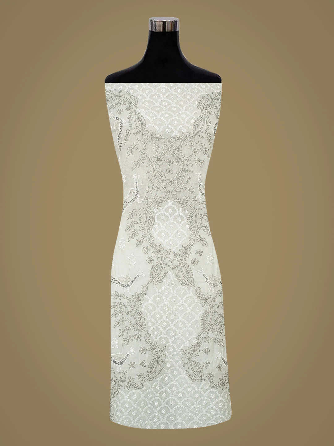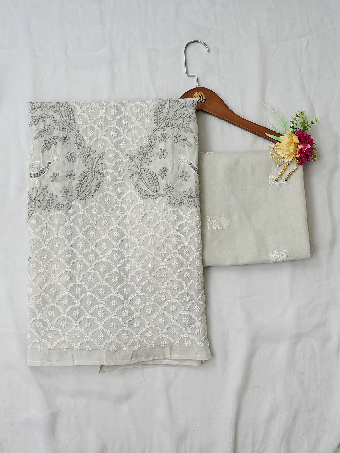 Ada Hand Embroidered Grey Cotton Lucknowi Chikankari Unstitched Suit Piece 01A844050