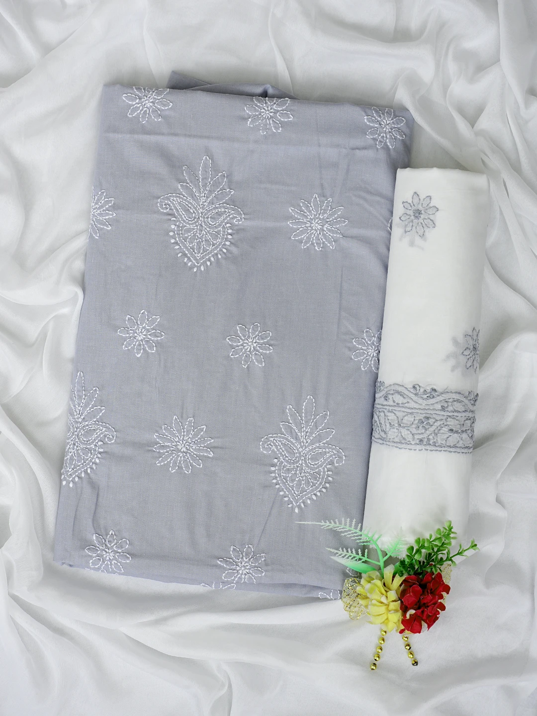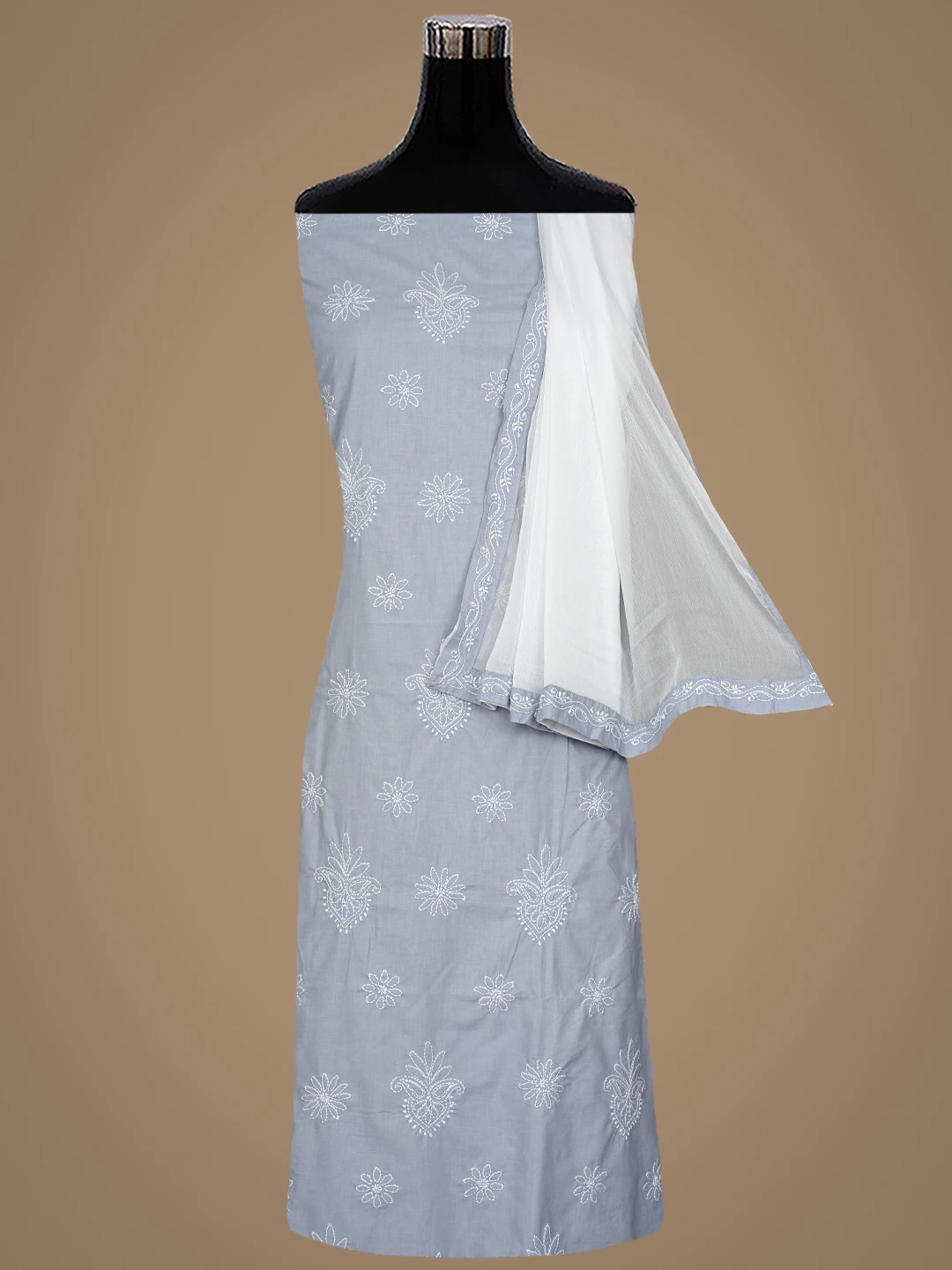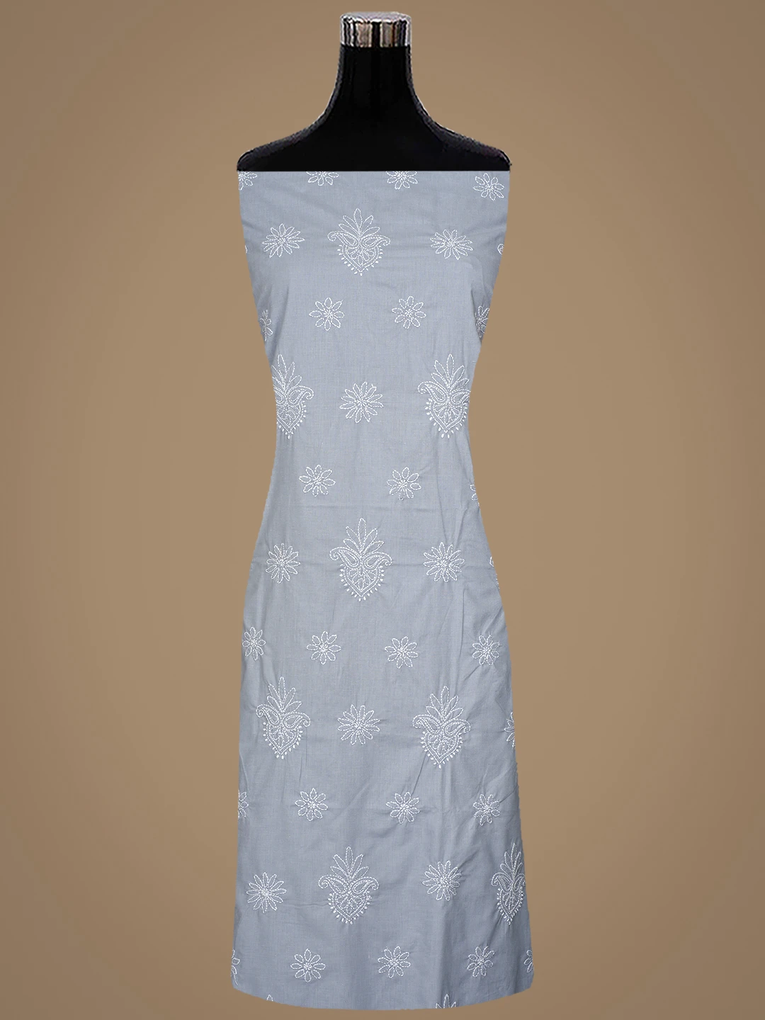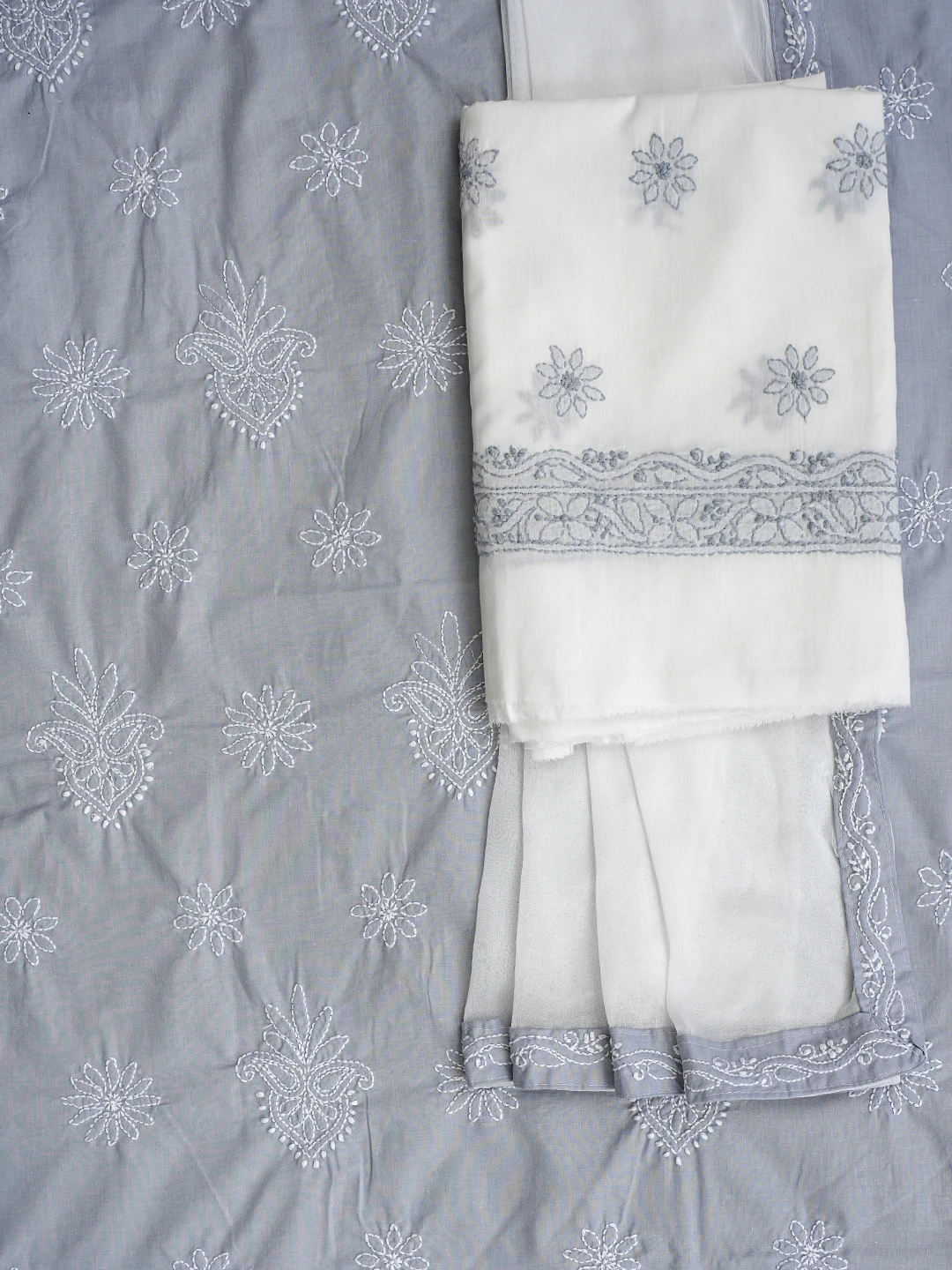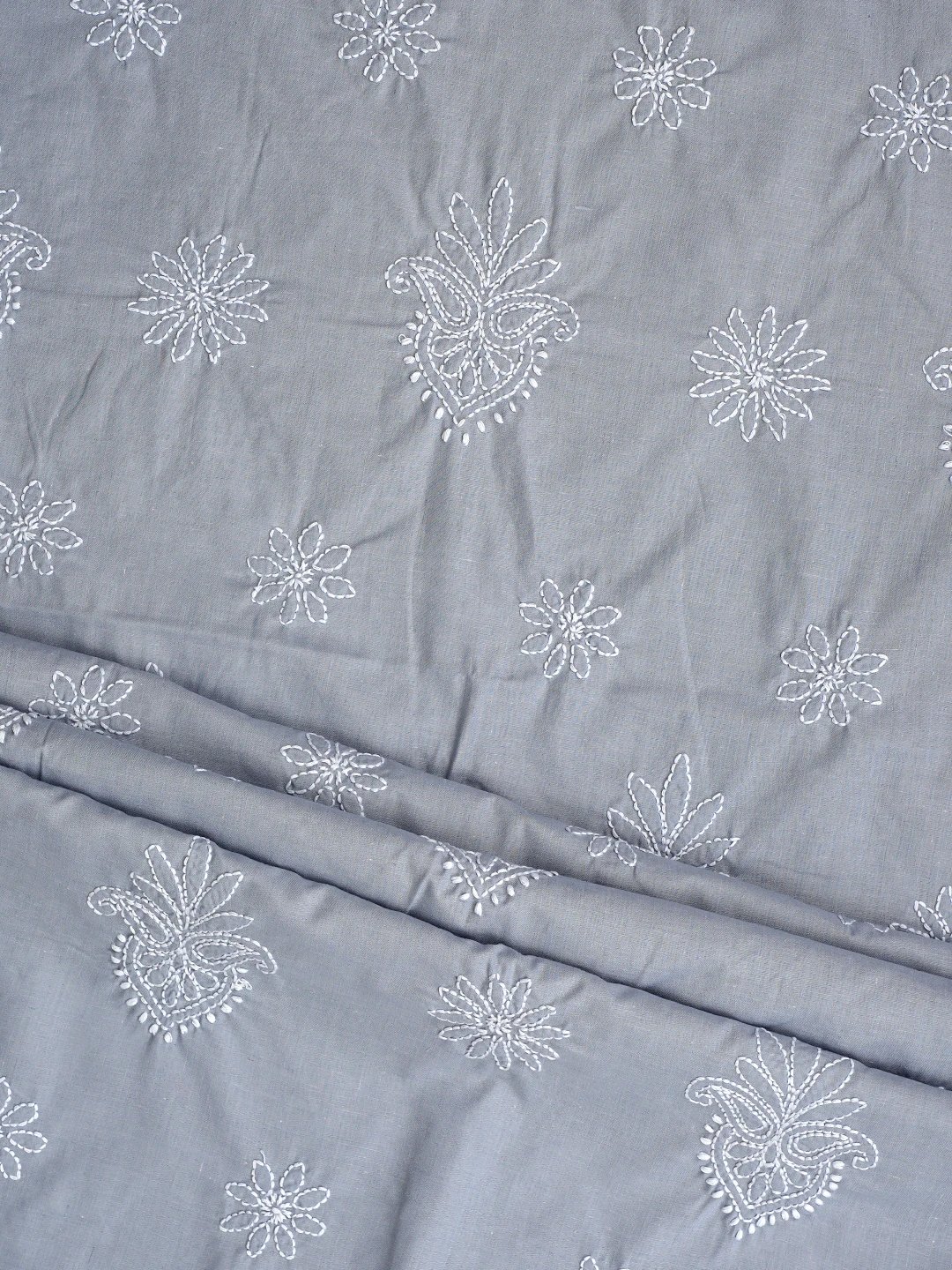 Ada Hand Embroidered Grey Cotton Lucknowi Chikankari Unstitched Suit Piece 01A870841