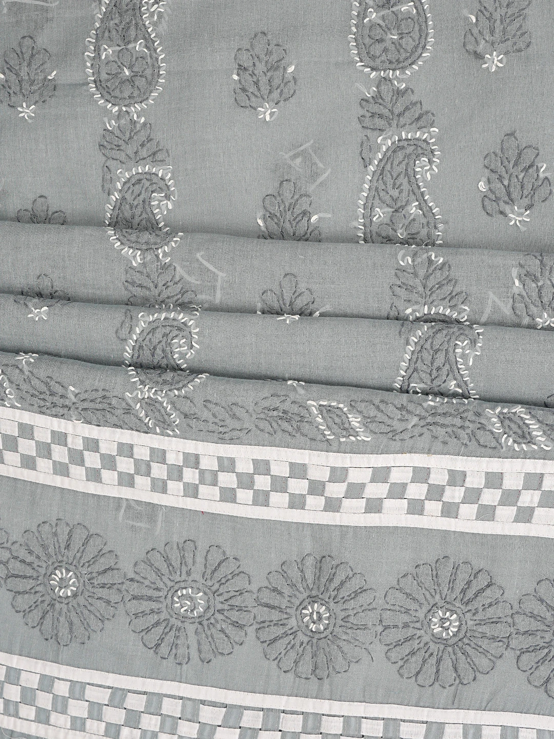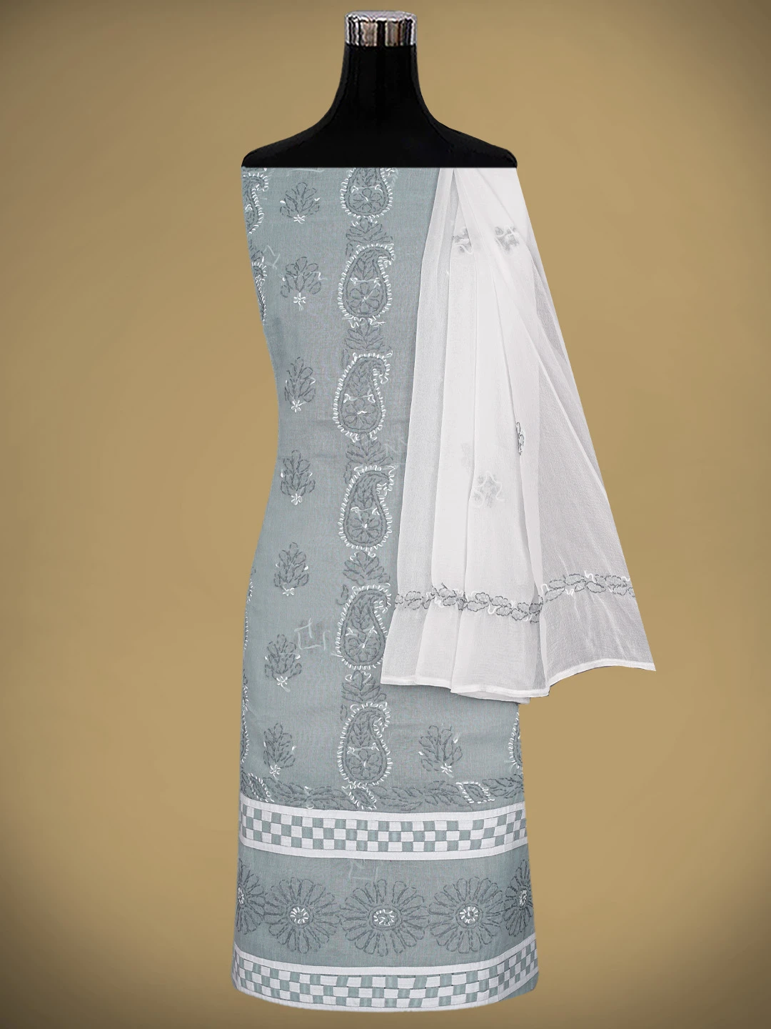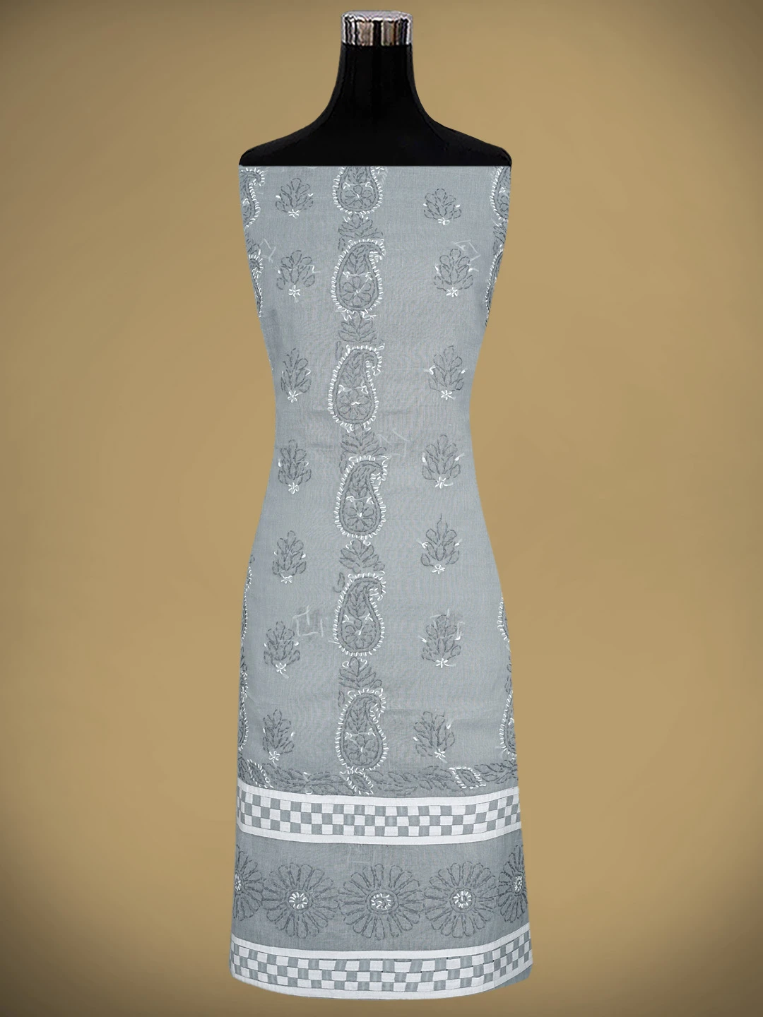 Ada Hand Embroidered Grey Cotton Lucknowi Chikankari Unstitched Suit Piece 01A878300