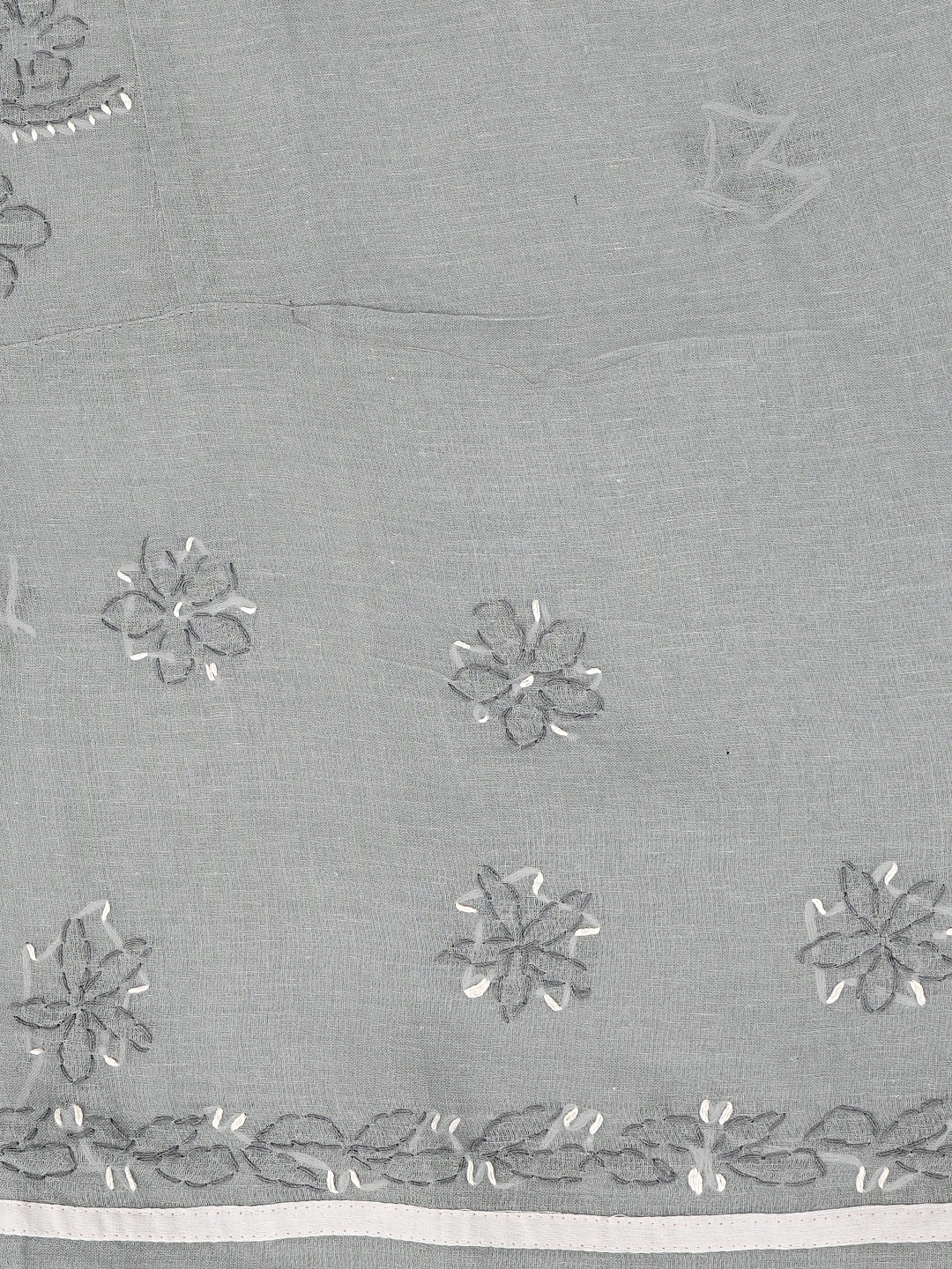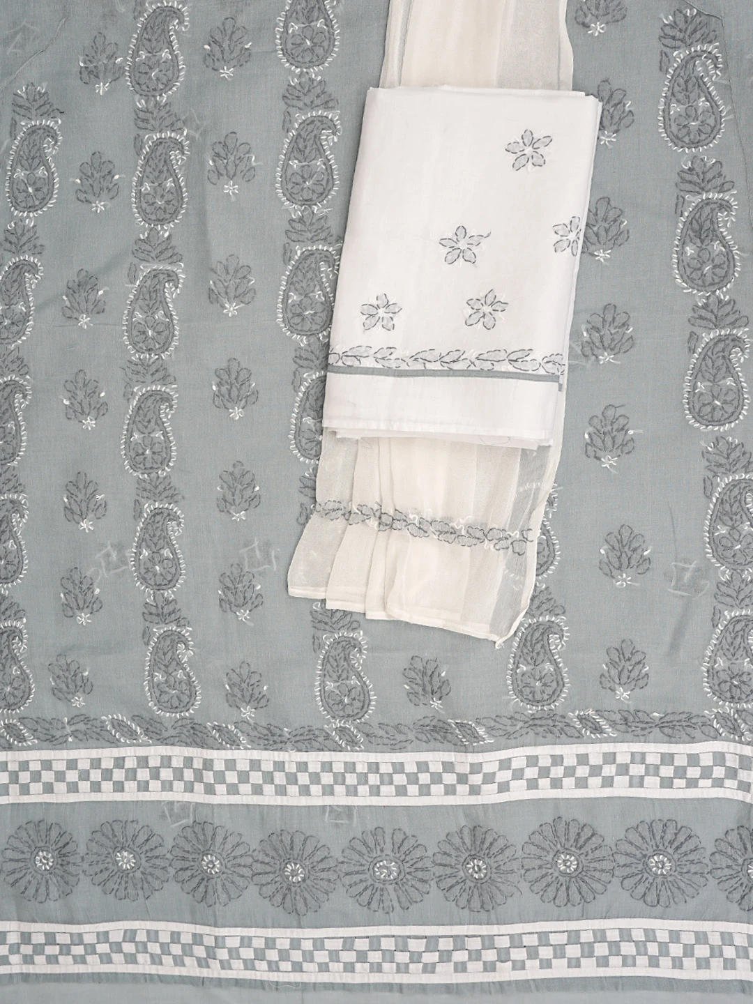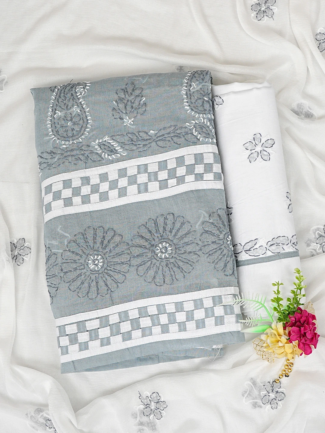 Ada Hand Embroidered Grey Cotton Lucknowi Chikankari Unstitched Suit Piece 01A878300