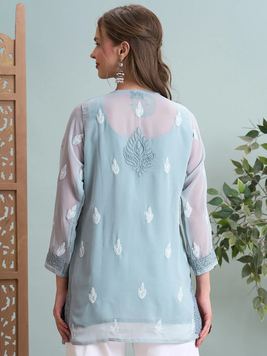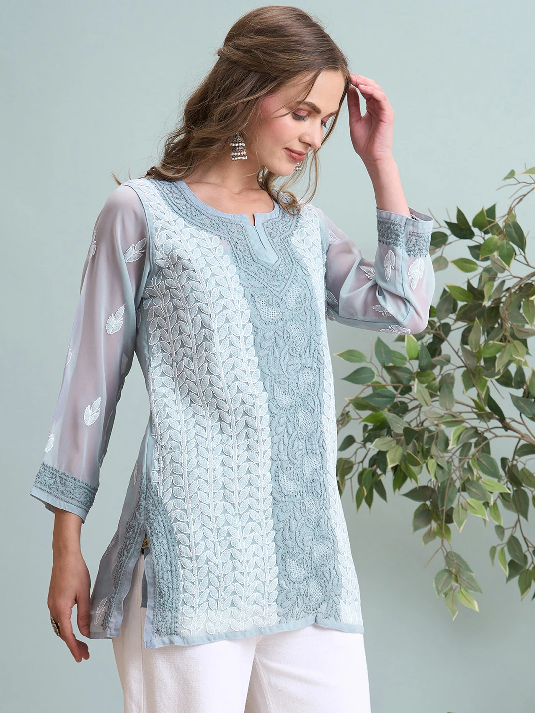 Ada Hand Embroidered Grey Georgette Lucknowi Chikankari Short Kurti A911518