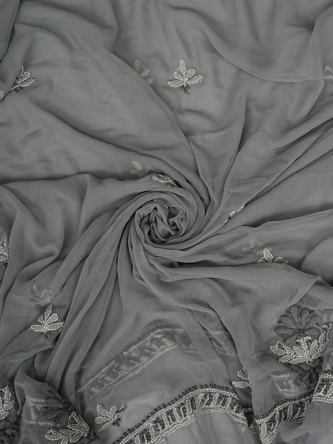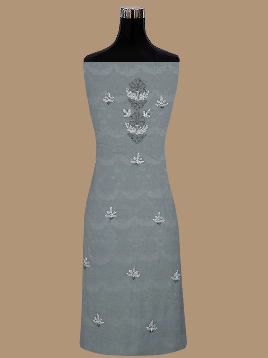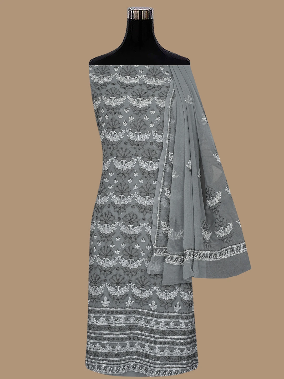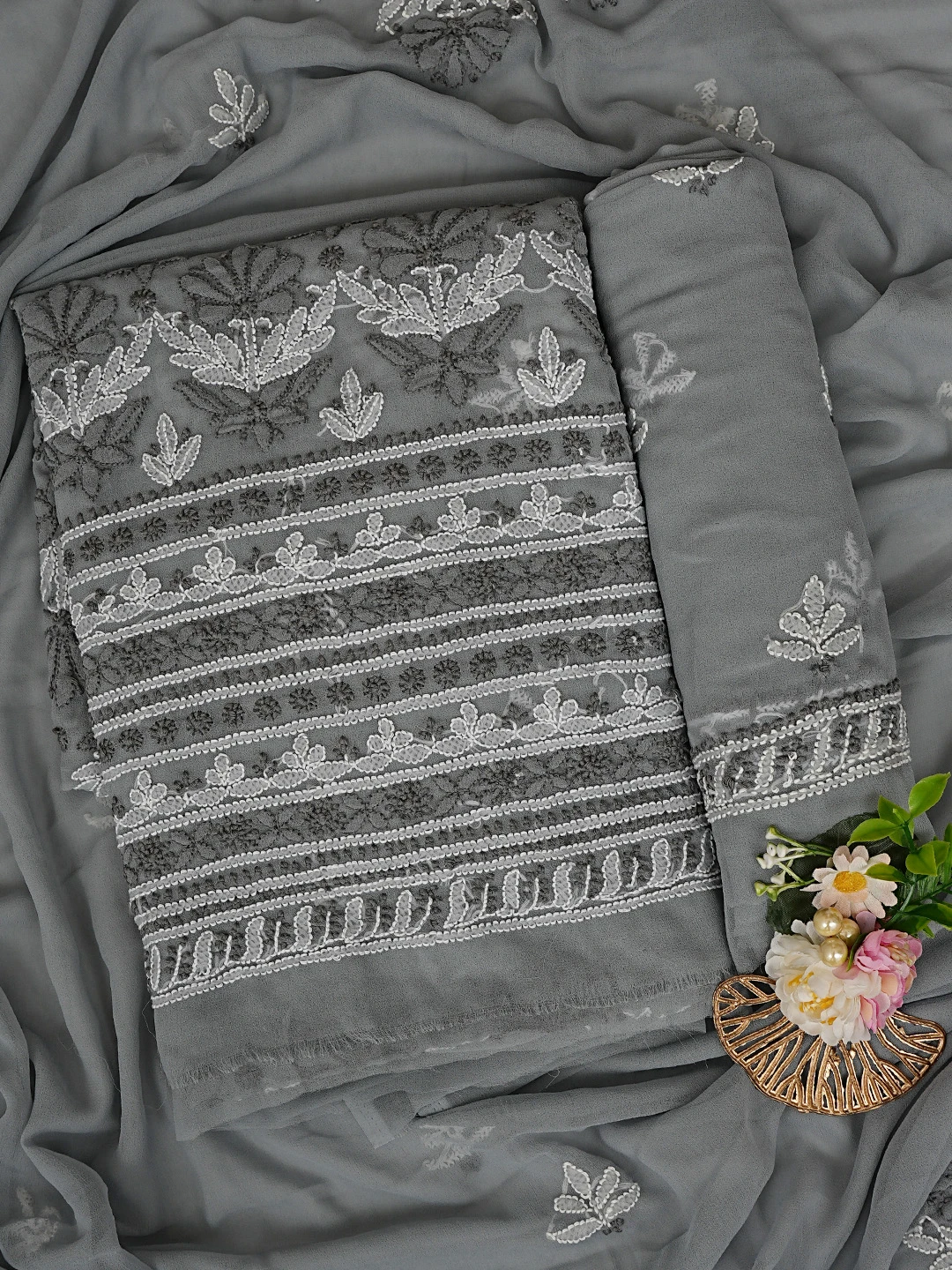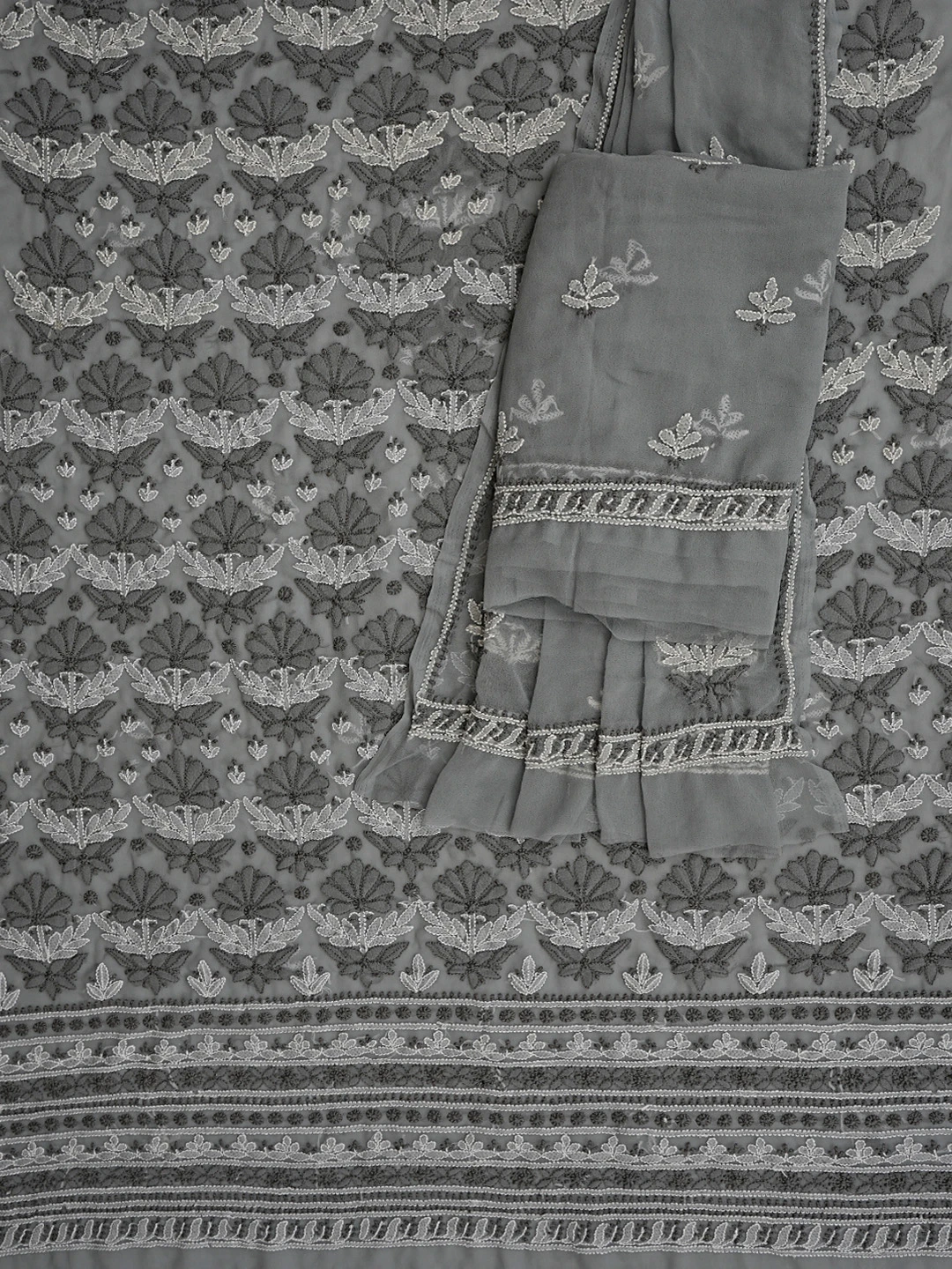 Ada Hand Embroidered Grey Georgette Lucknowi Chikankari Unstitched Suit Piece 01A867521