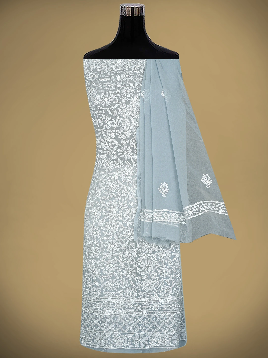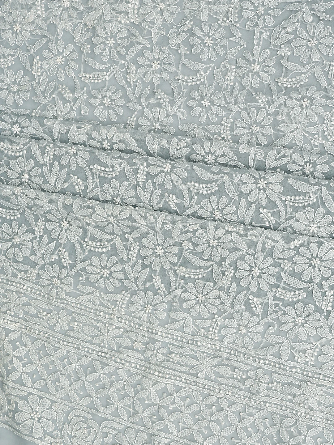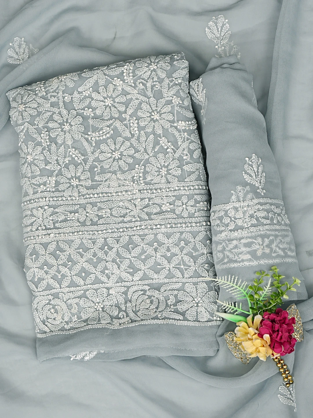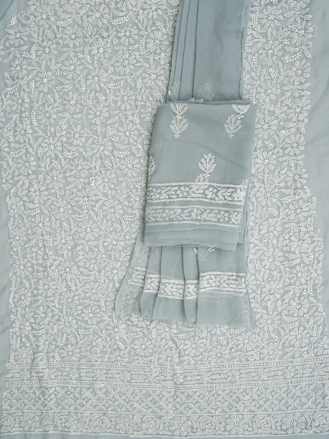 Ada Hand Embroidered Grey Georgette Lucknowi Chikankari Unstitched Suit Piece 01A878903