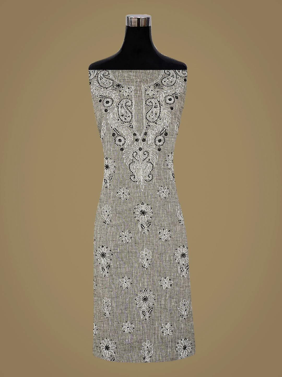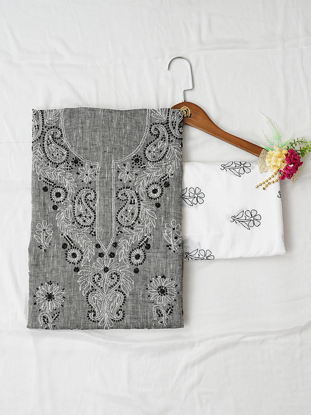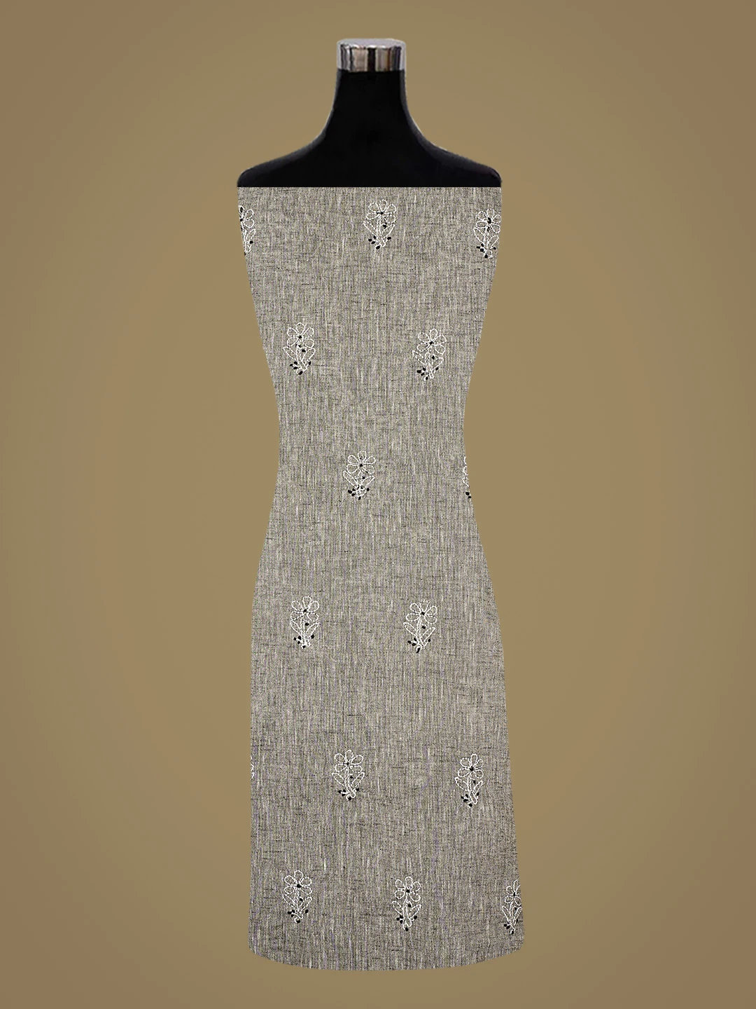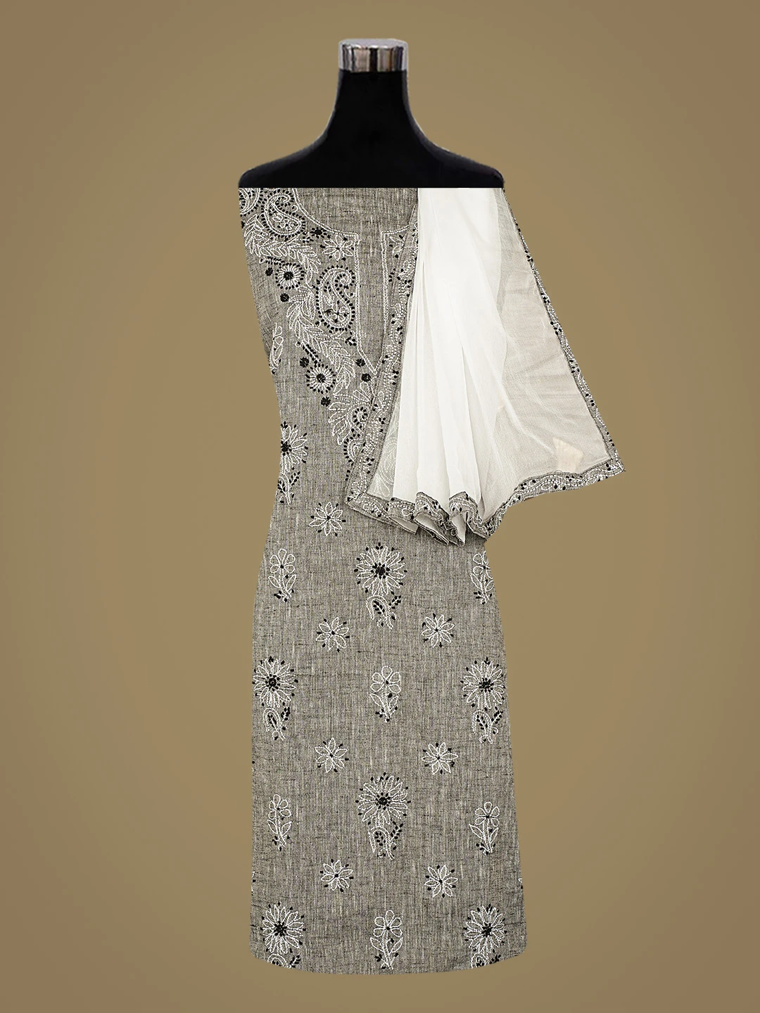 Ada Hand Embroidered Grey Linen Lucknowi Chikankari Unstitched Suit Piece 01A867665