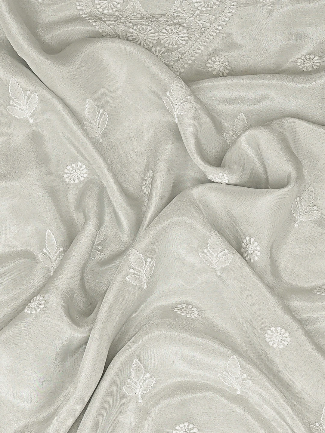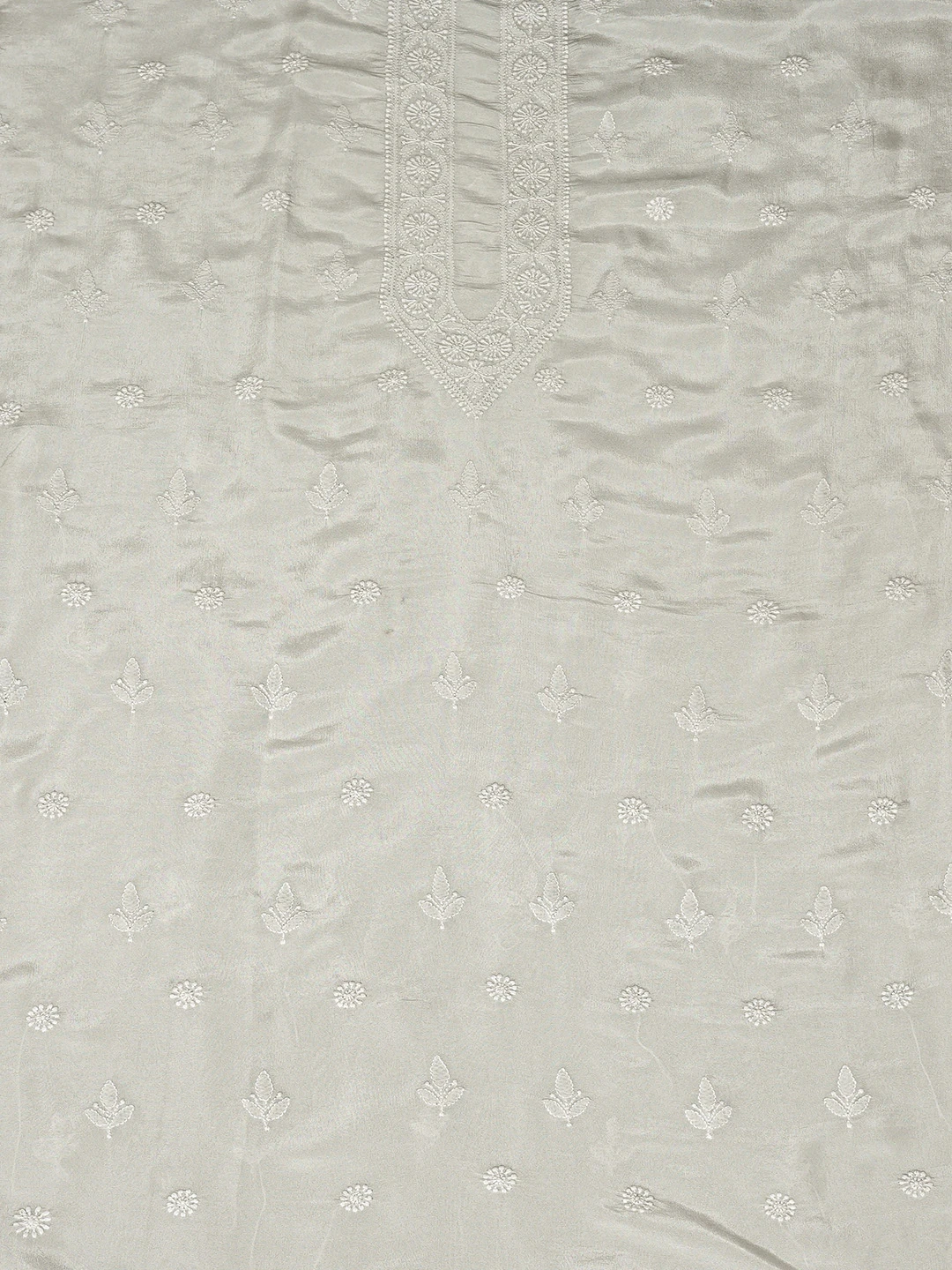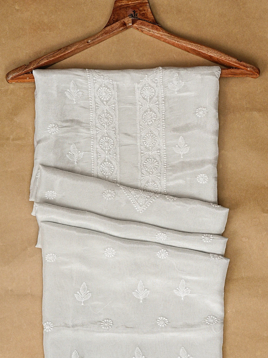 Ada Hand Embroidered Grey Tissue Lucknowi Chikankari Unstitched Men's Kurta Piece 01A865082
