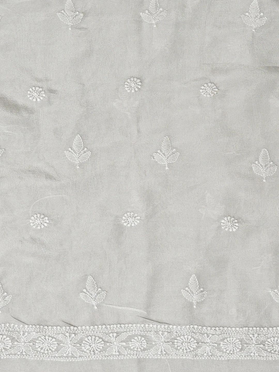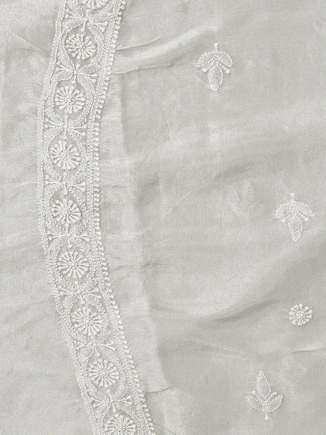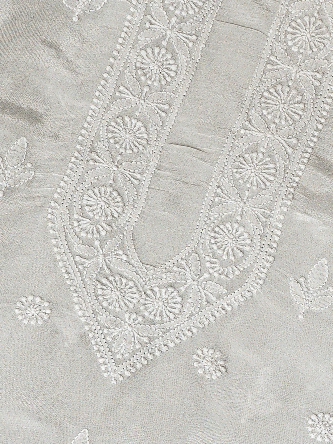 Ada Hand Embroidered Grey Tissue Lucknowi Chikankari Unstitched Men's Kurta Piece 01A865082