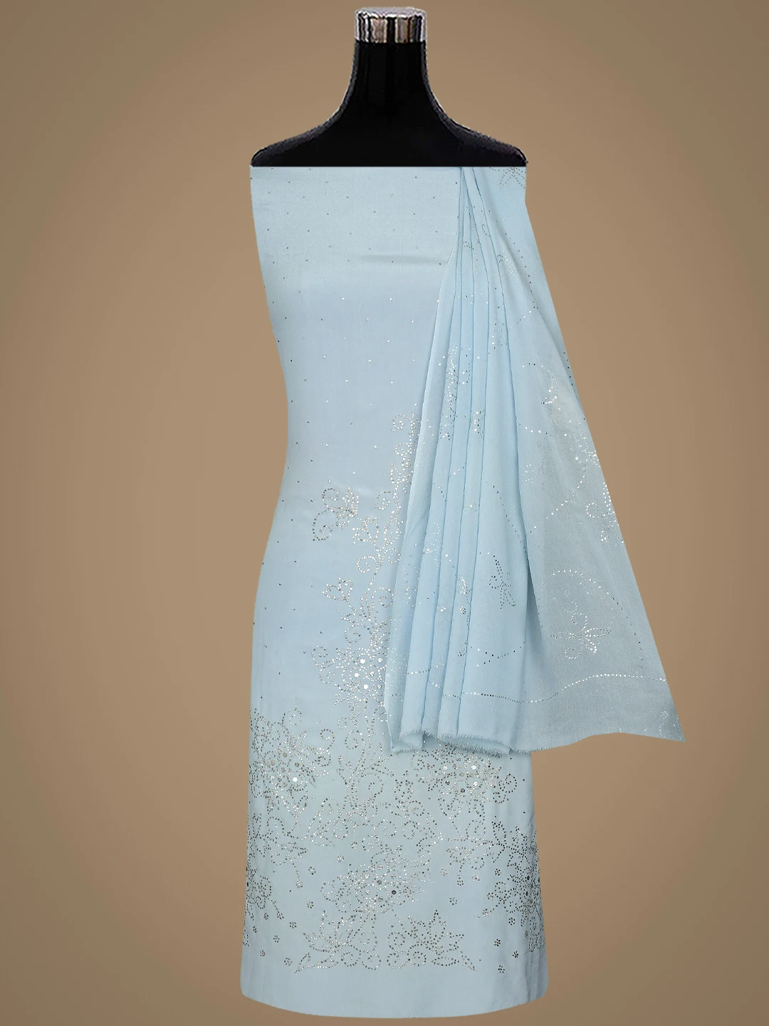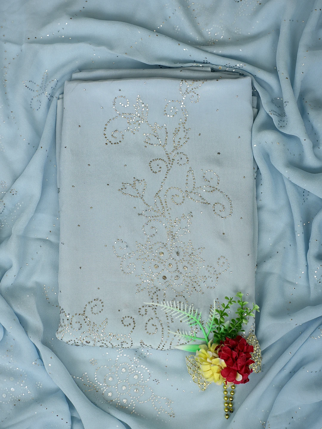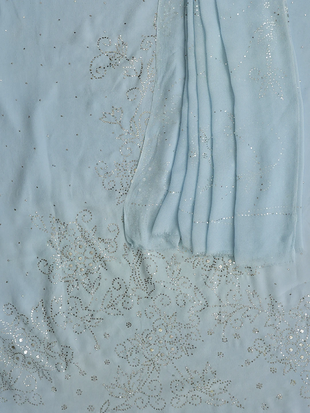 Ada Hand Embroidered Ice Blue Crepe Unstitched Kurta Dupatta Set With Mukaish Work A384903