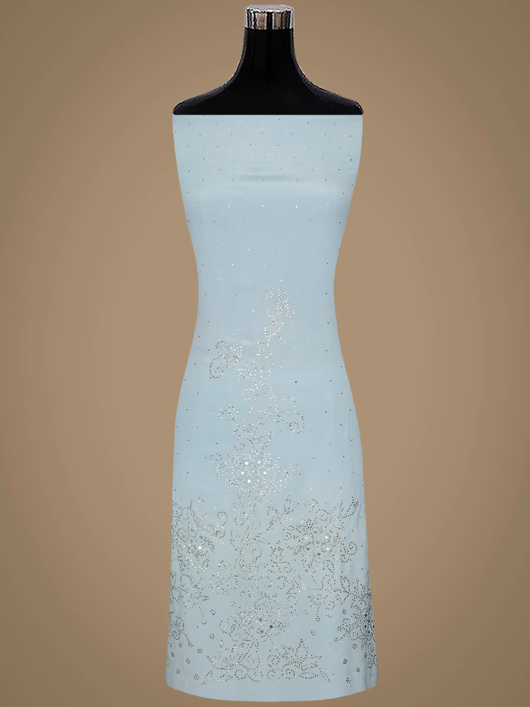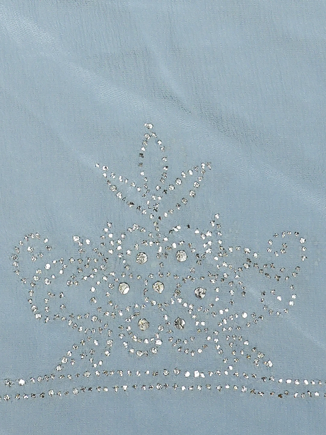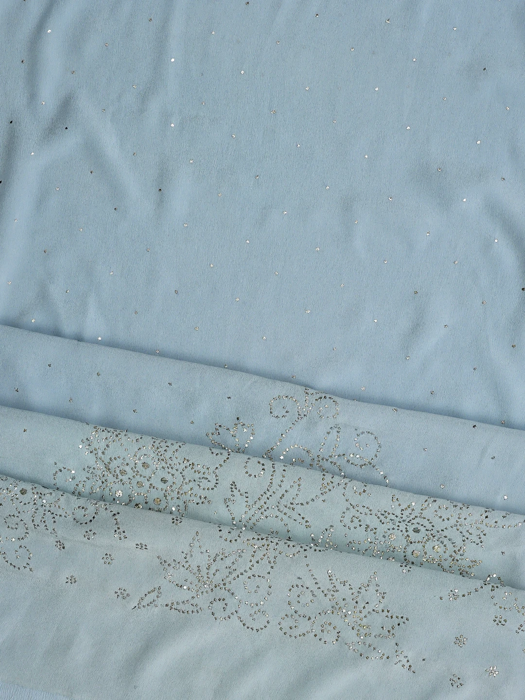 Ada Hand Embroidered Ice Blue Crepe Unstitched Kurta Dupatta Set With Mukaish Work A384903