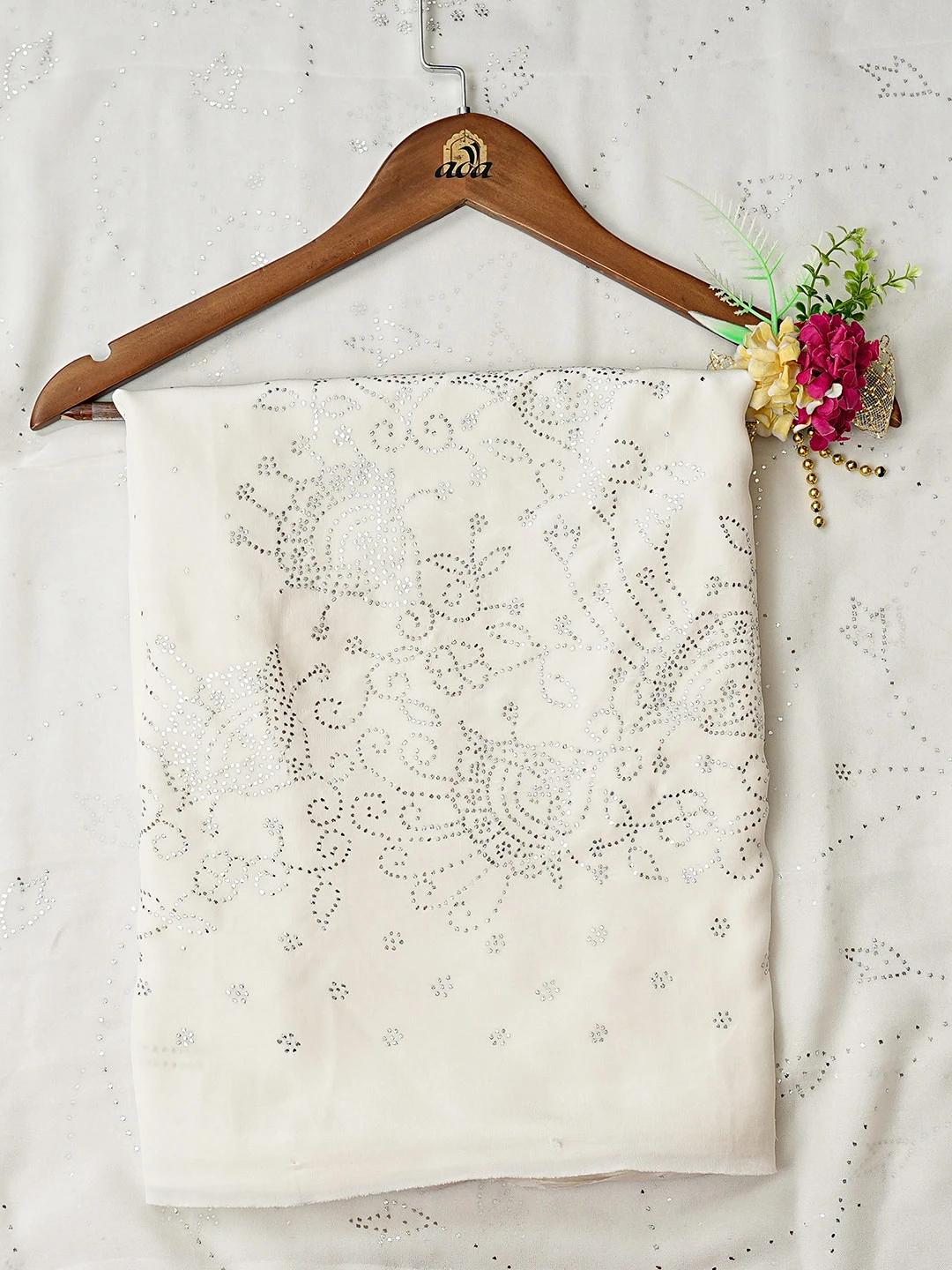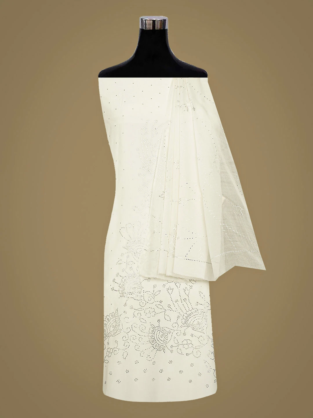 Ada Hand Embroidered Ivory Pure Georgette Lucknowi Chikankari Unstitched Kurta Dupatta Set With Mukaish Work A384906