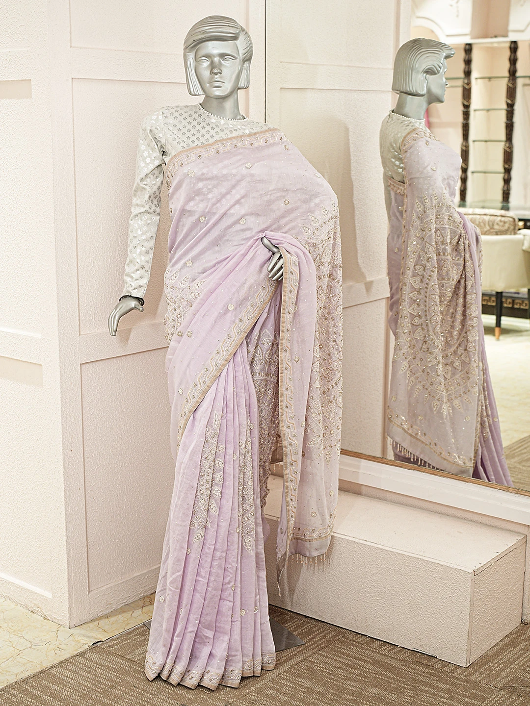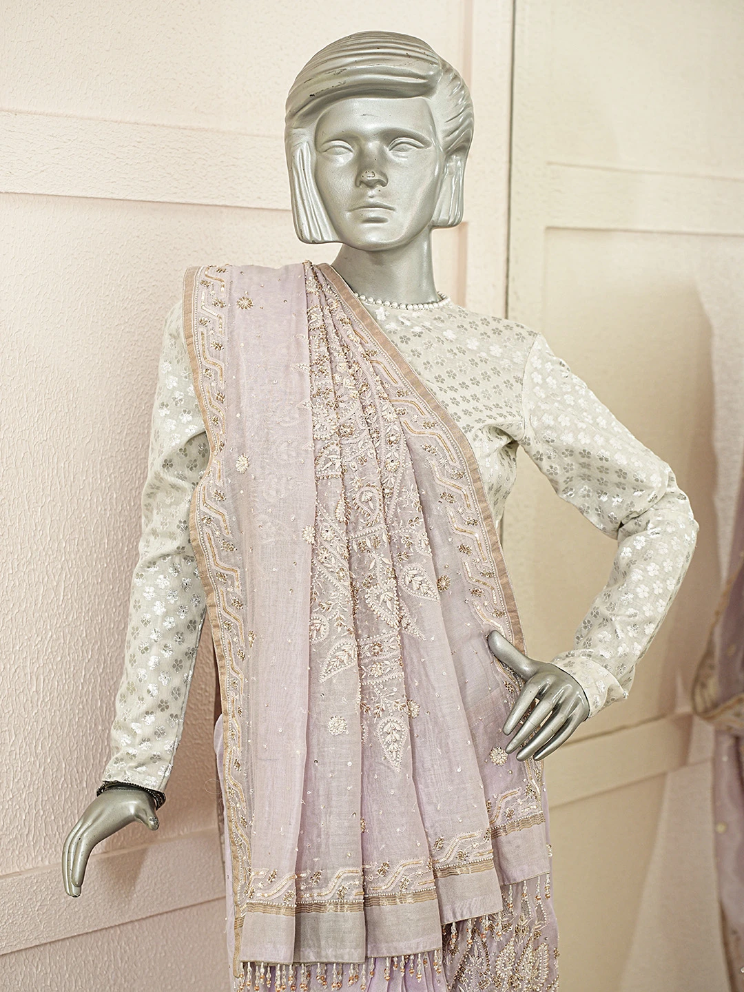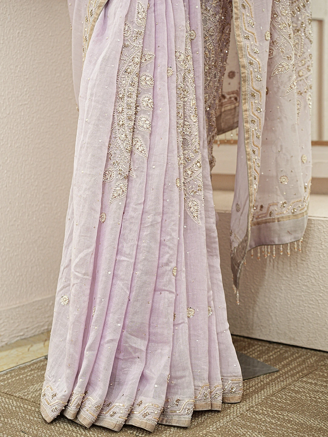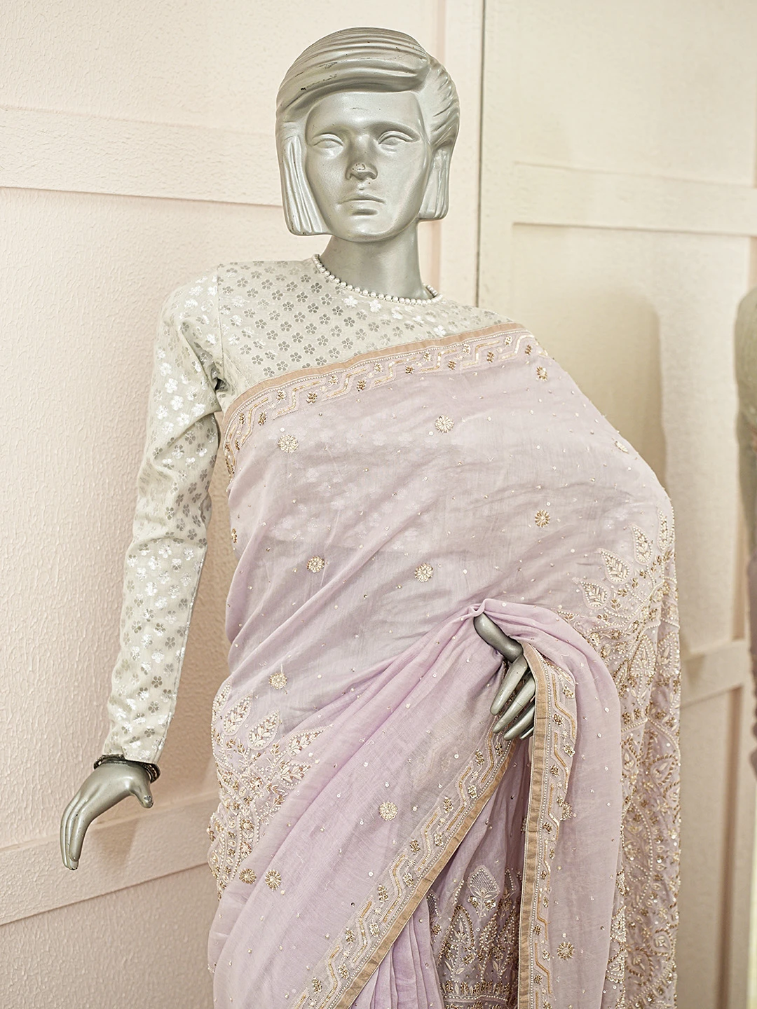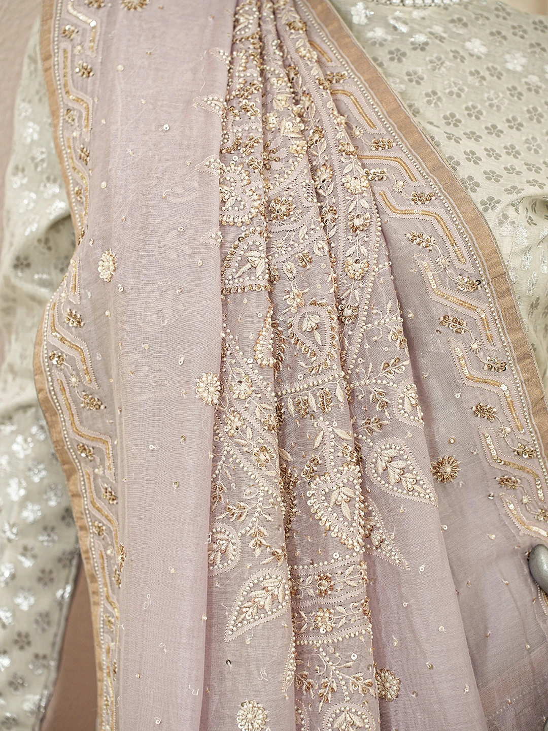 Ada Hand Embroidered Lavender Chanderi Lucknowi Chikankari Saree With Blouse With Cutdana Work 01A370439