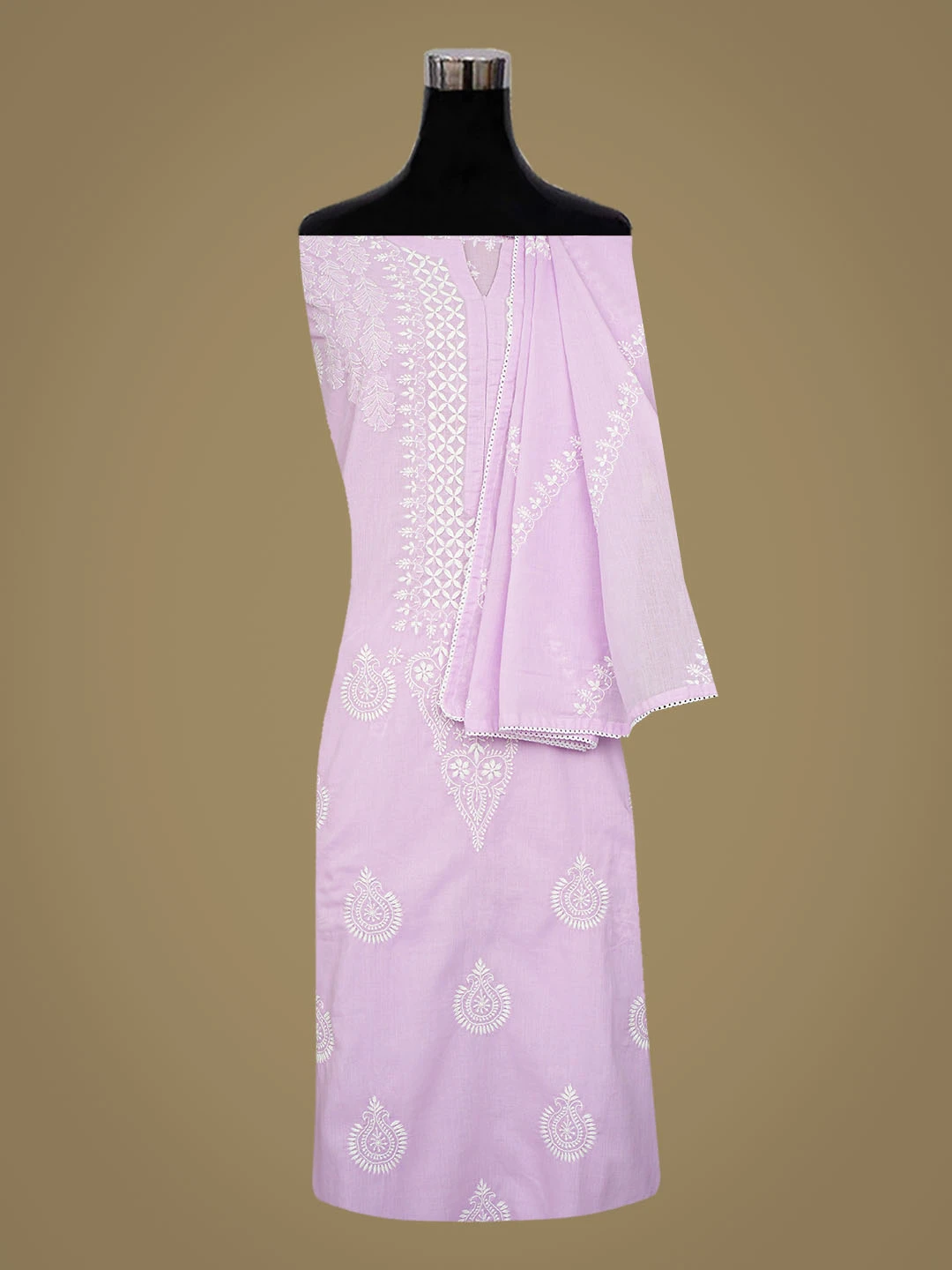 Ada Hand Embroidered Lavender Cotton Lucknowi Chikankari Semi-Stitched Kurta Dupatta Set 01A791339