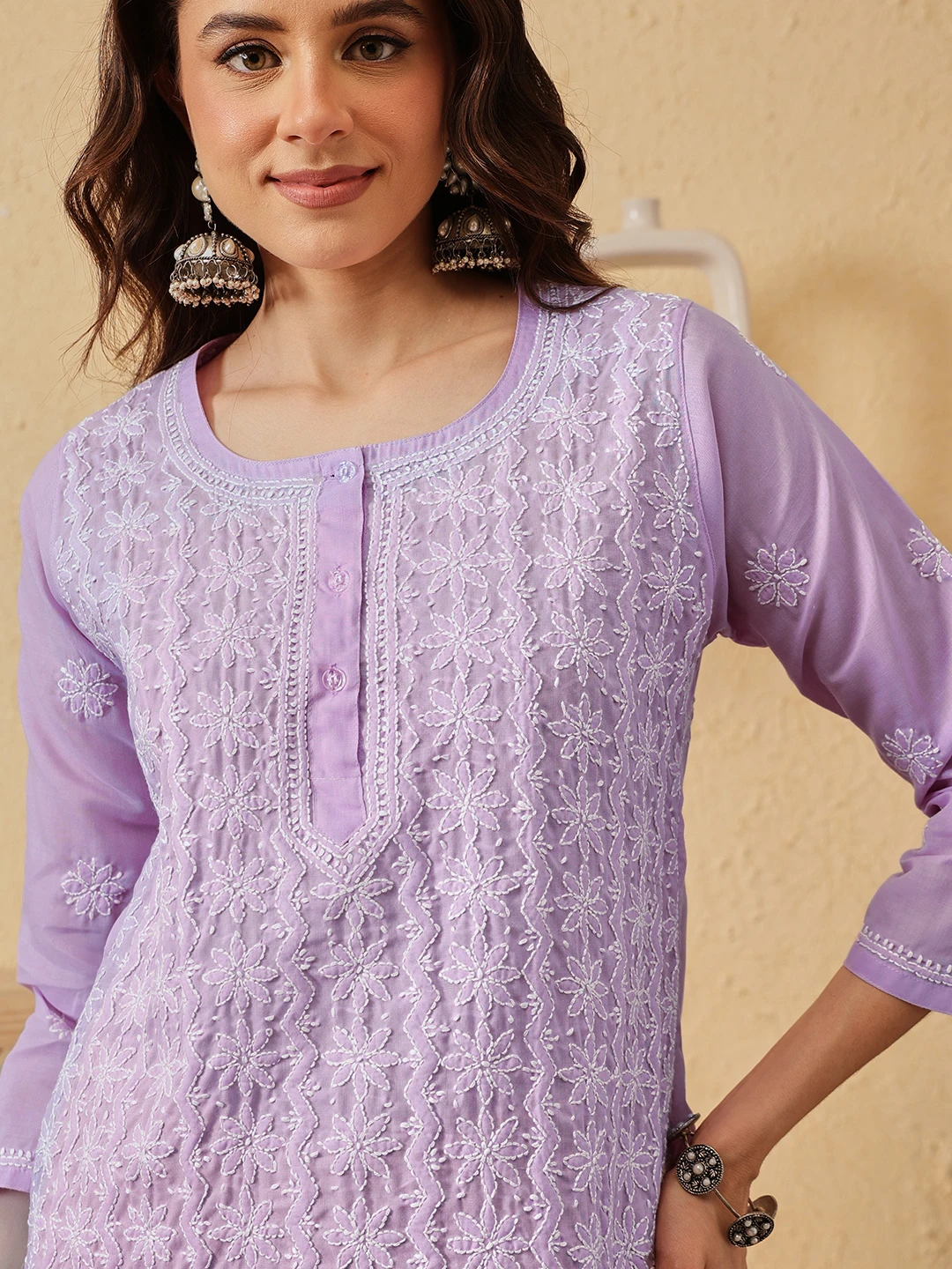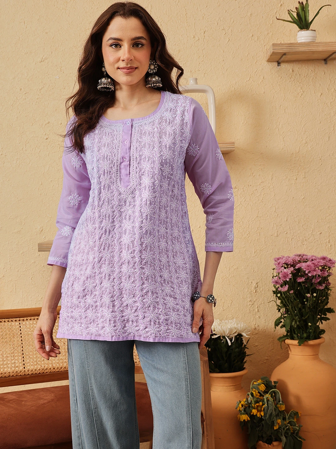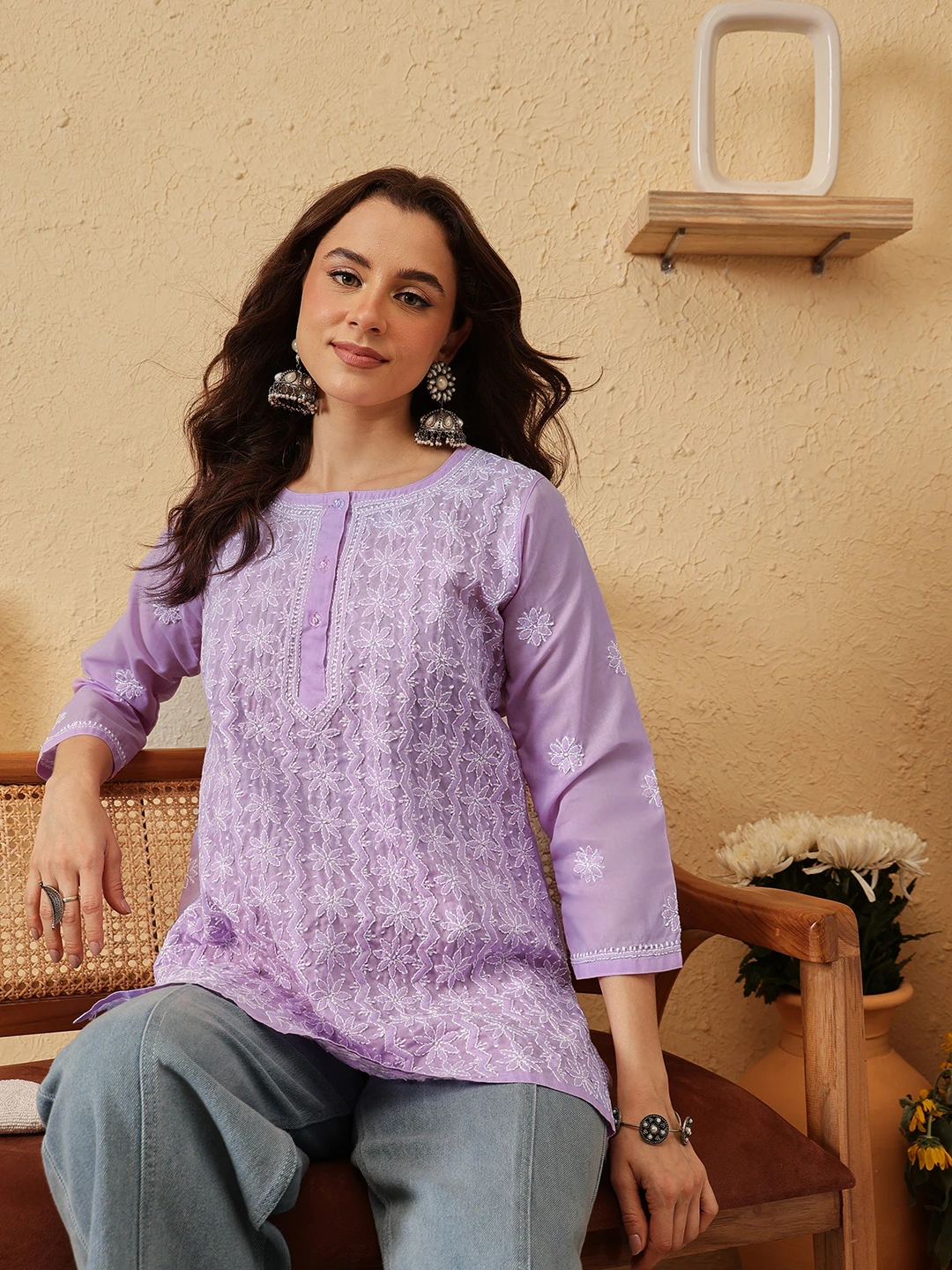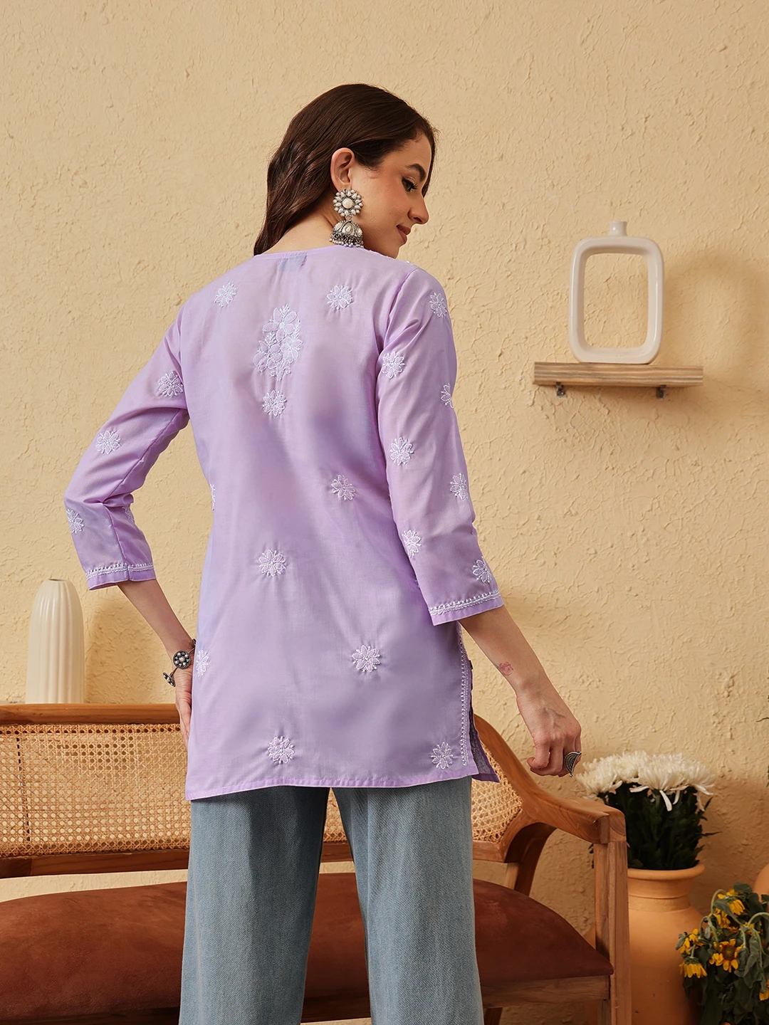 Ada Hand Embroidered Lavender Cotton Lucknowi Chikankari Short Kurti A911523