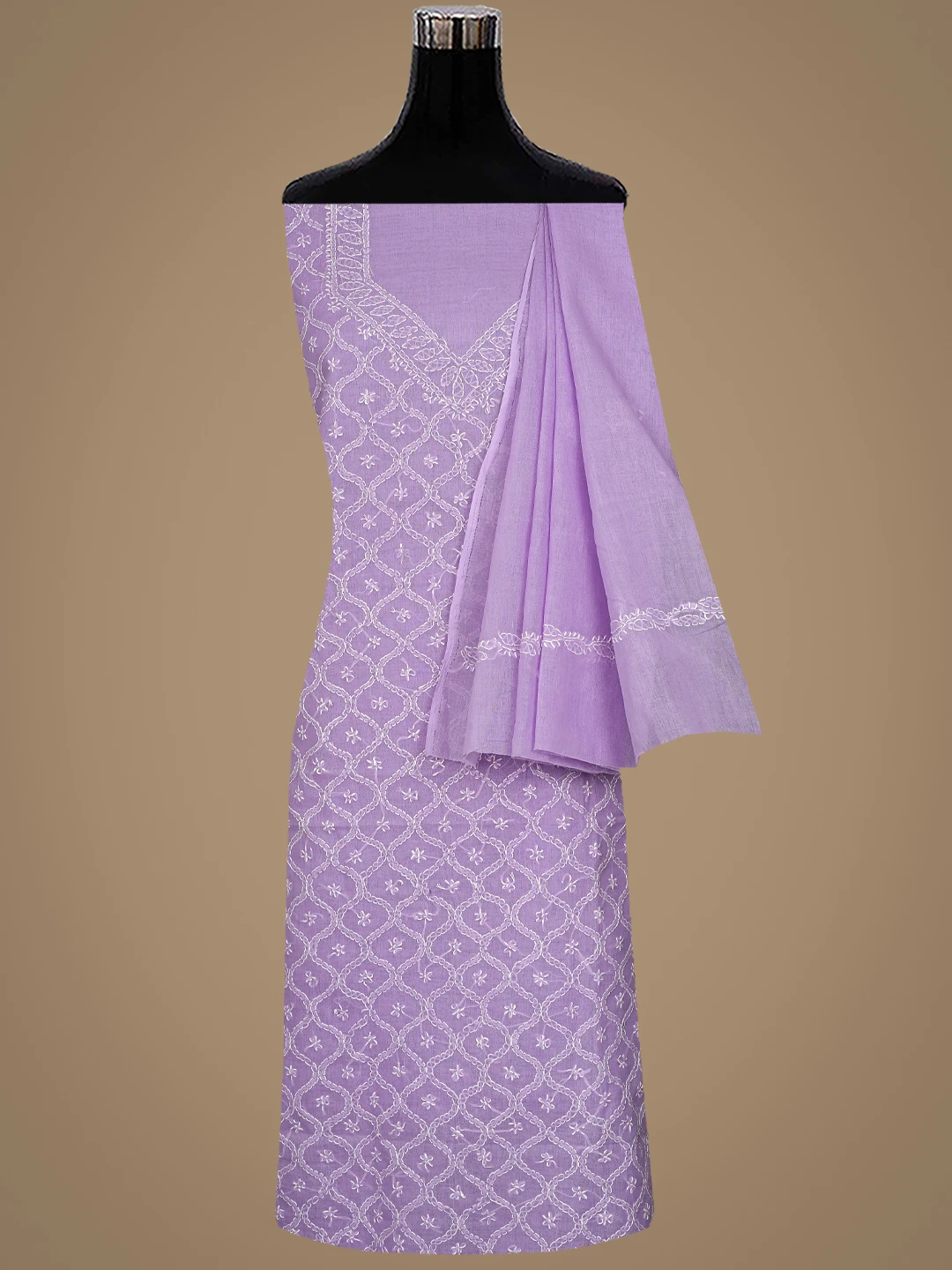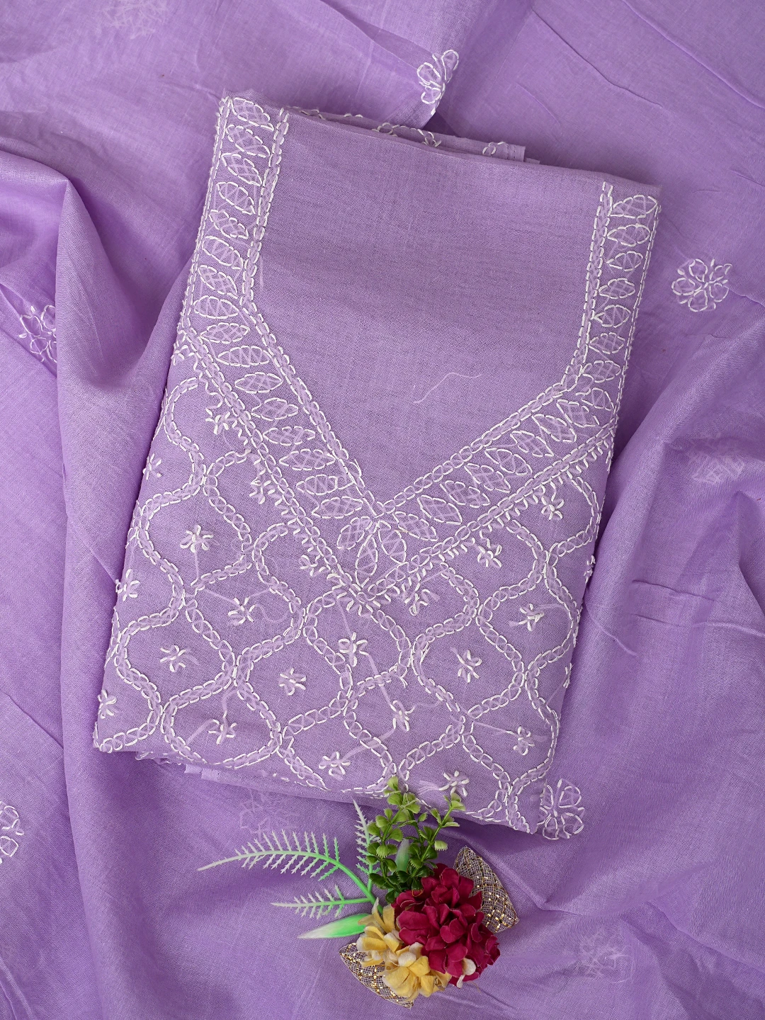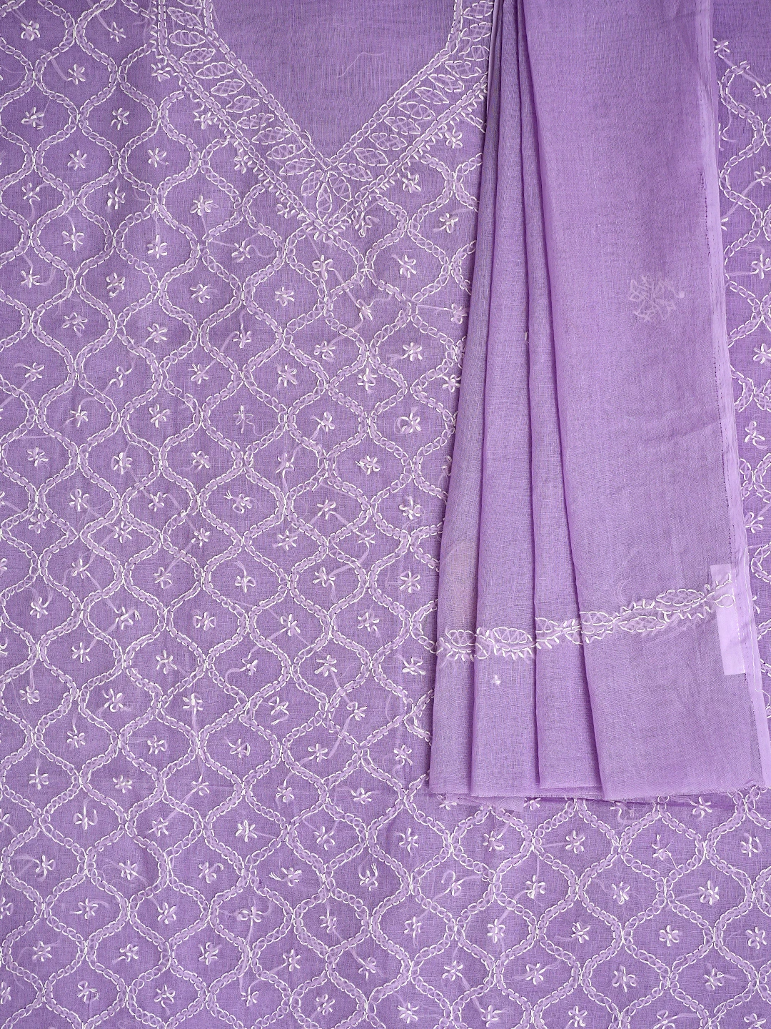Ada Hand Embroidered Lavender Cotton Lucknowi Chikankari Unstitched Suit Piece 01A854949