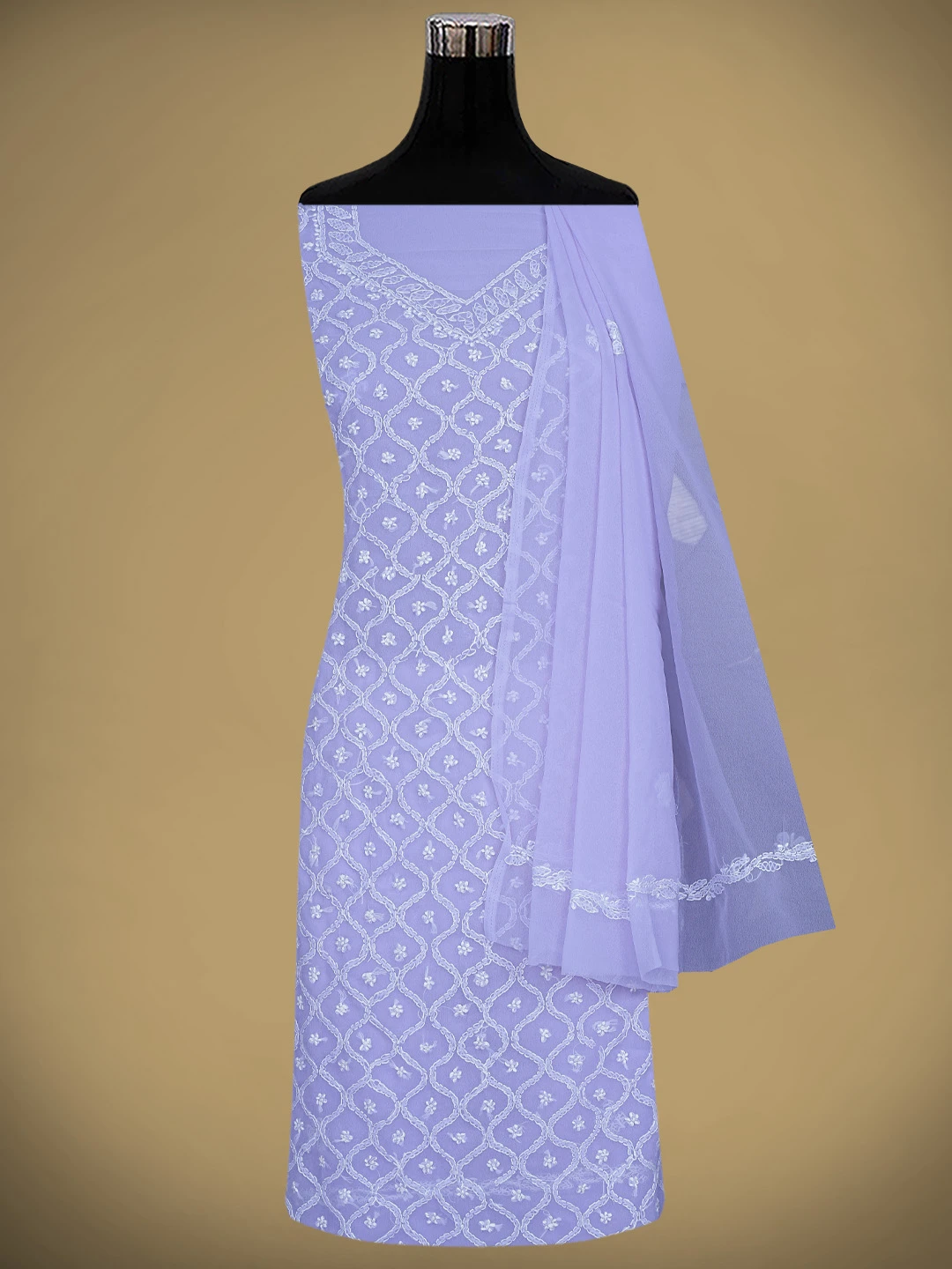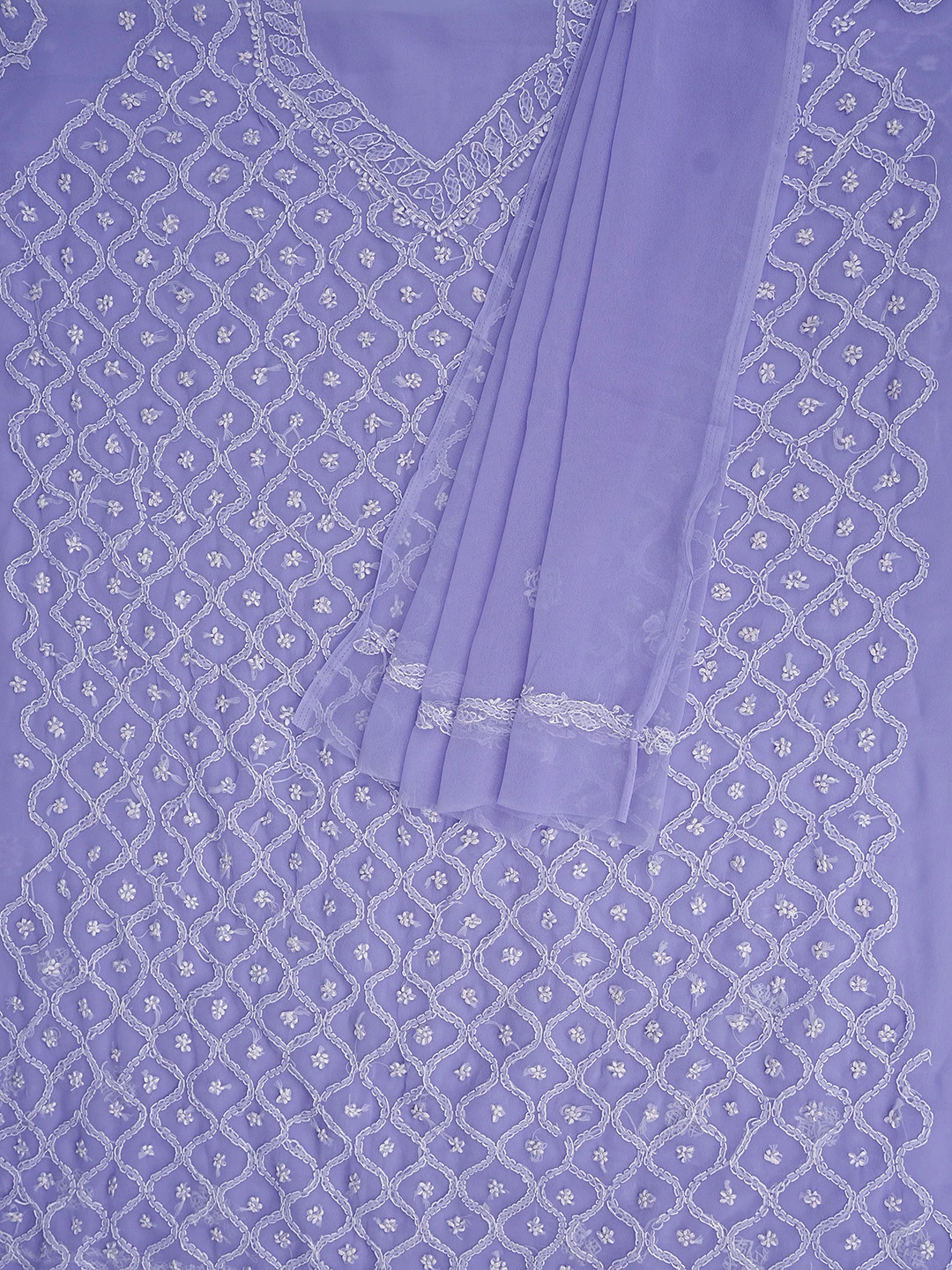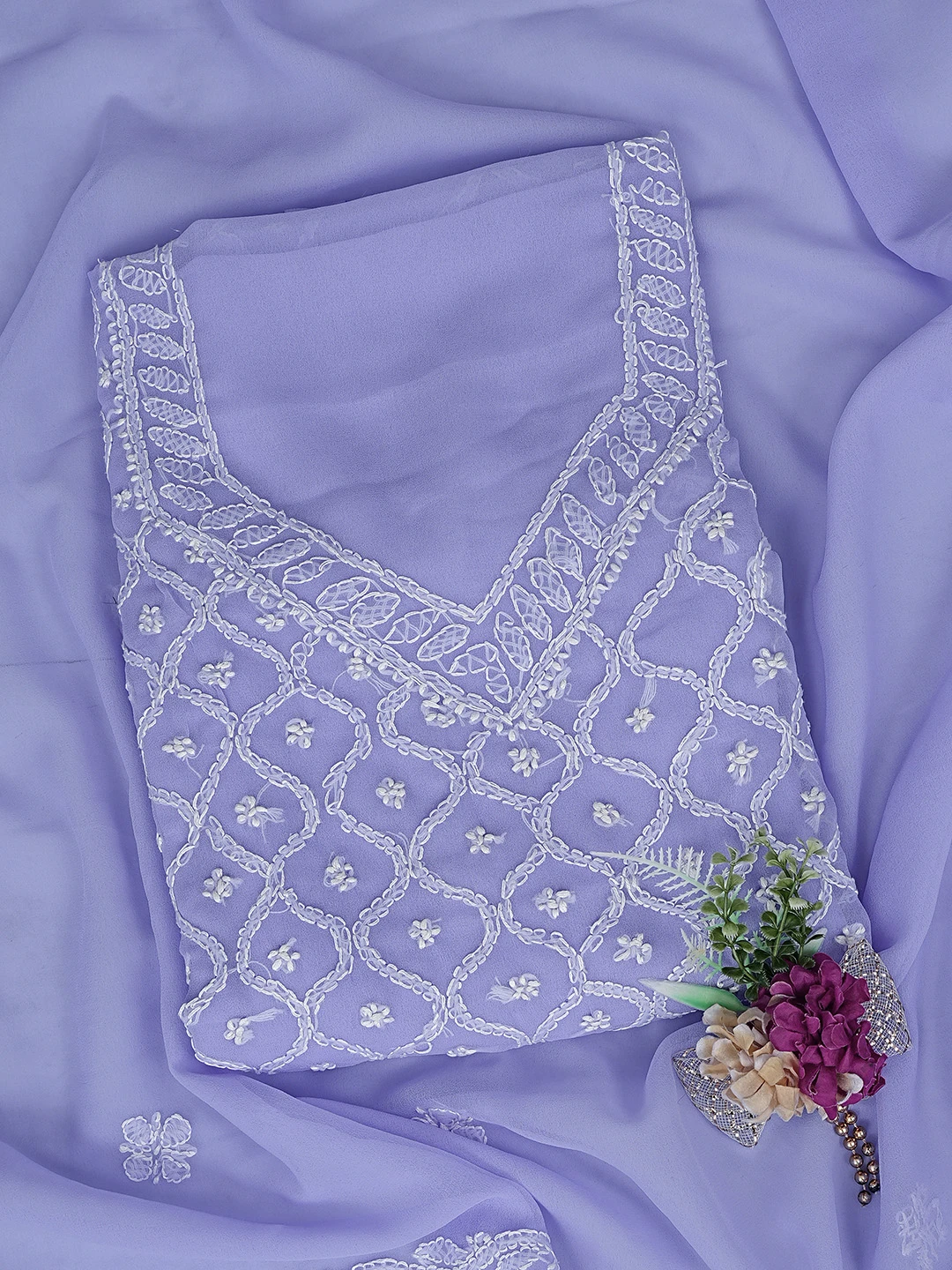 Ada Hand Embroidered Lavender Georgette Lucknowi Chikankari Unstitched Suit Piece 01A879241