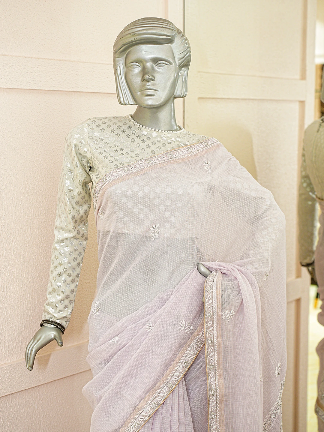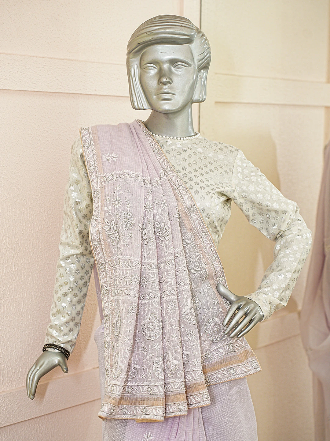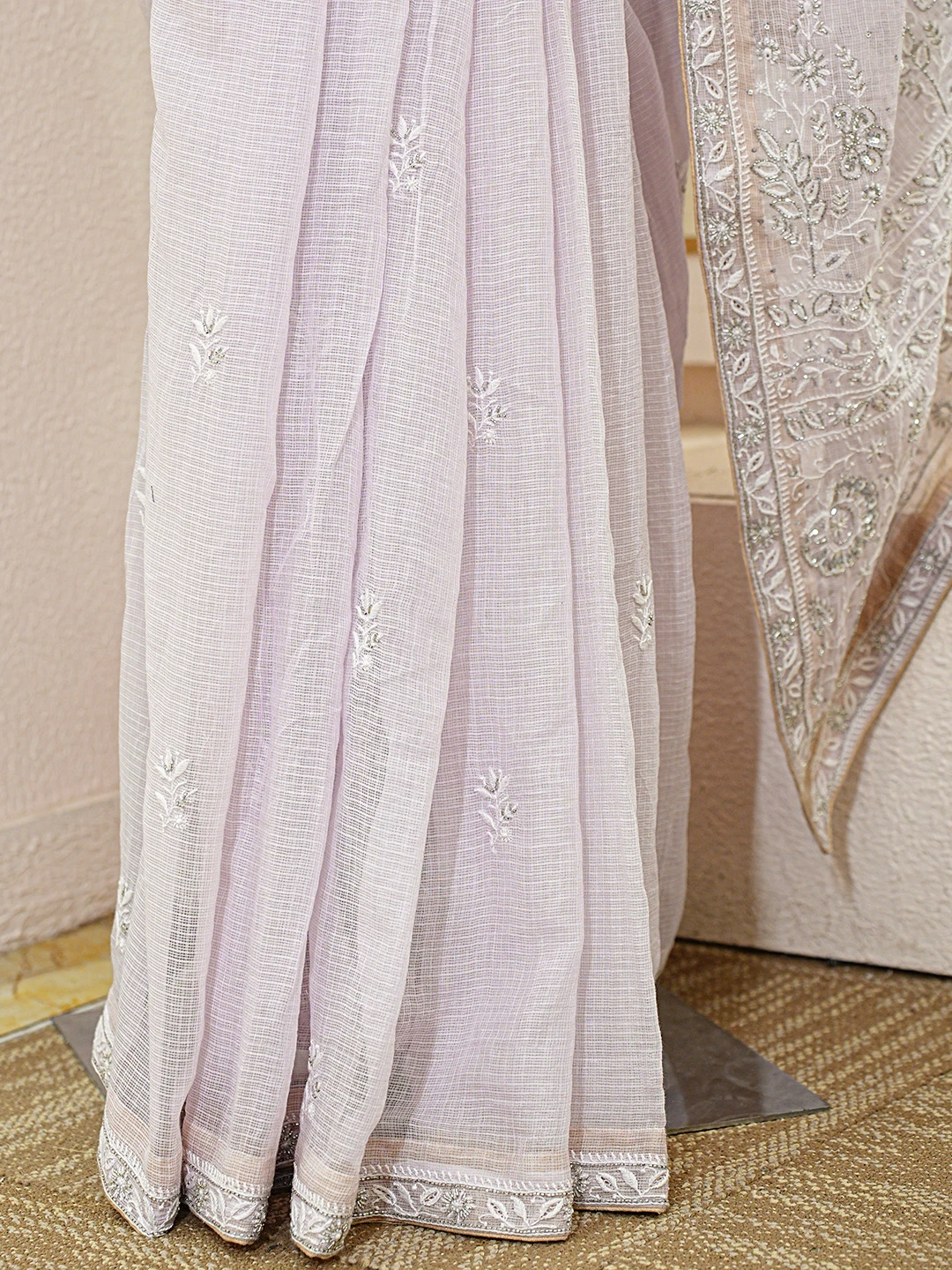 Ada Hand Embroidered Lavender Kota Lucknowi Chikankari Saree With Blouse With Cutdana Work 01A695768