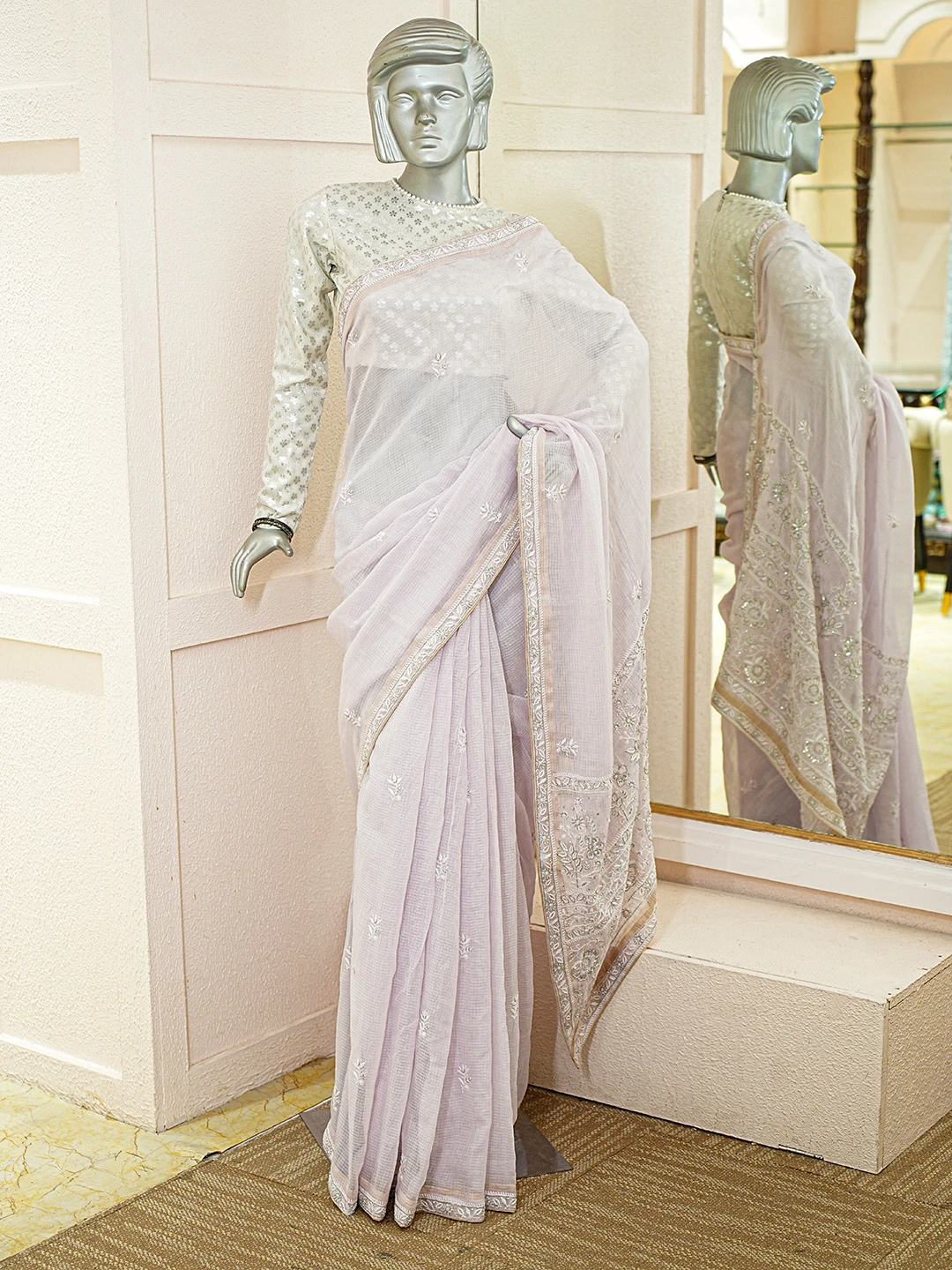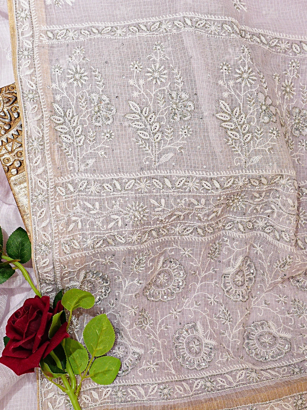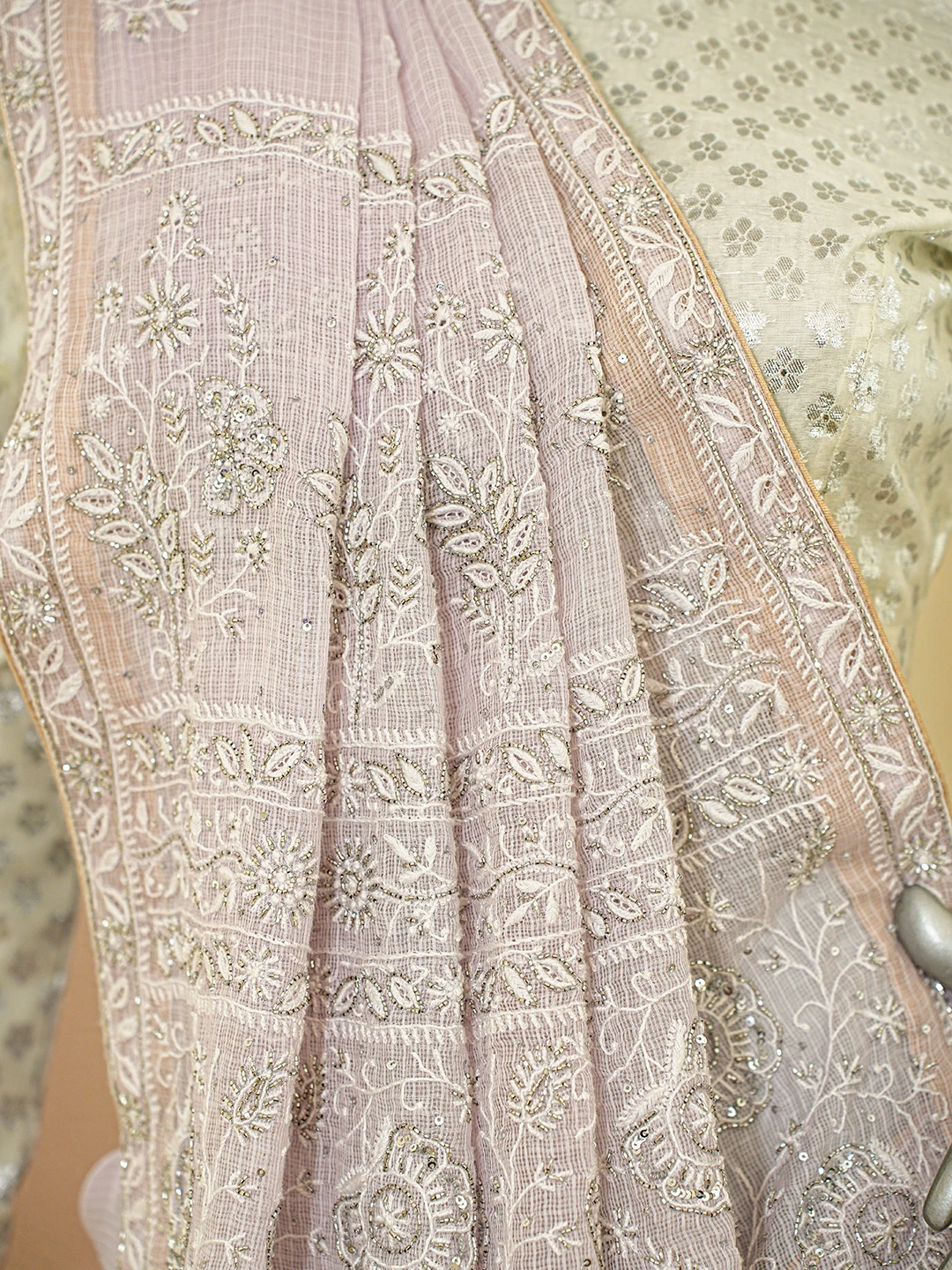 Ada Hand Embroidered Lavender Kota Lucknowi Chikankari Saree With Blouse With Cutdana Work 01A695768