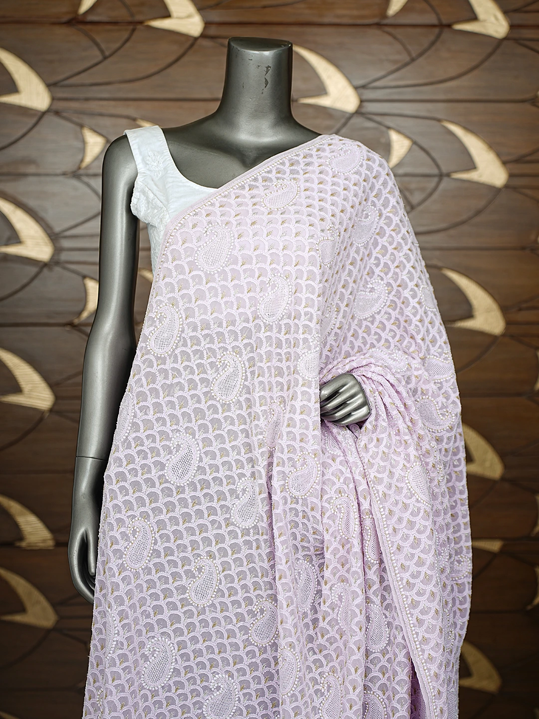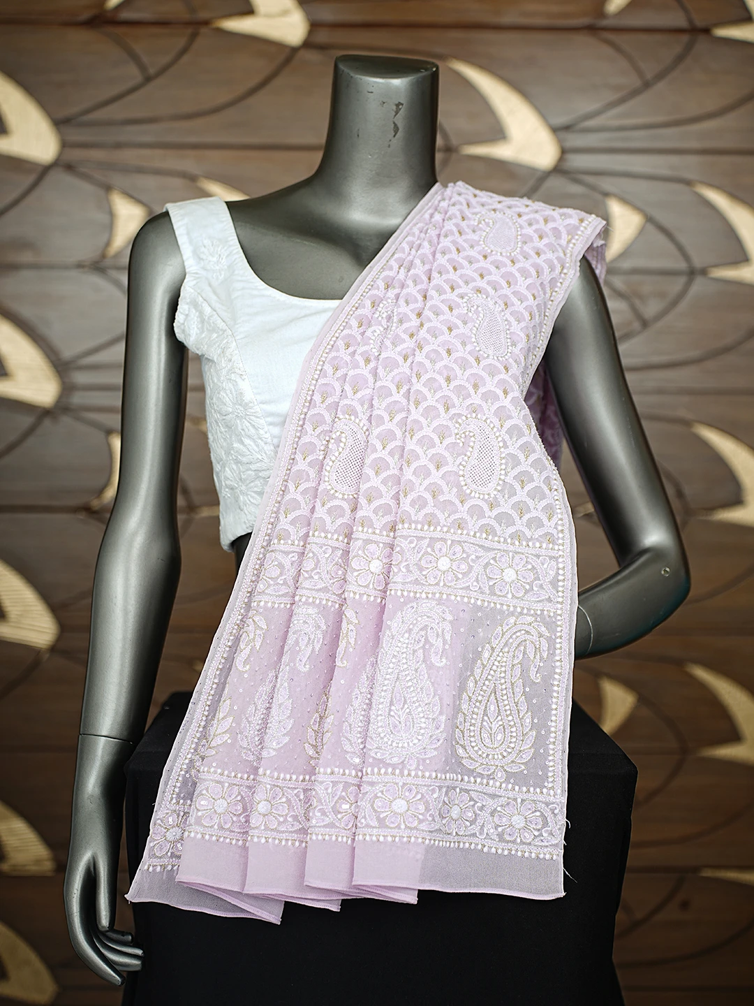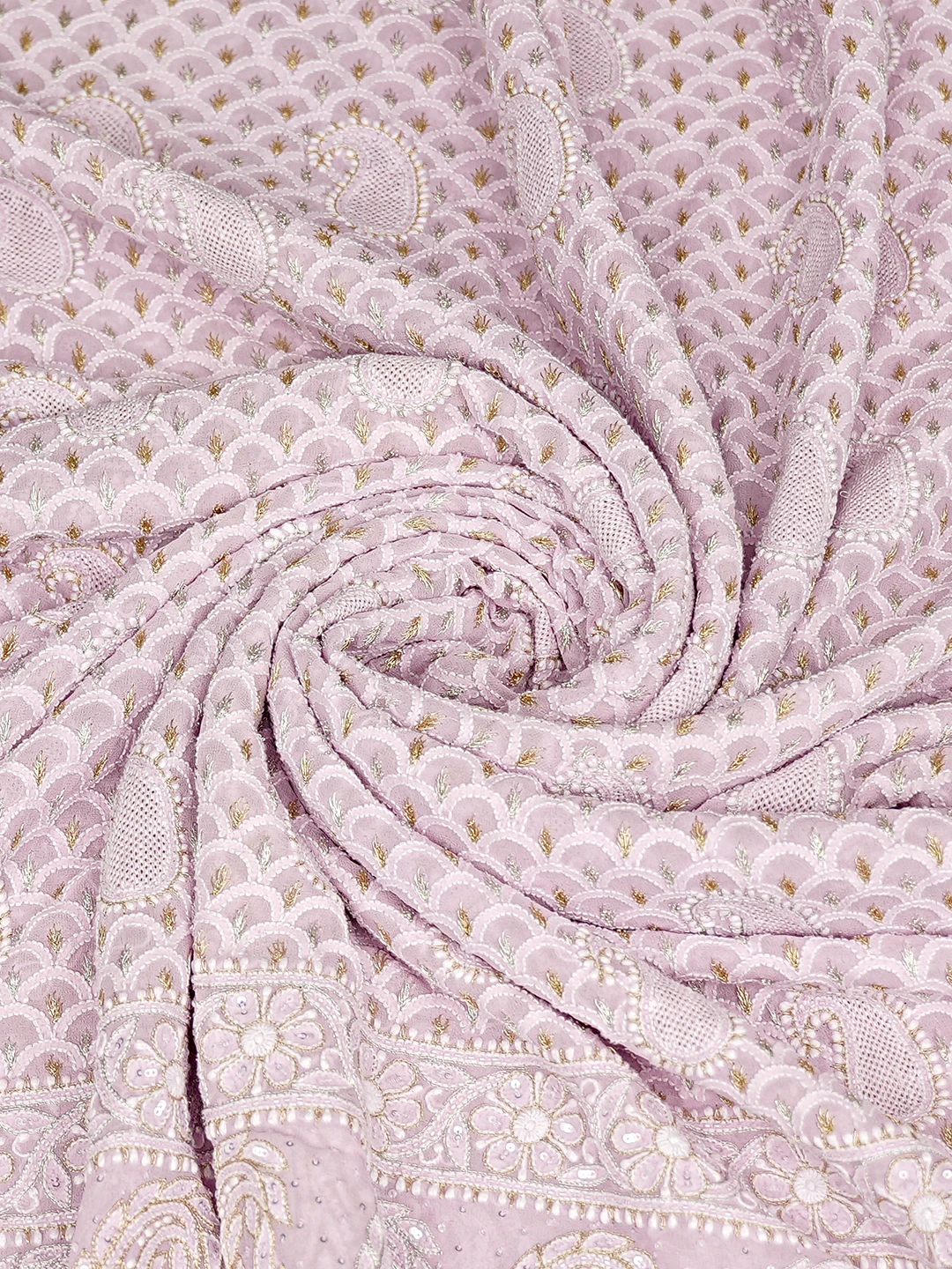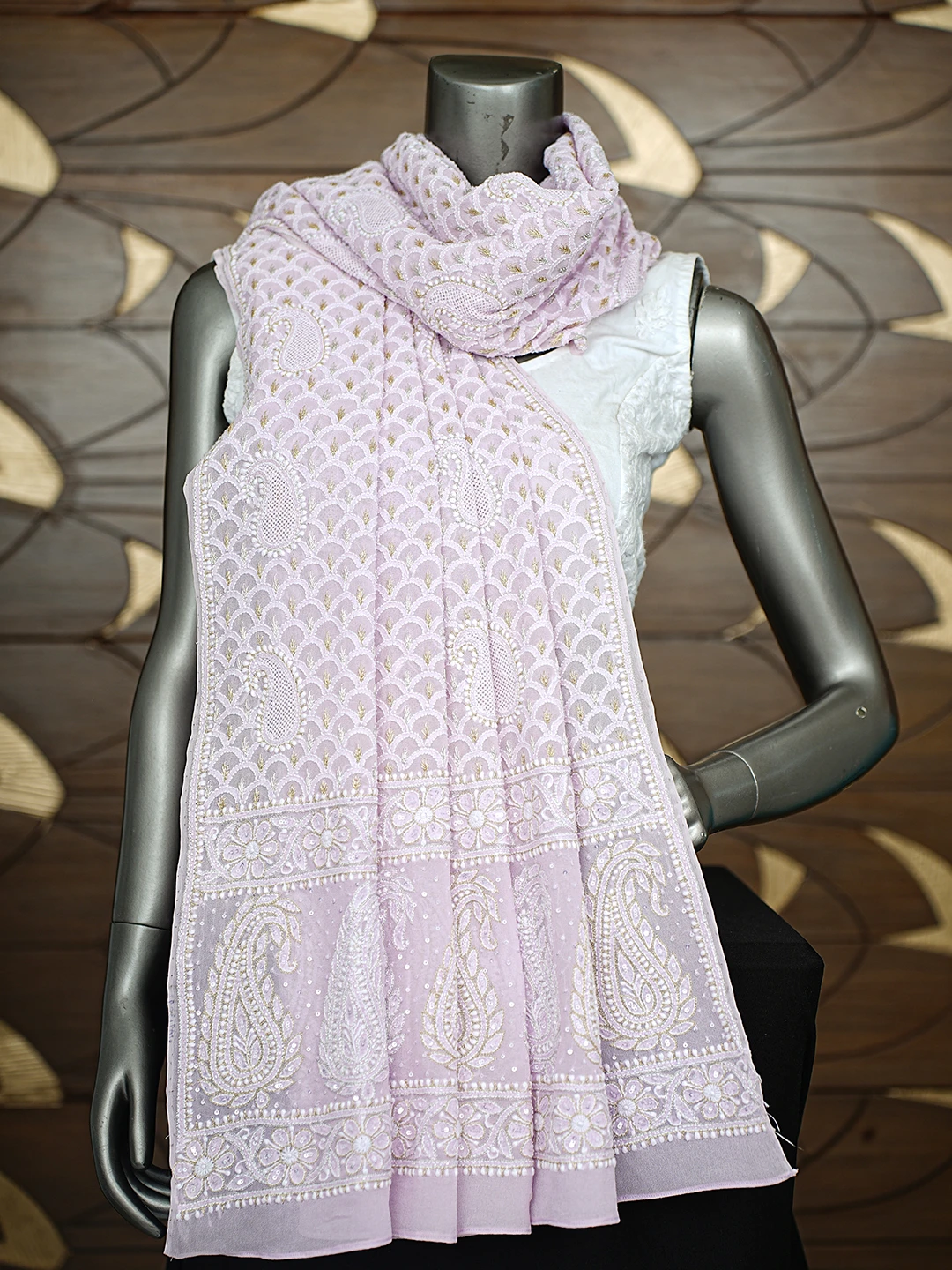 Ada Hand Embroidered Lavender Pure Georgette Dupatta With Zari Work 01A713042