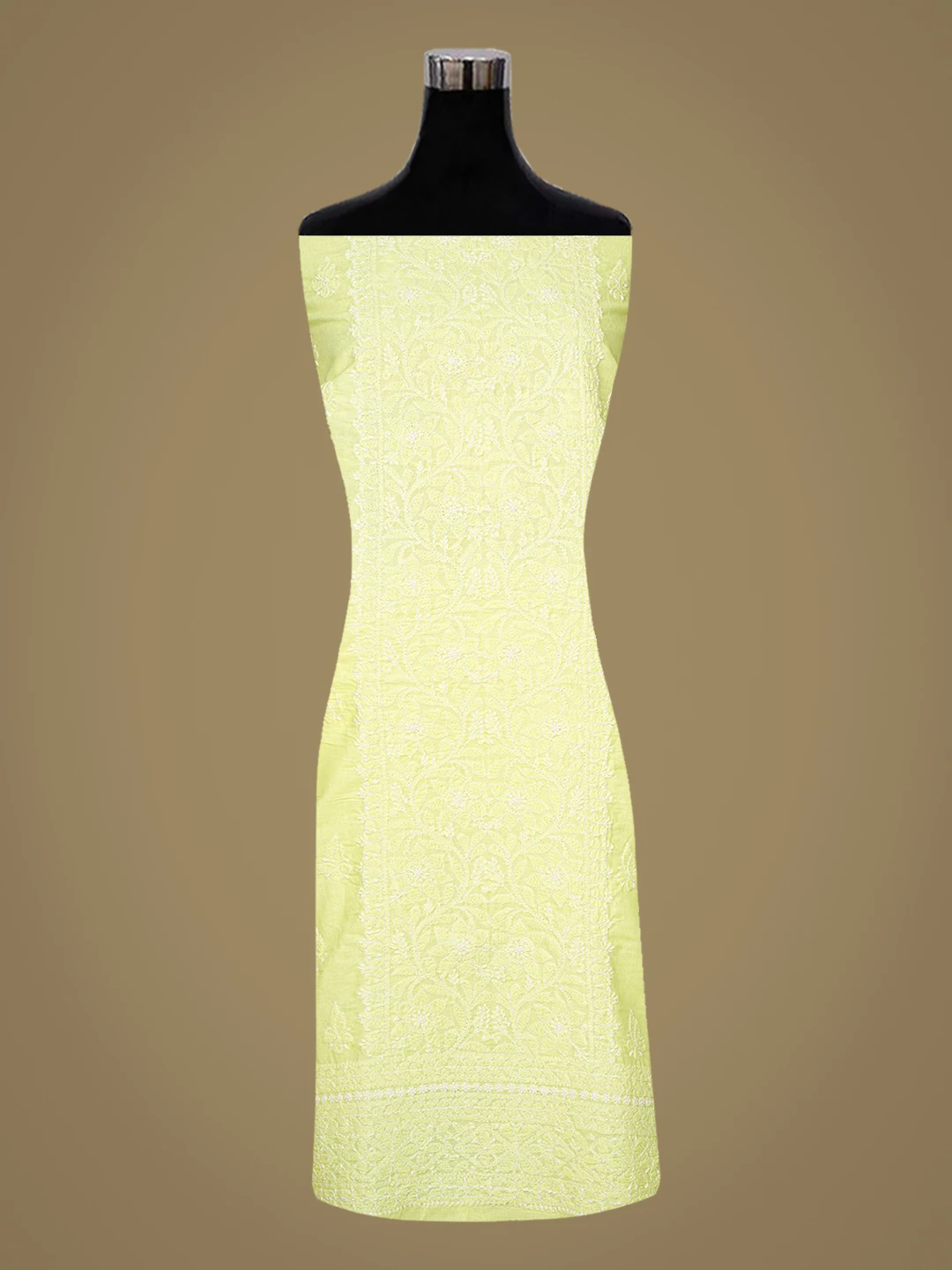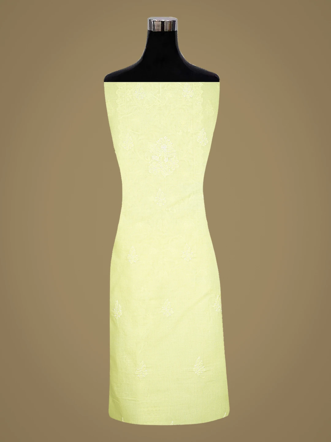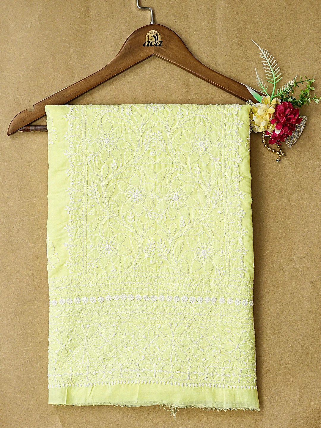 Ada Hand Embroidered Lemon Cotton Lucknowi Chikankari Unstitched Kurta Piece 01A759443