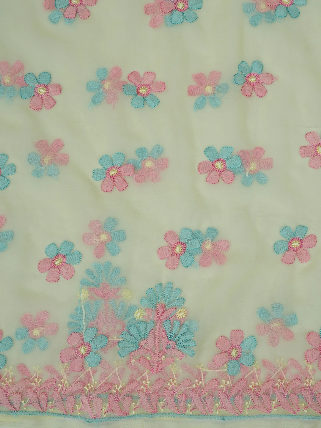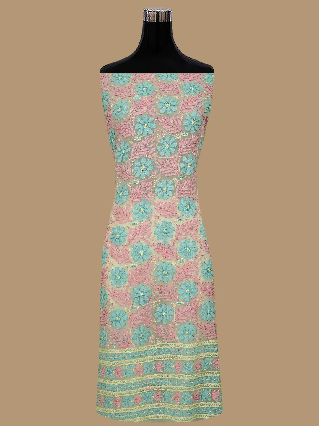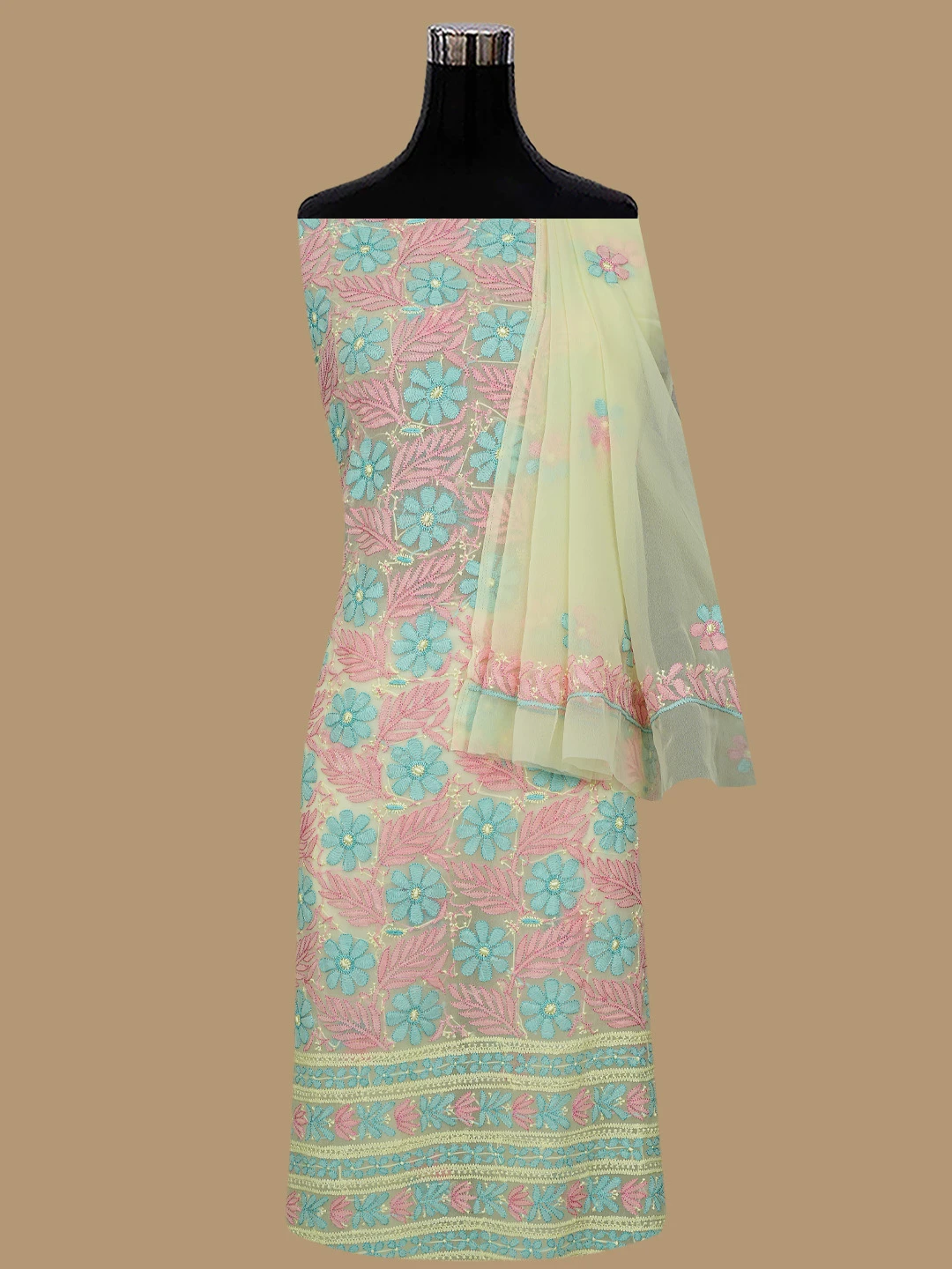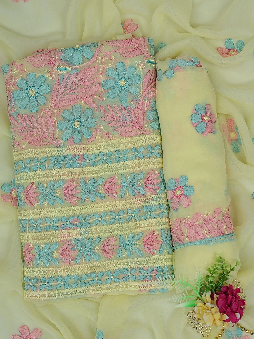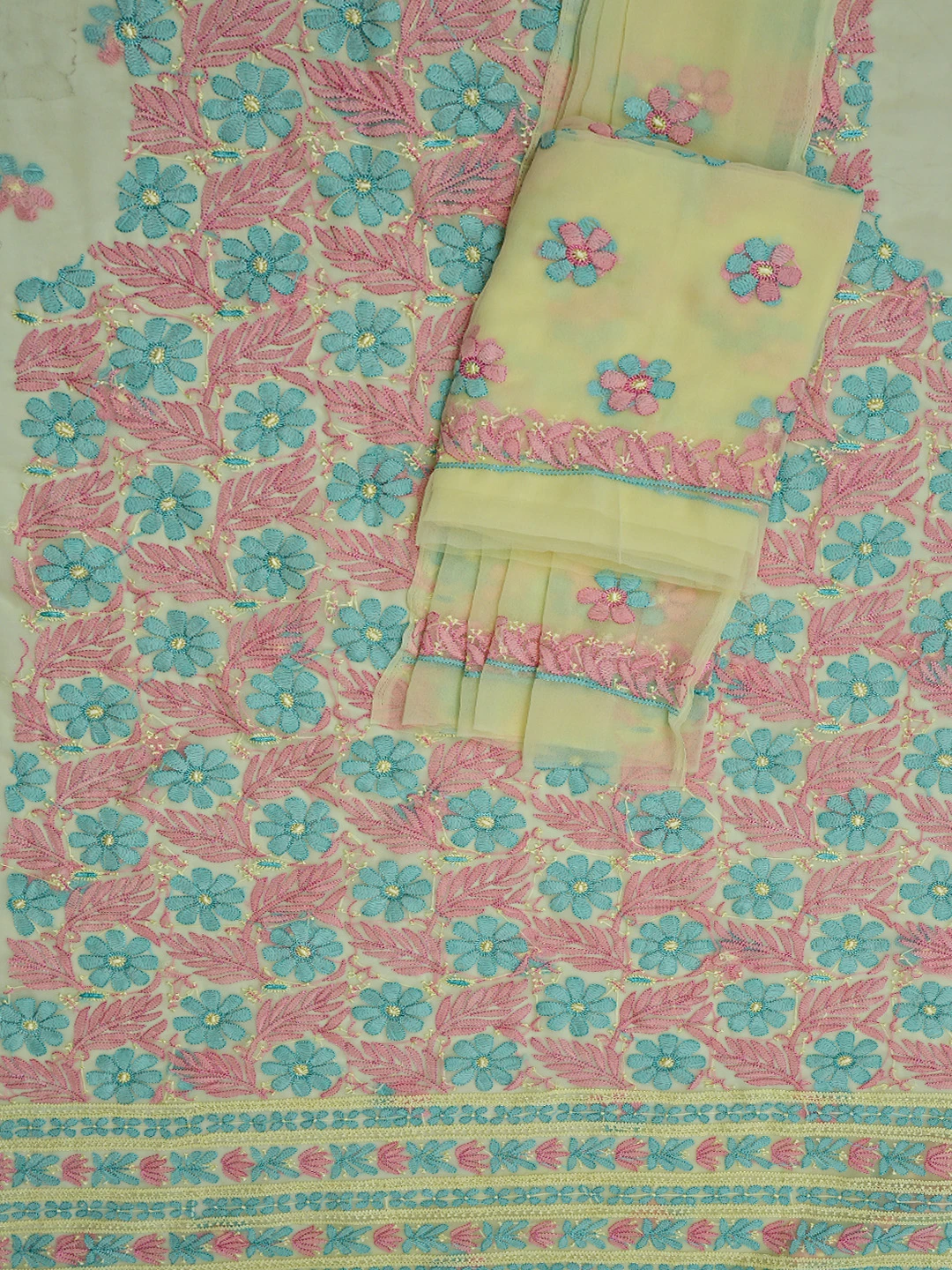 Ada Hand Embroidered Lemon Georgette Lucknowi Chikankari Unstitched Suit Piece 01A833118