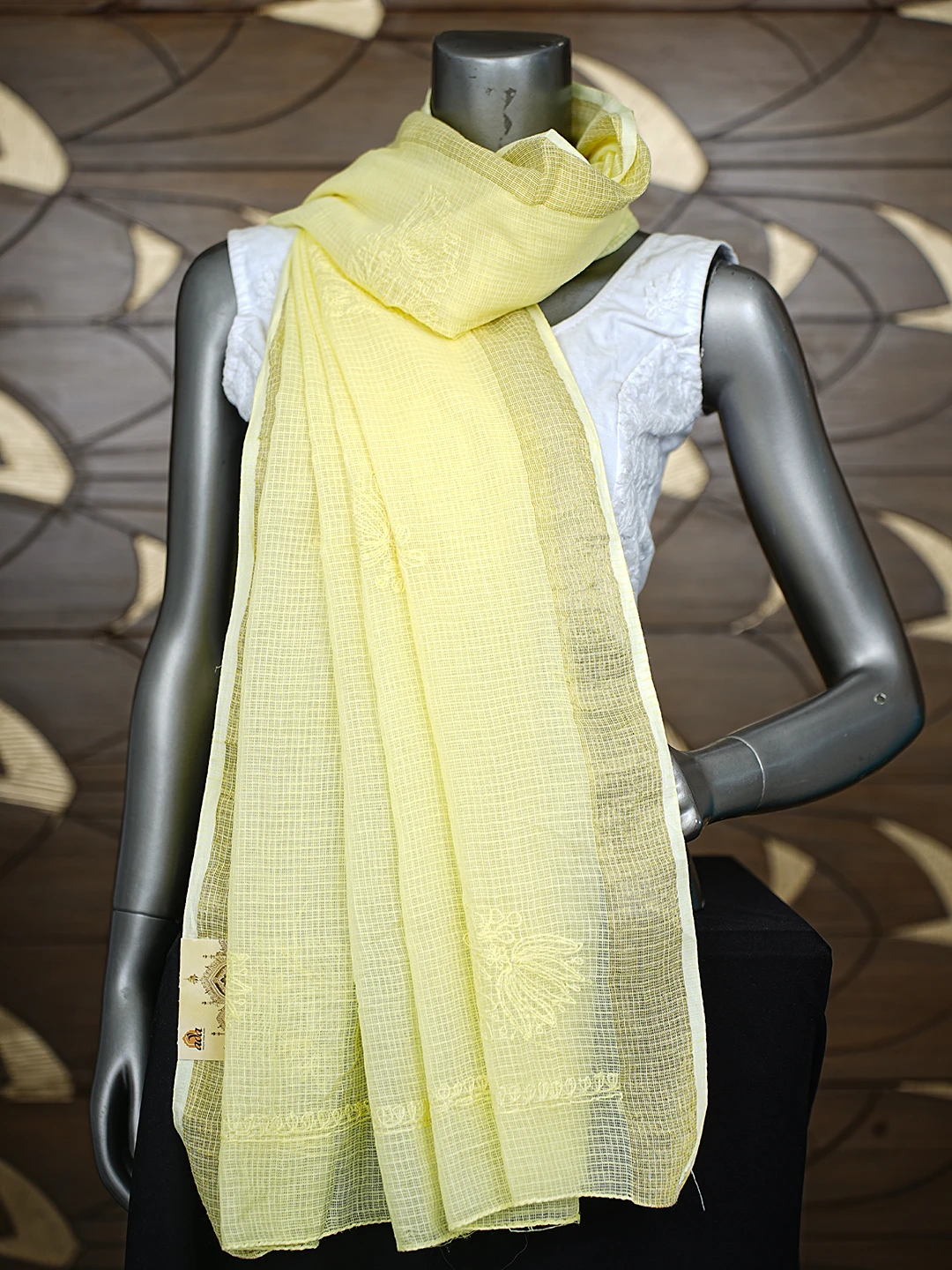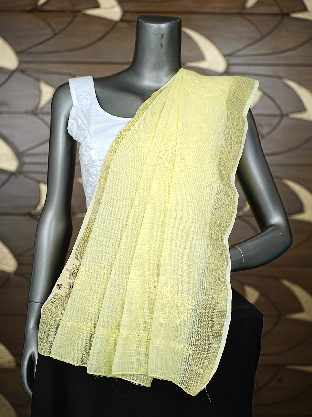 Ada Hand Embroidered Lemon Kota Lucknowi Chikankari Dupatta 01A731692