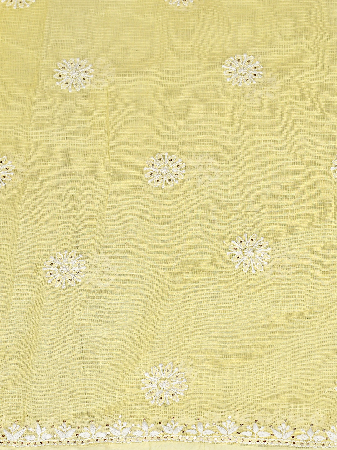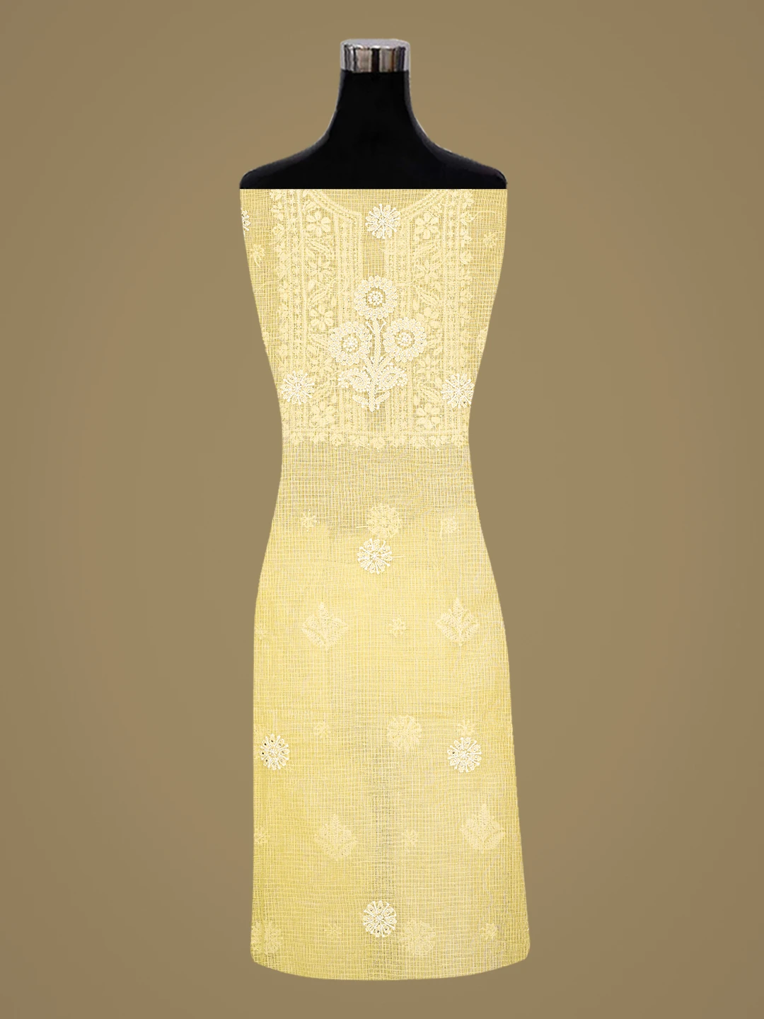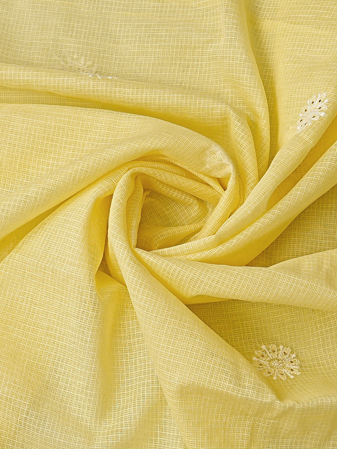 Ada Hand Embroidered Lemon Kota Lucknowi Chikankari Unstitched Kurta Dupatta Set With Mukaish Work 01A574061