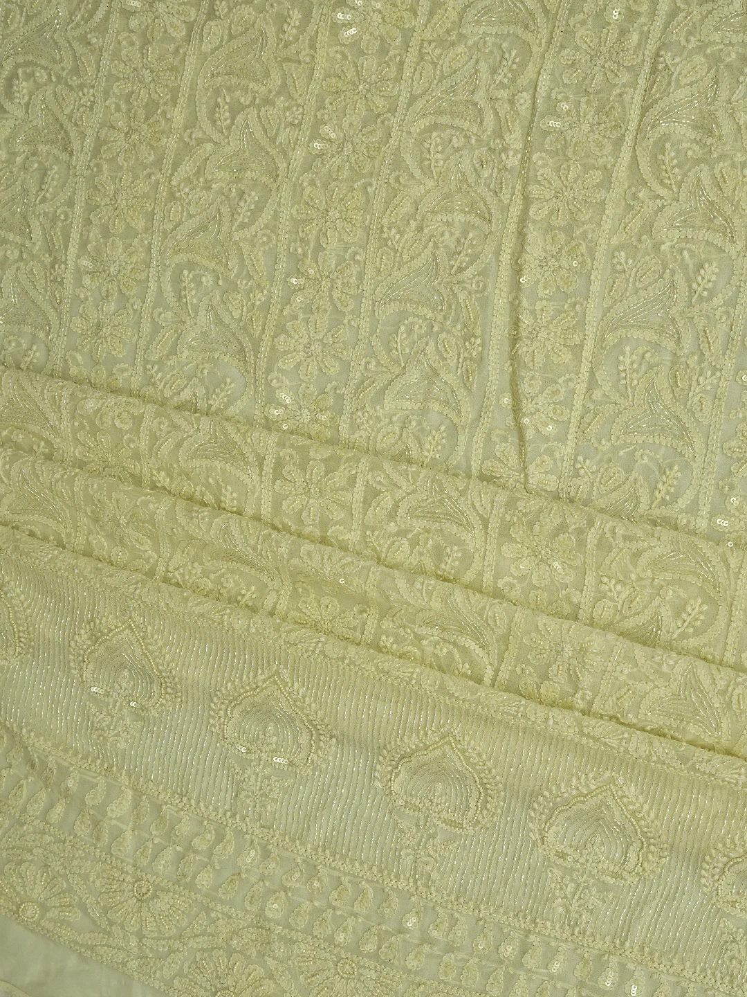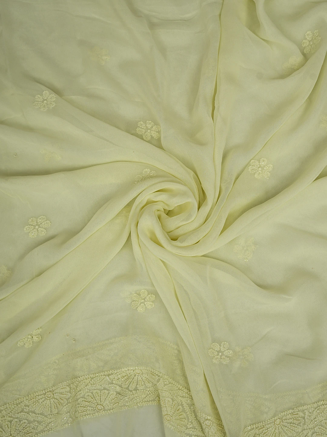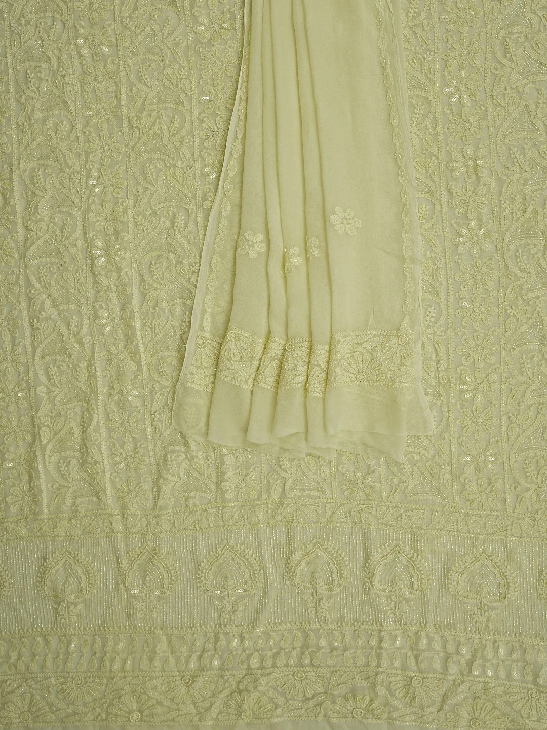 Ada Hand Embroidered Light Lemon Viscose Georgette Lucknowi Chikankari Unstitched Kurta Dupatta Set With Cutdana Work 01A792850