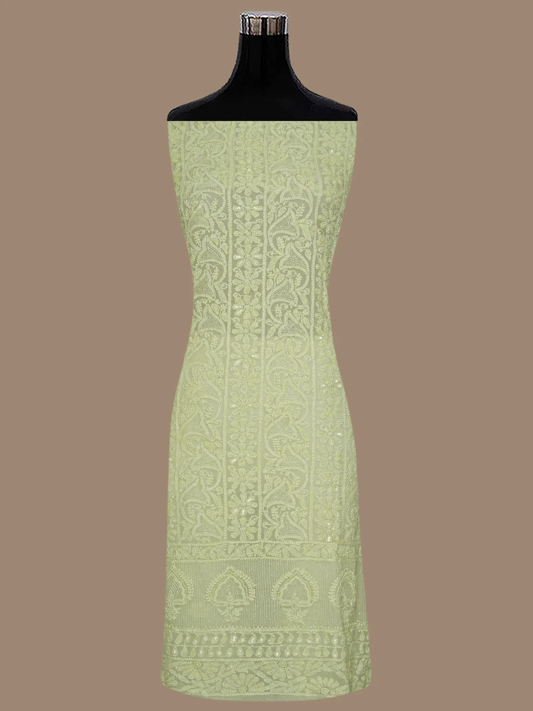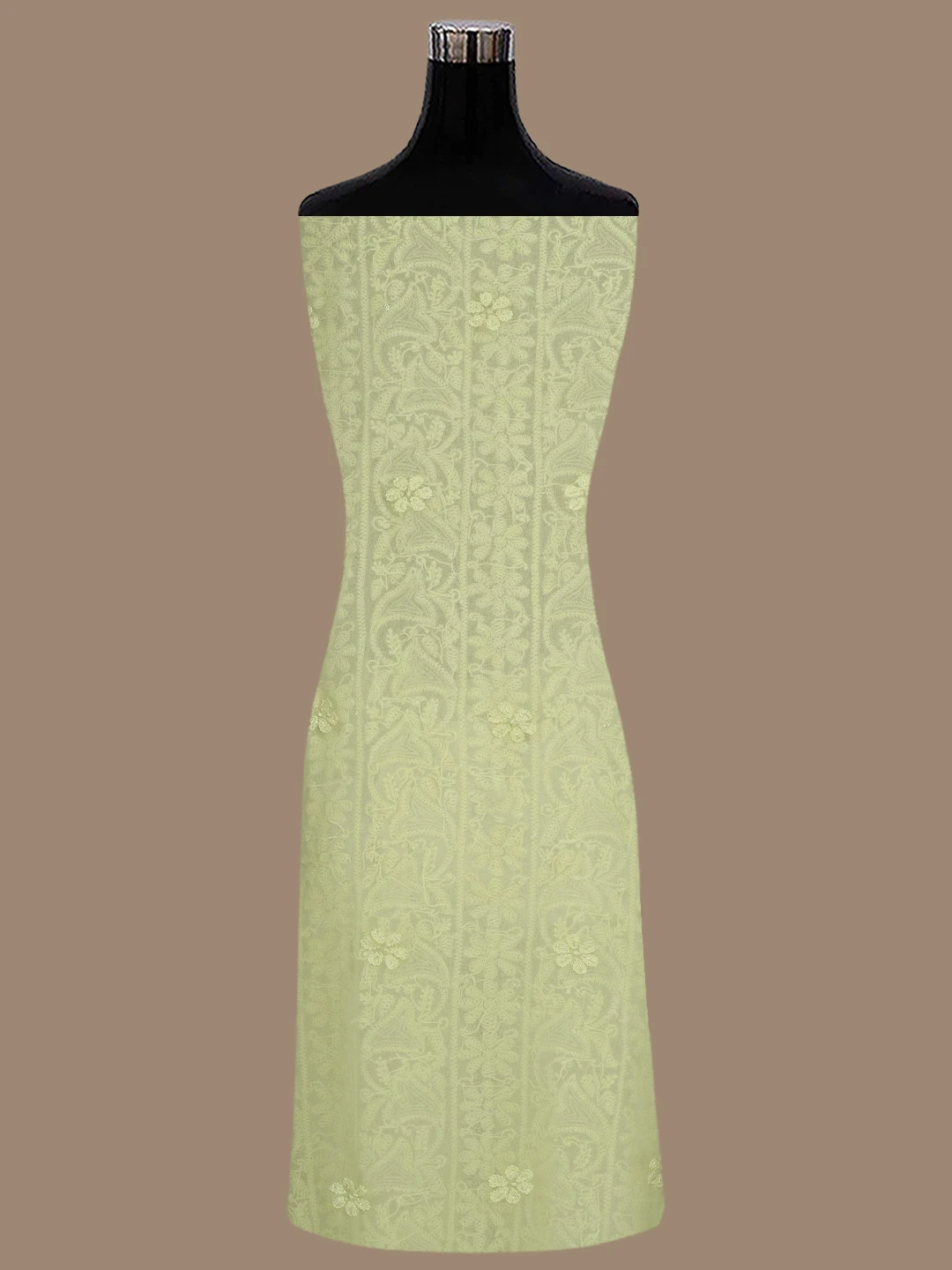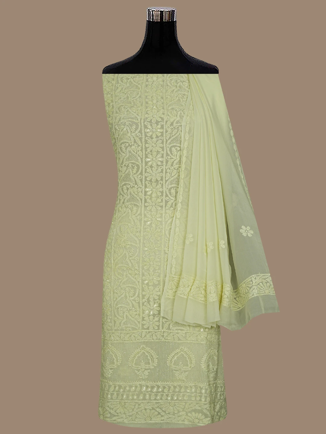 Ada Hand Embroidered Light Lemon Viscose Georgette Lucknowi Chikankari Unstitched Kurta Dupatta Set With Cutdana Work 01A792850