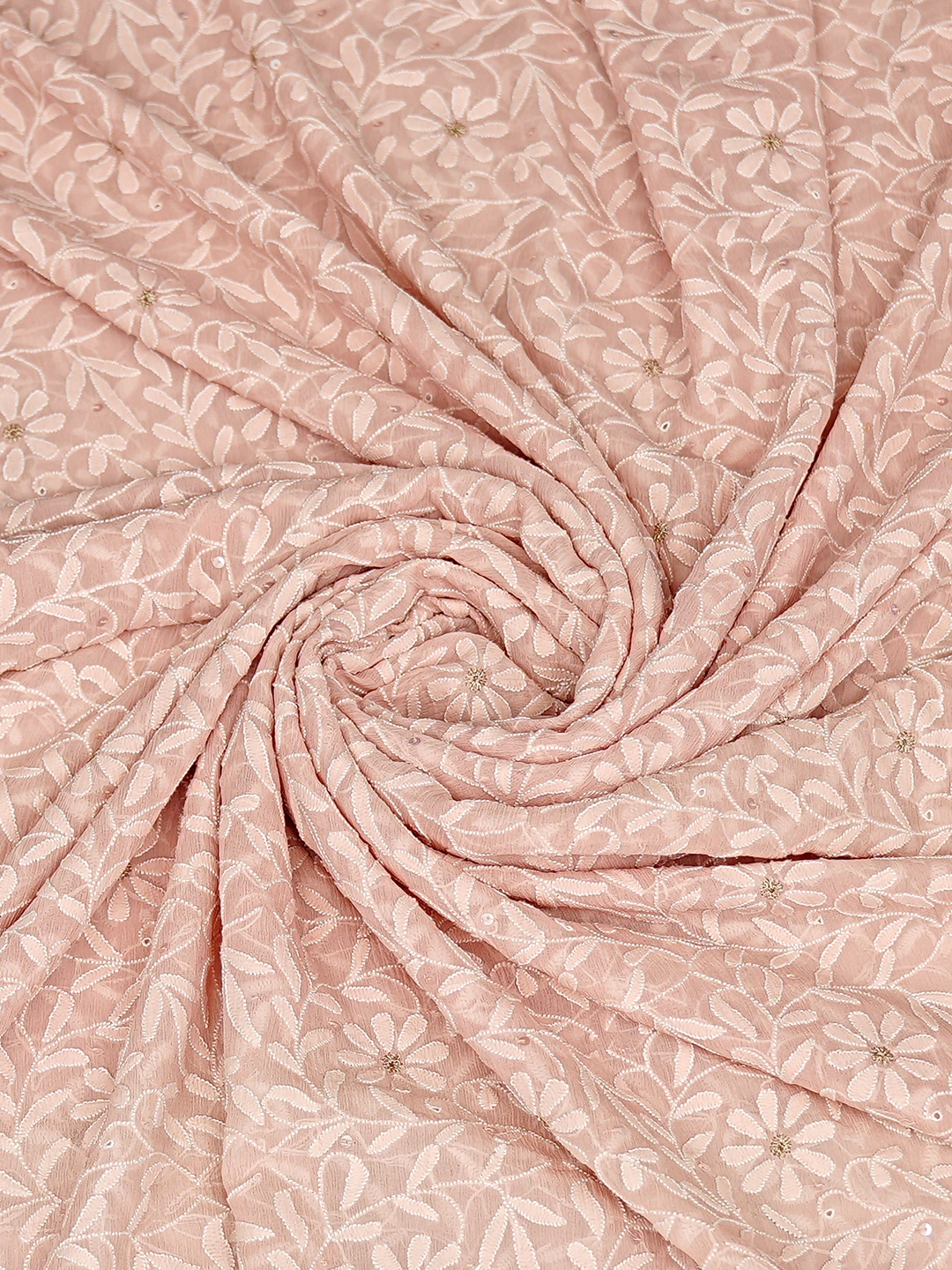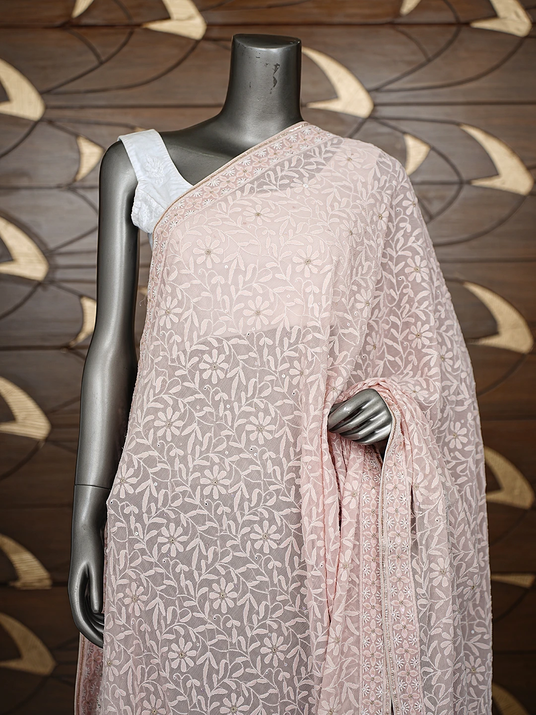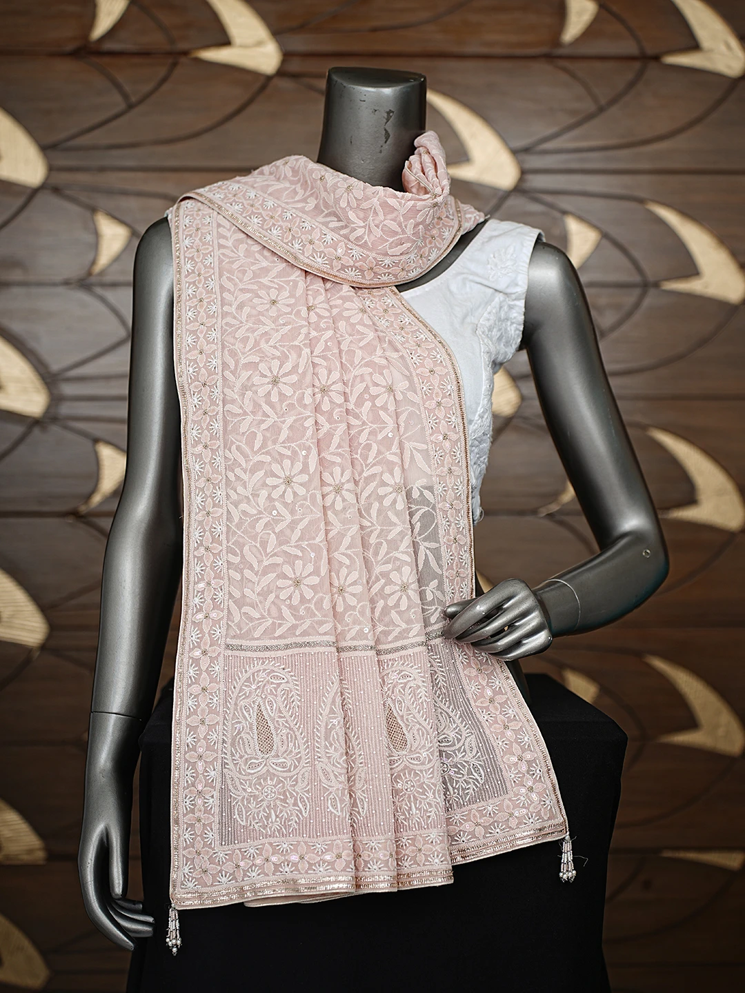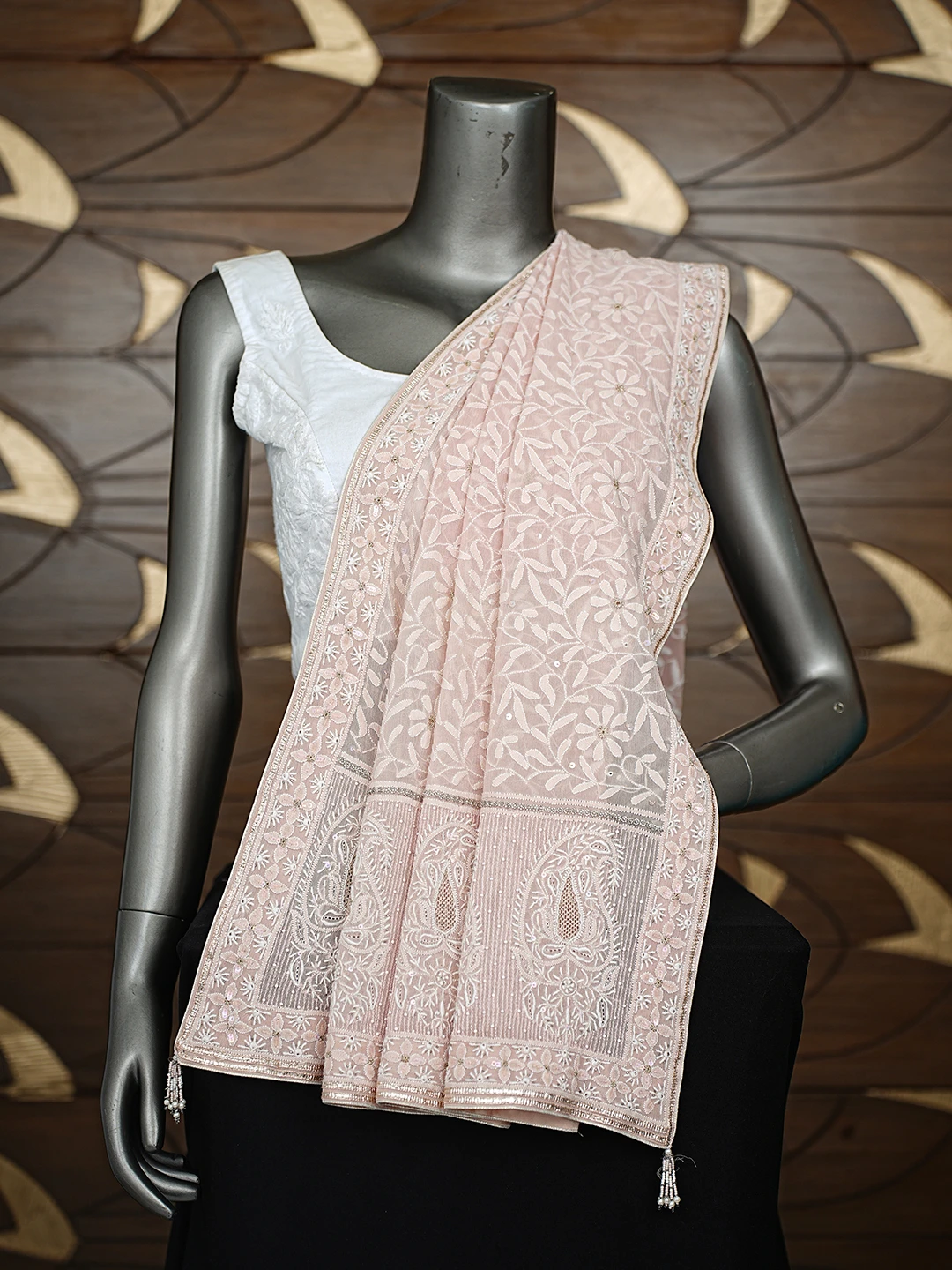 Ada Hand Embroidered Light Peach Chiffon Lucknowi Chikankari Dupatta With Zari Work A575126