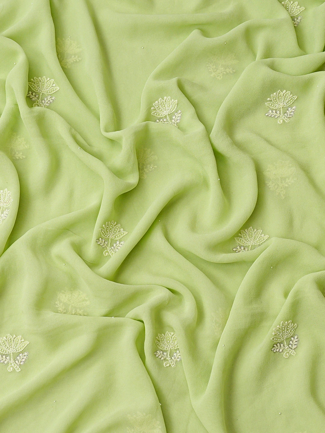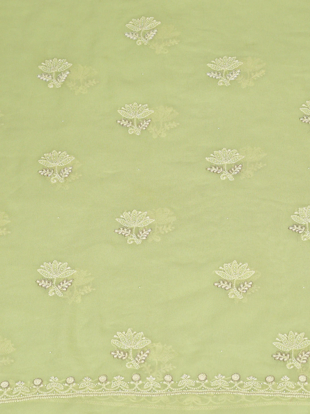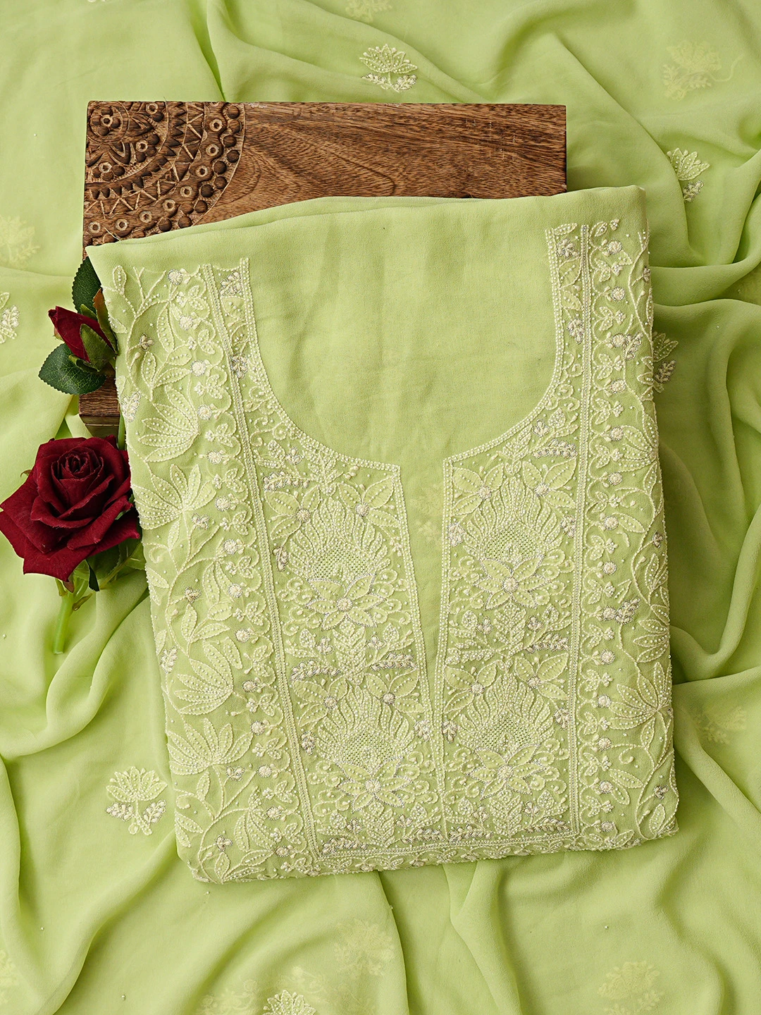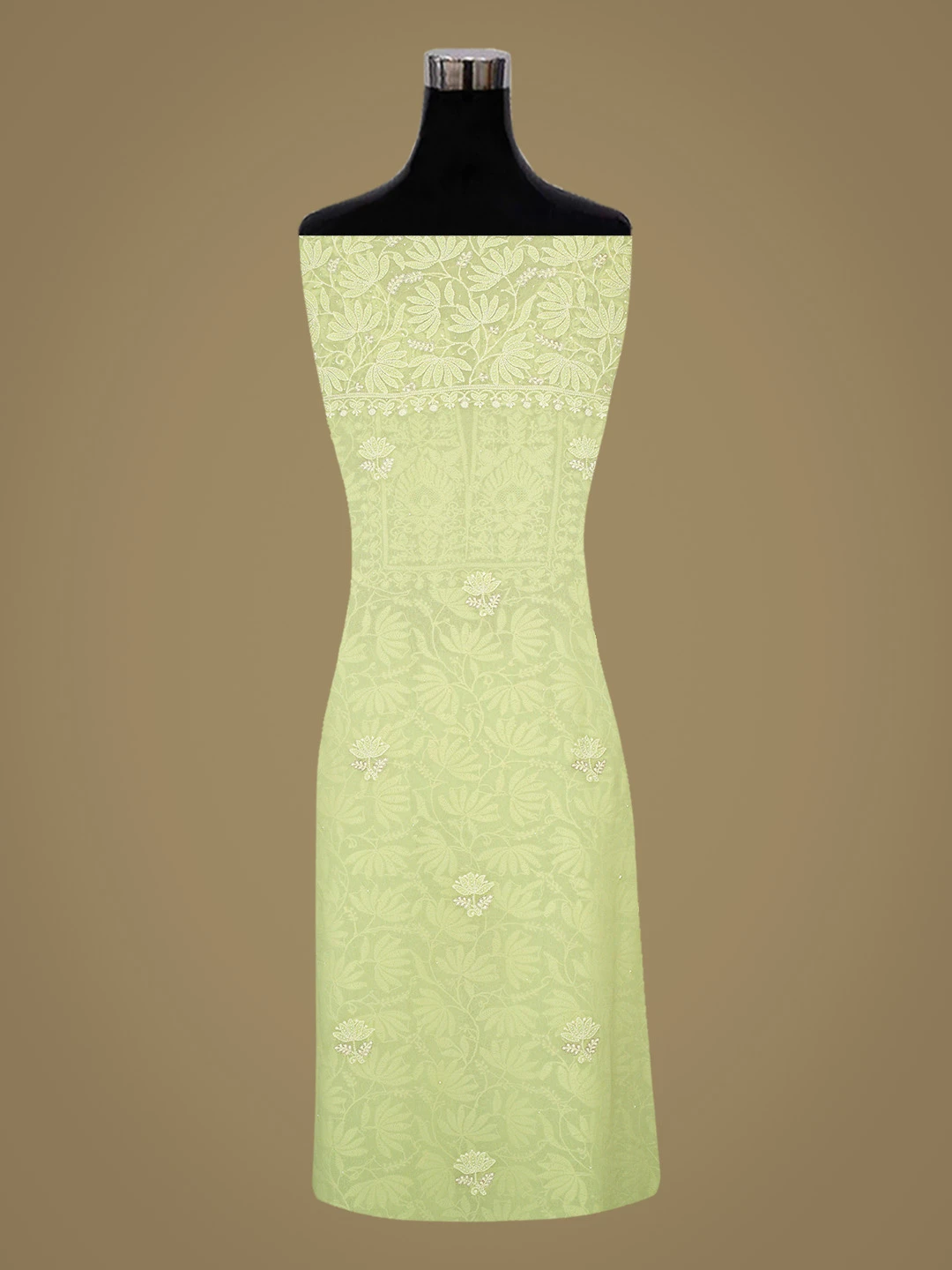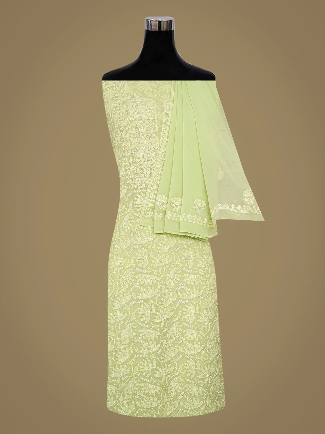 Ada Hand Embroidered Lime Green Pure Georgette Lucknowi Chikankari Unstitched Kurta Dupatta Set With Pearl Work 01A662218