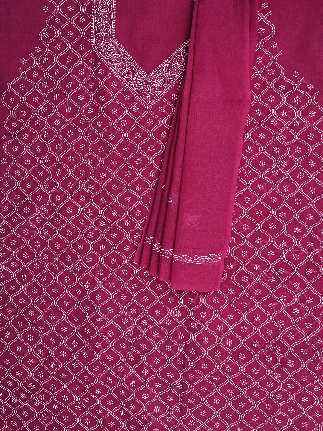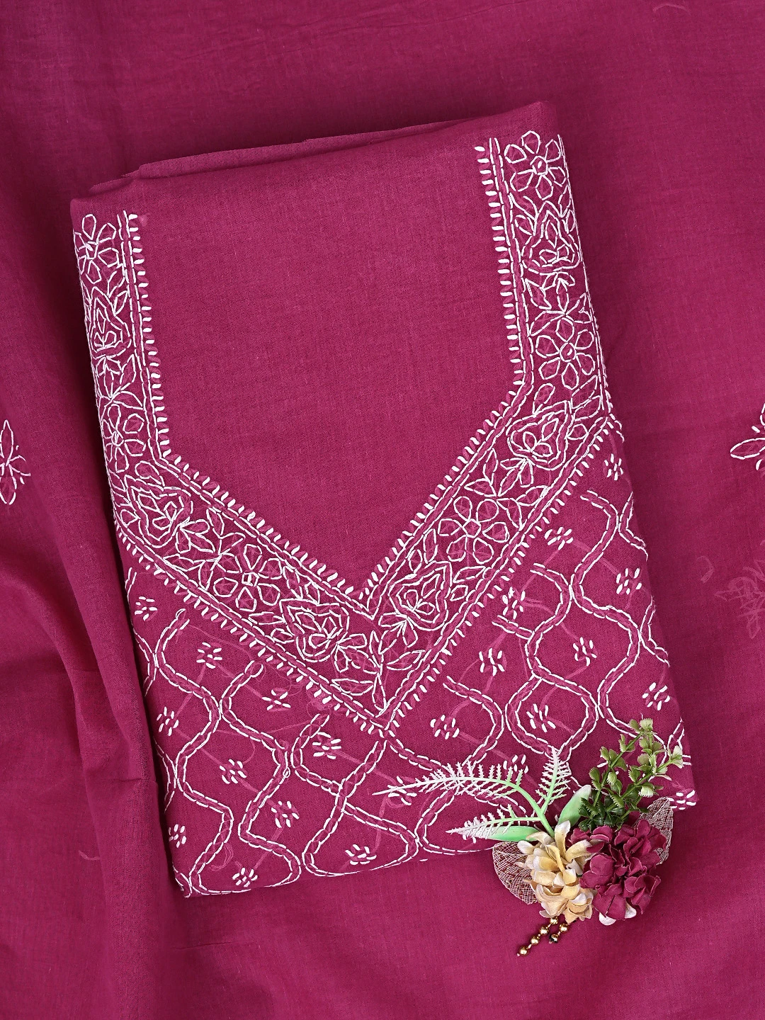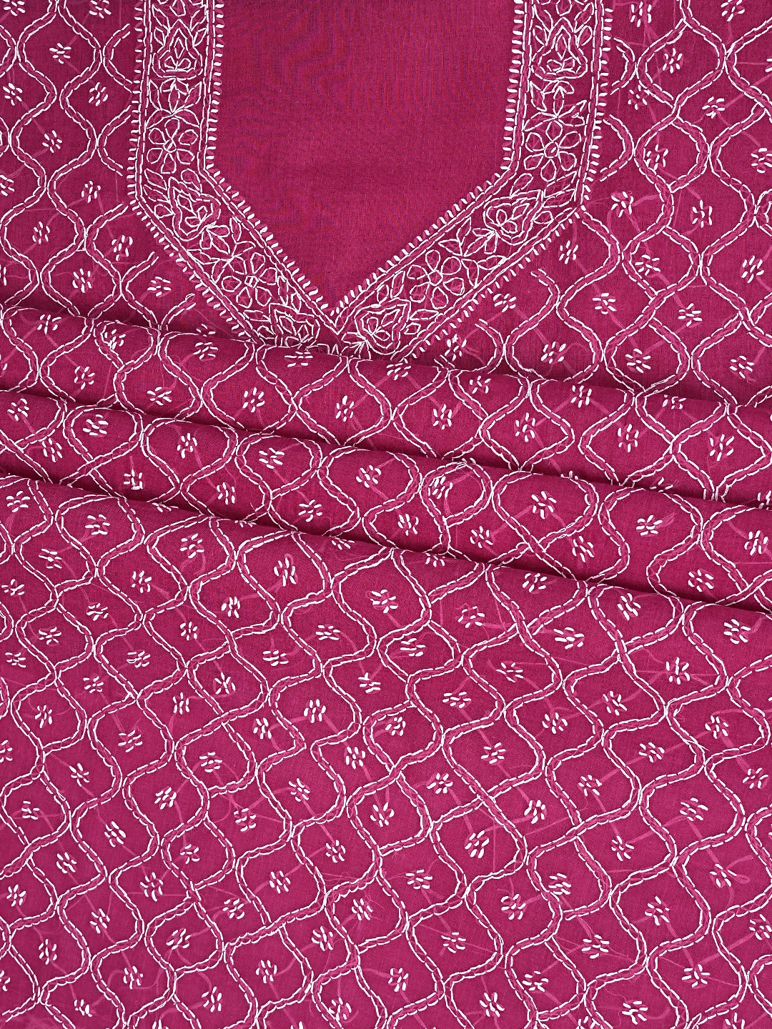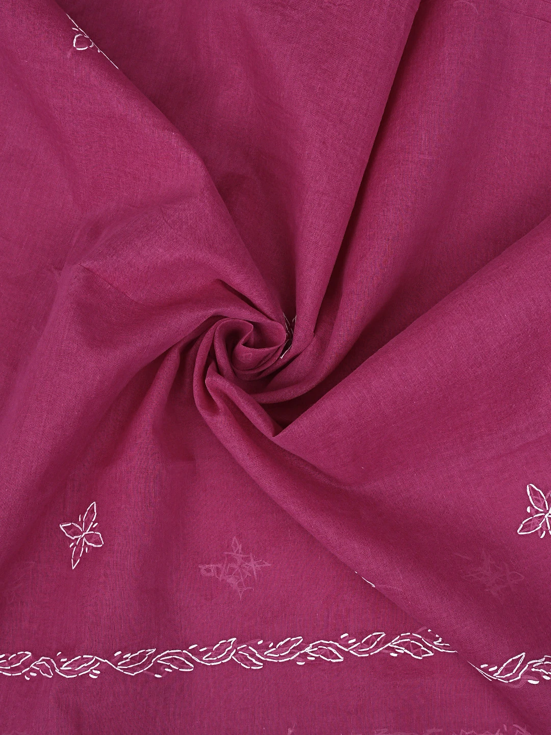 Ada Hand Embroidered Magenta Cotton Lucknowi Chikankari Unstitched Suit Piece 01A882341