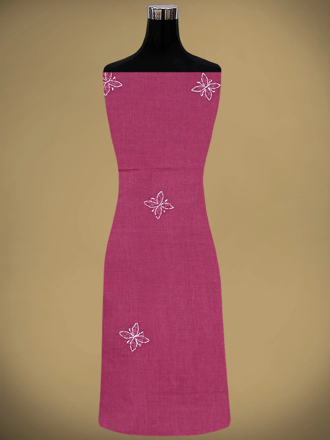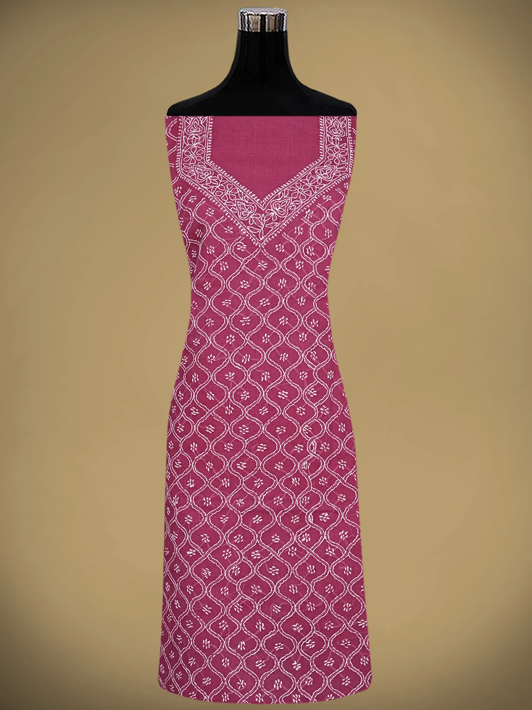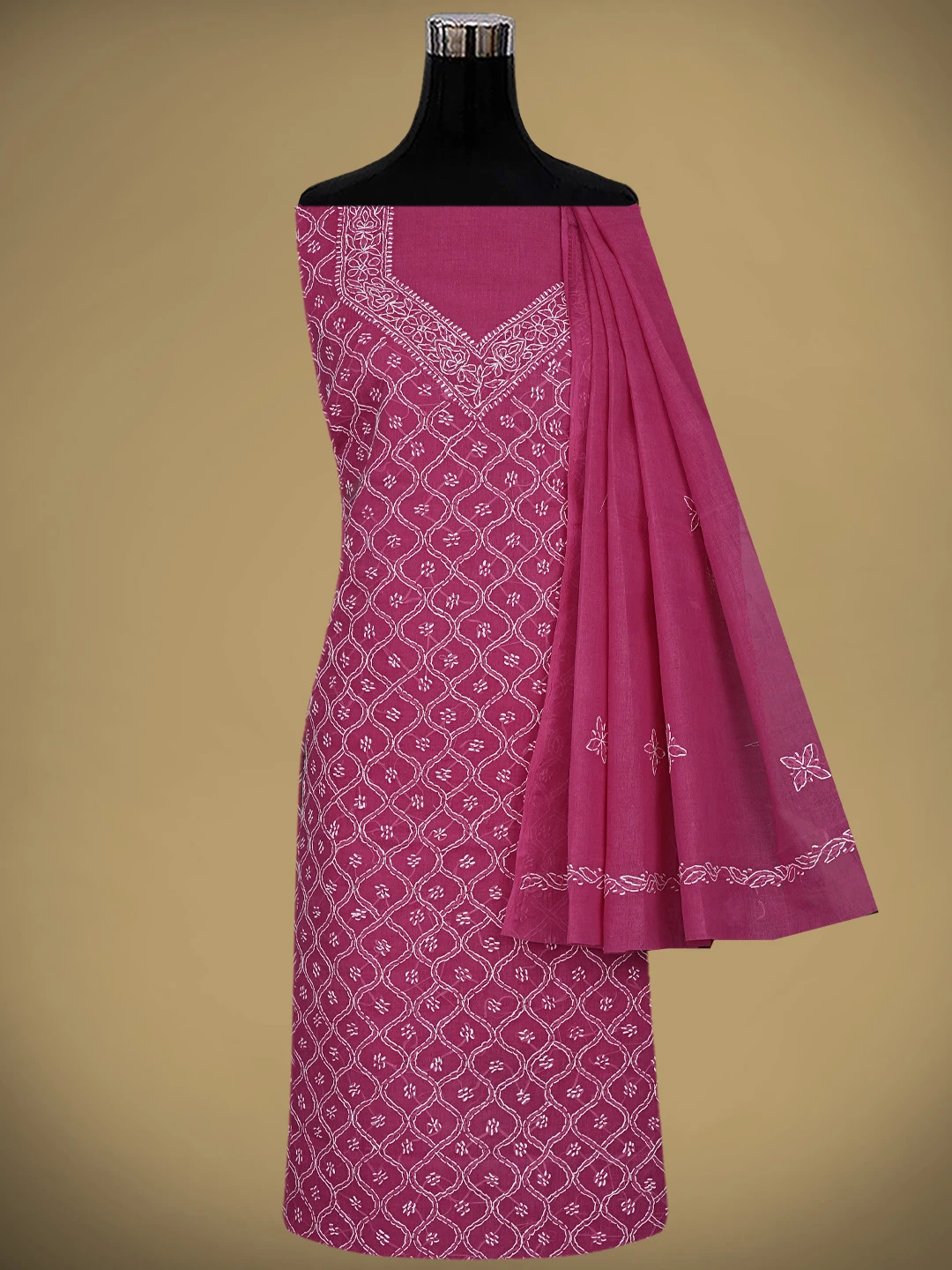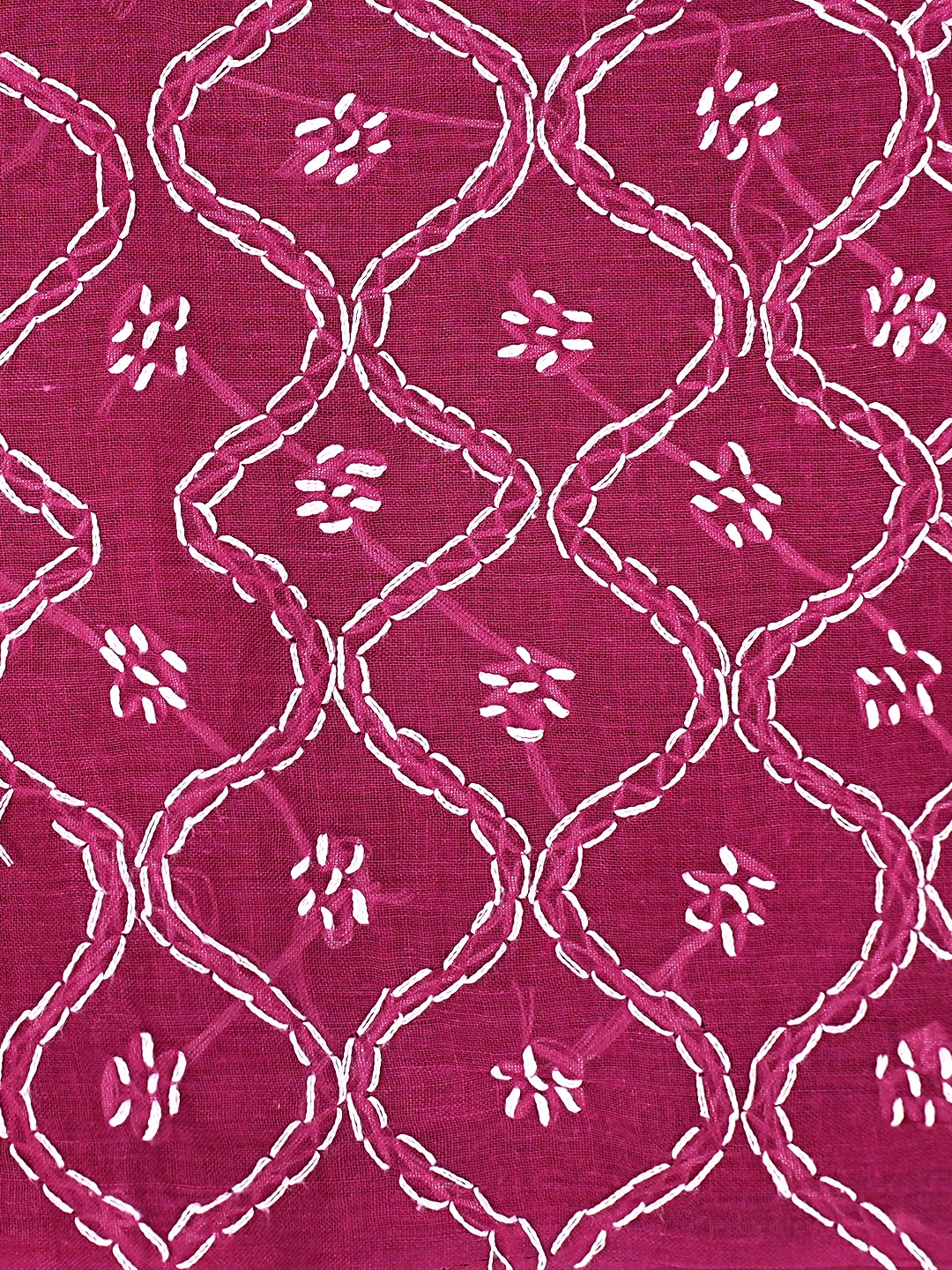 Ada Hand Embroidered Magenta Cotton Lucknowi Chikankari Unstitched Suit Piece 01A882341