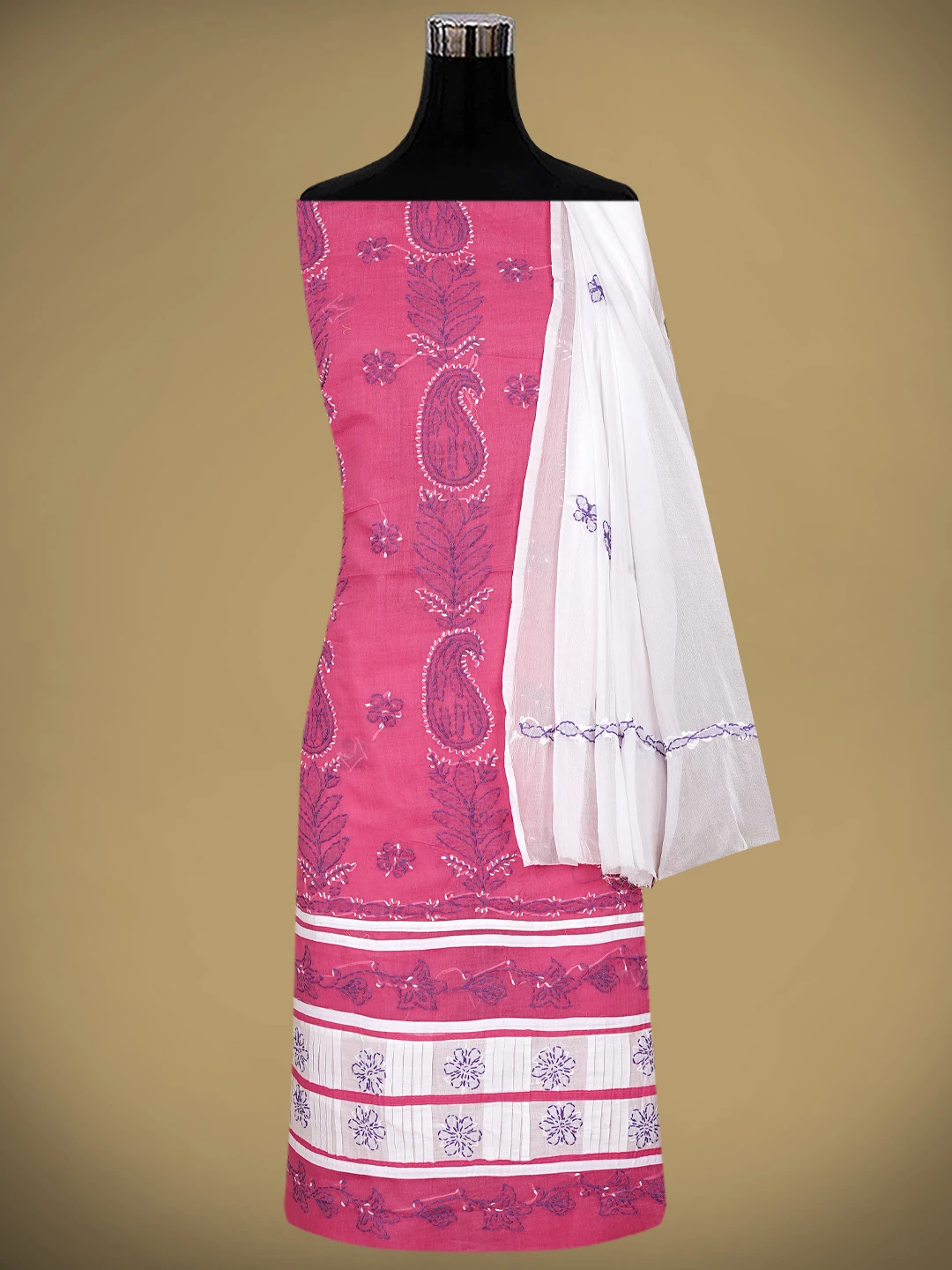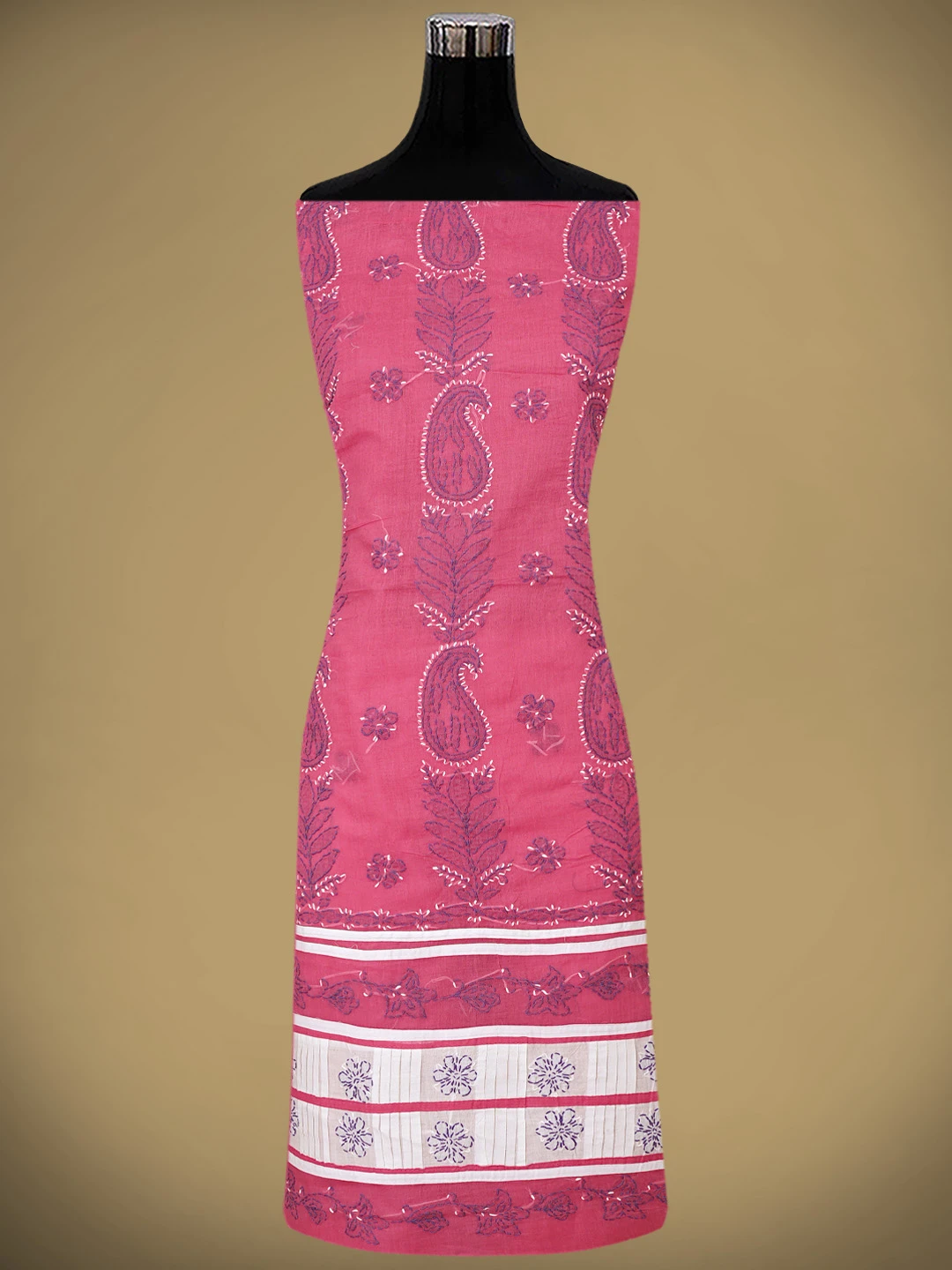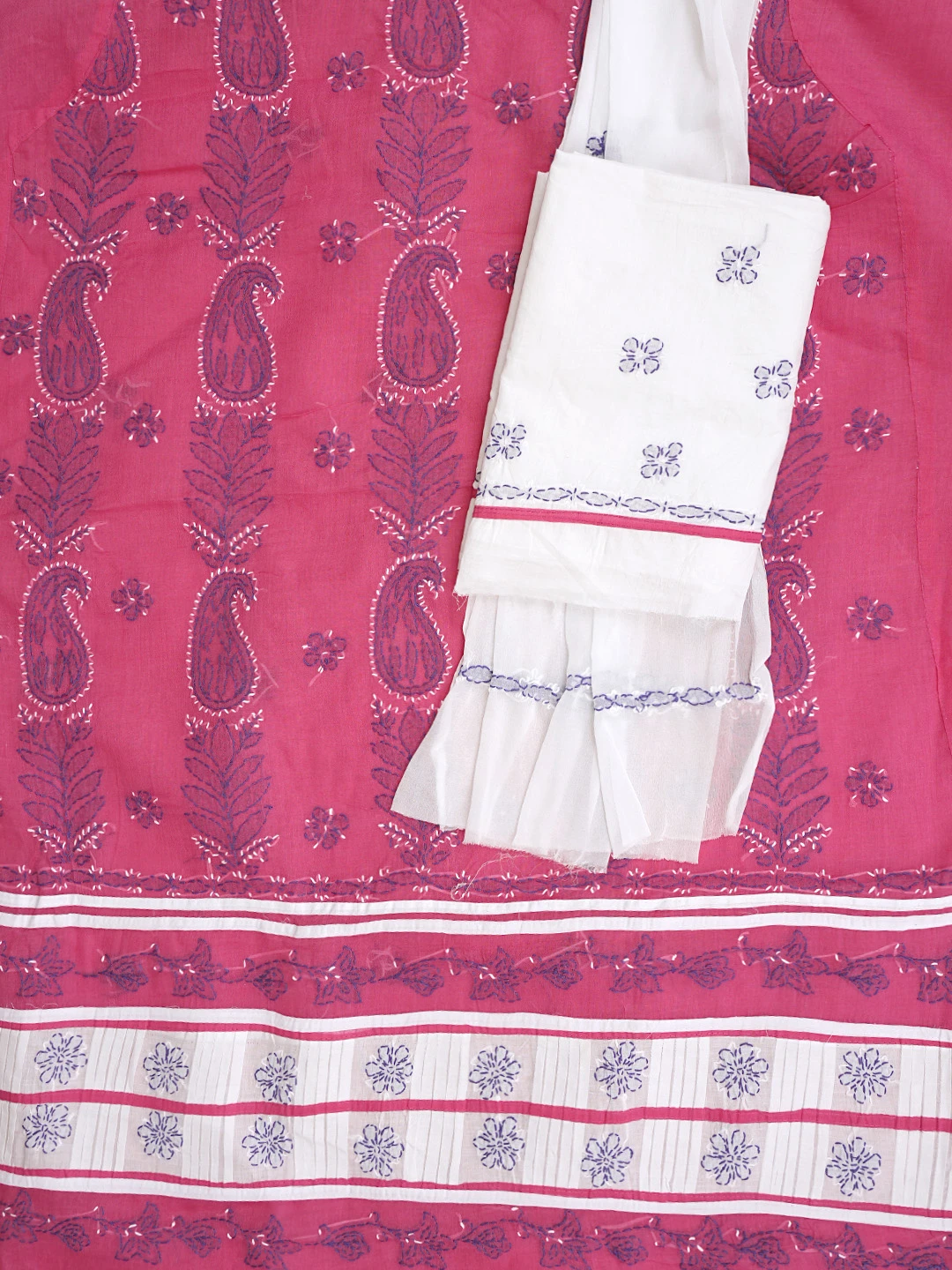 Ada Hand Embroidered Magenta Cotton Lucknowi Chikankari Unstitched Suit Piece 01A882742