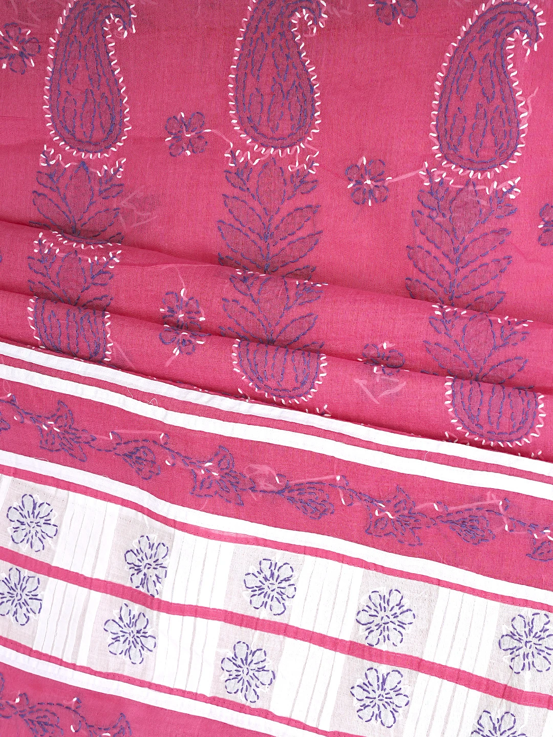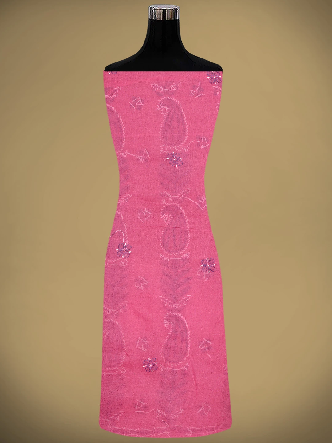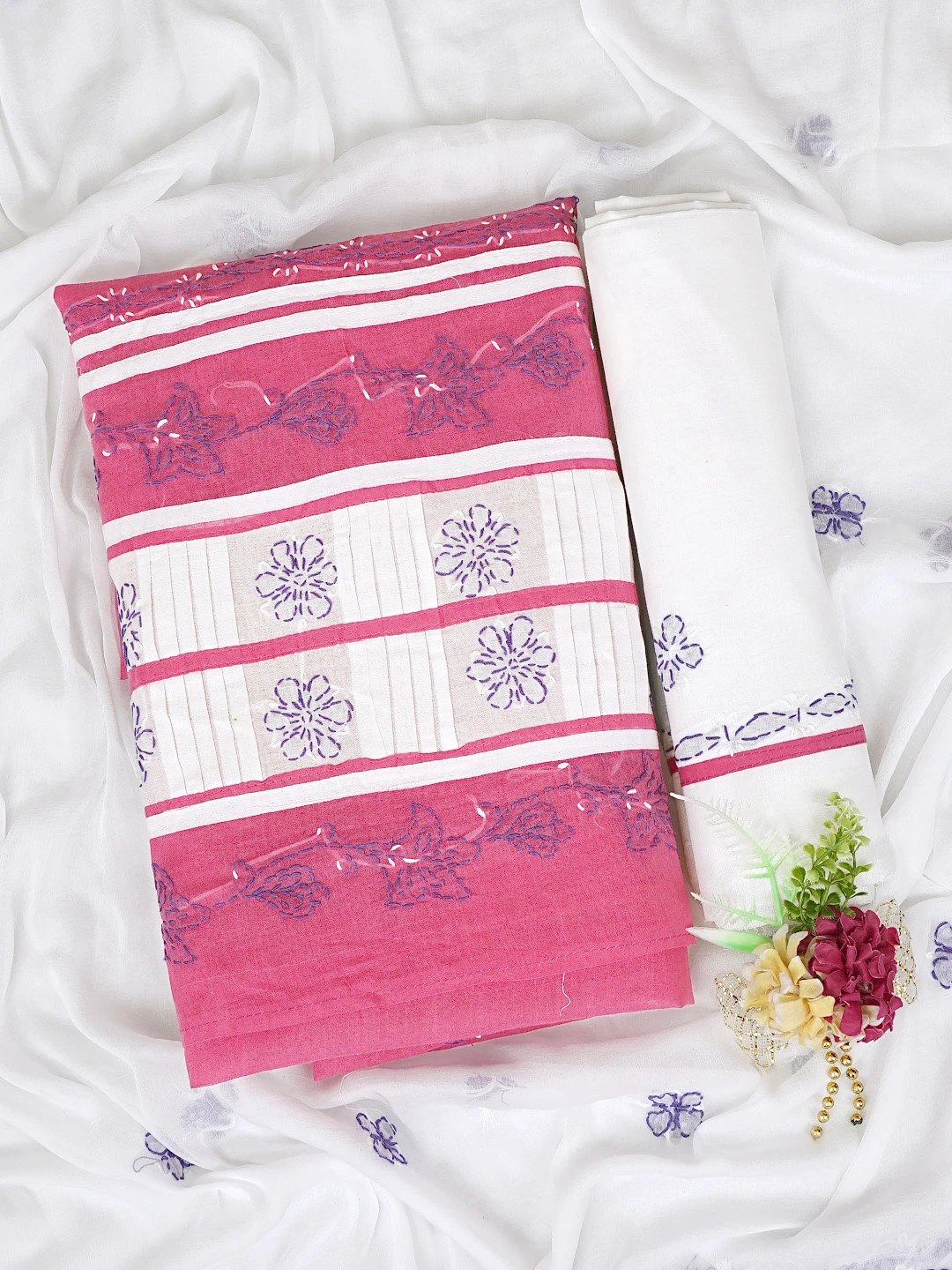 Ada Hand Embroidered Magenta Cotton Lucknowi Chikankari Unstitched Suit Piece 01A882742