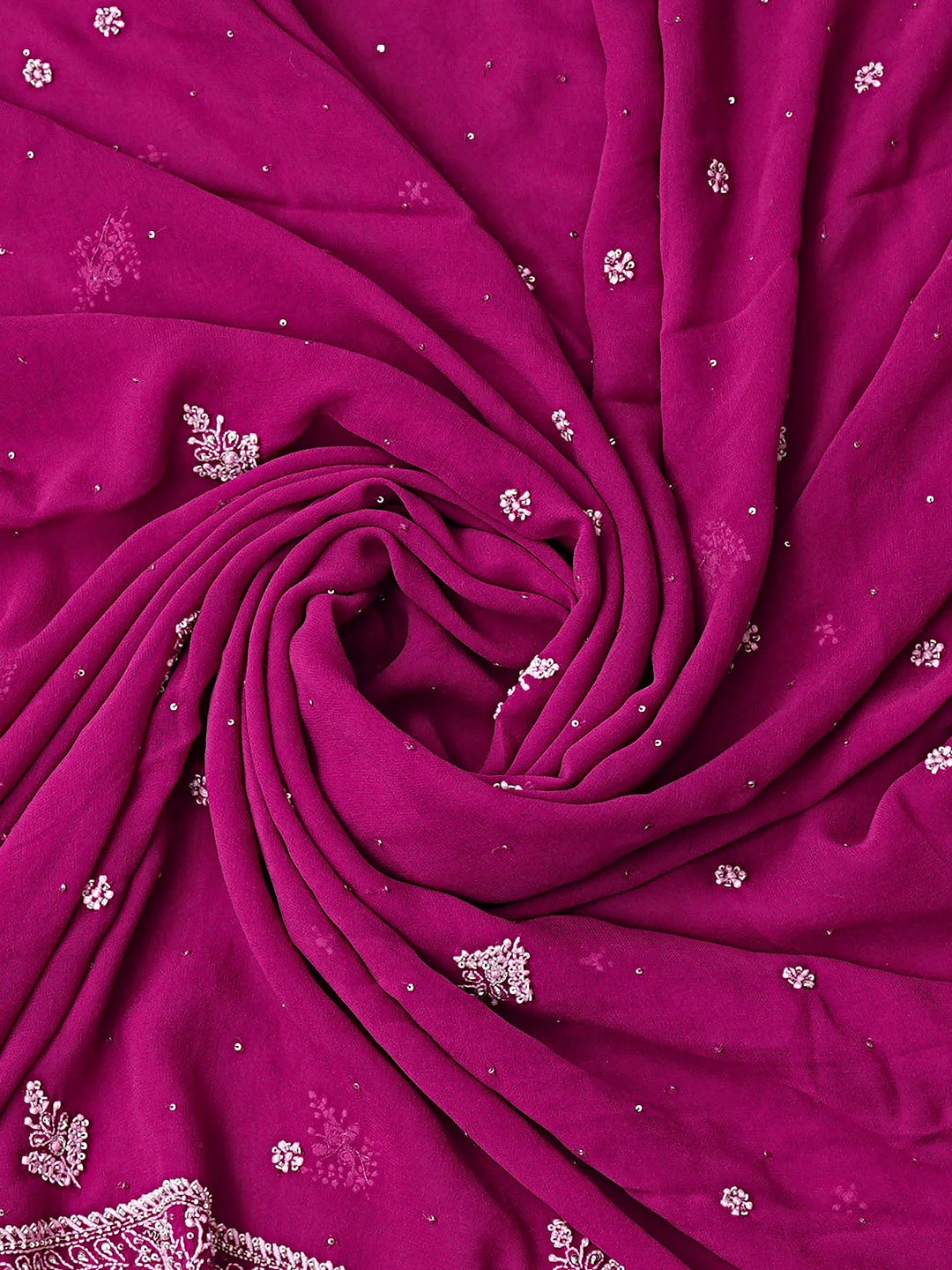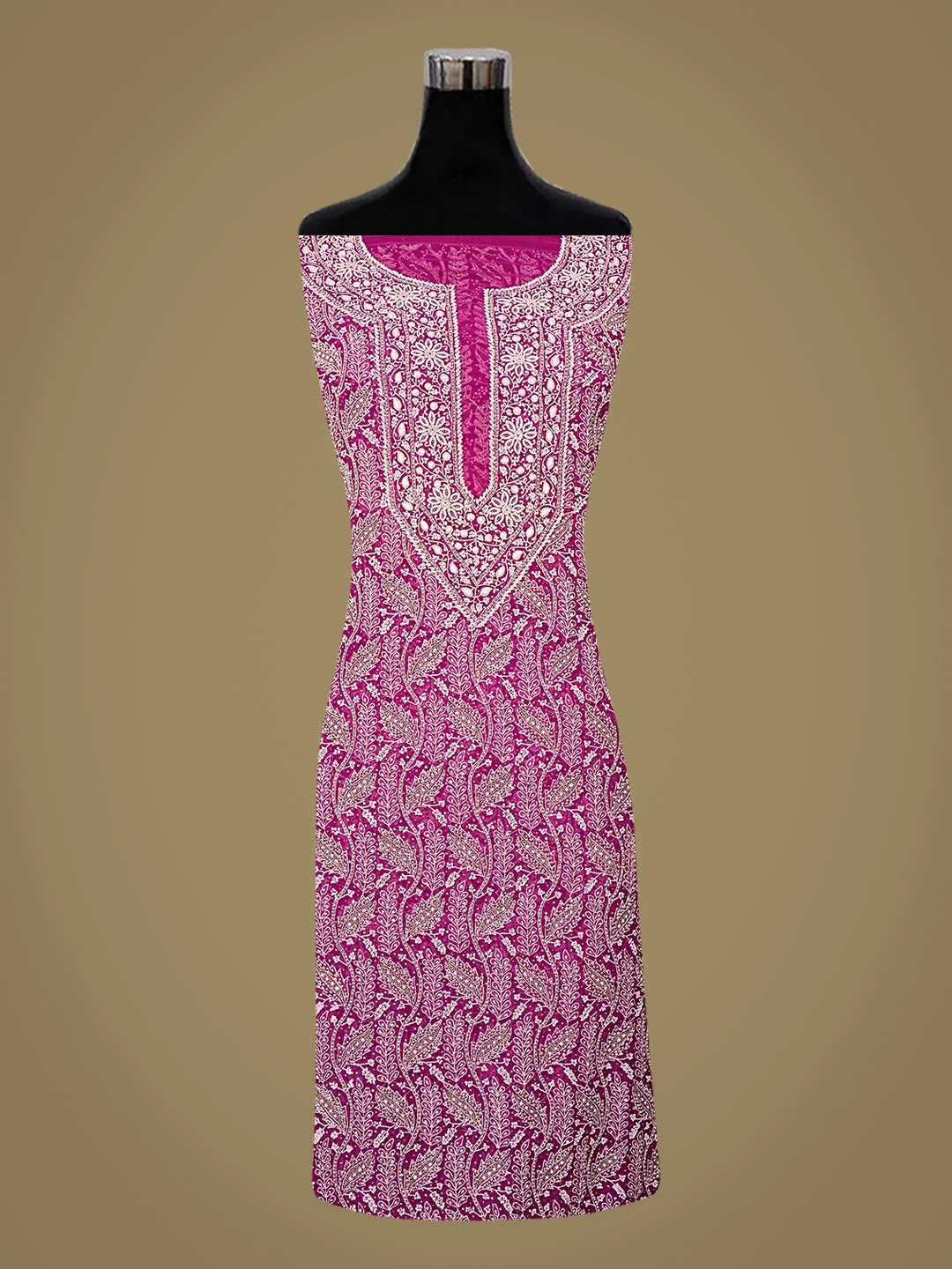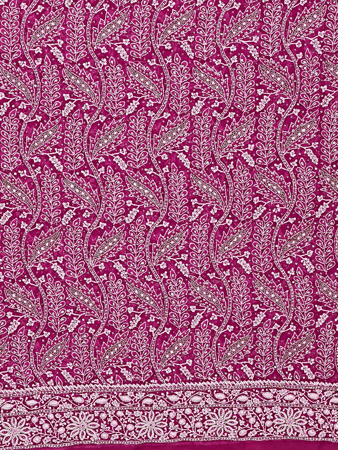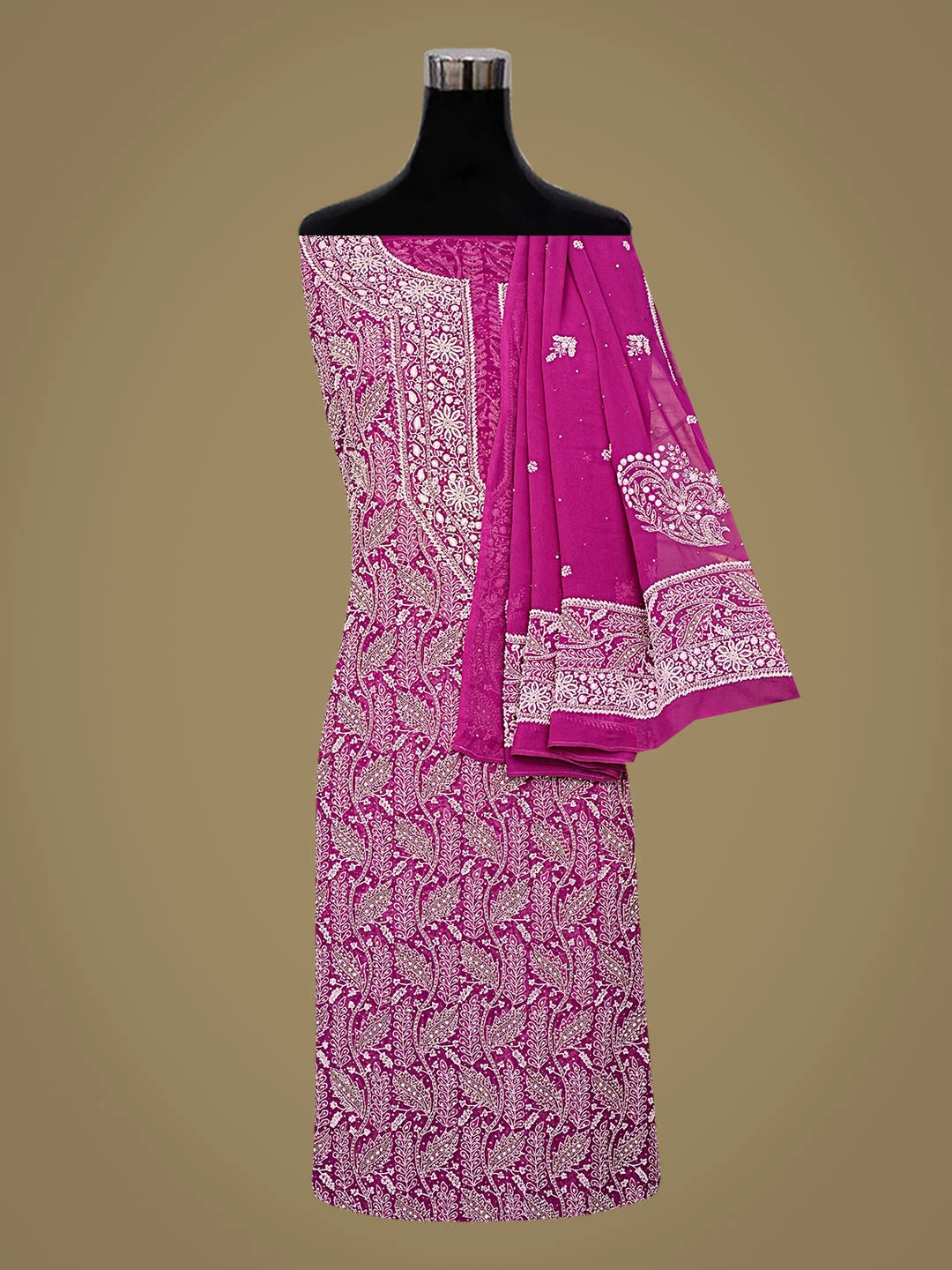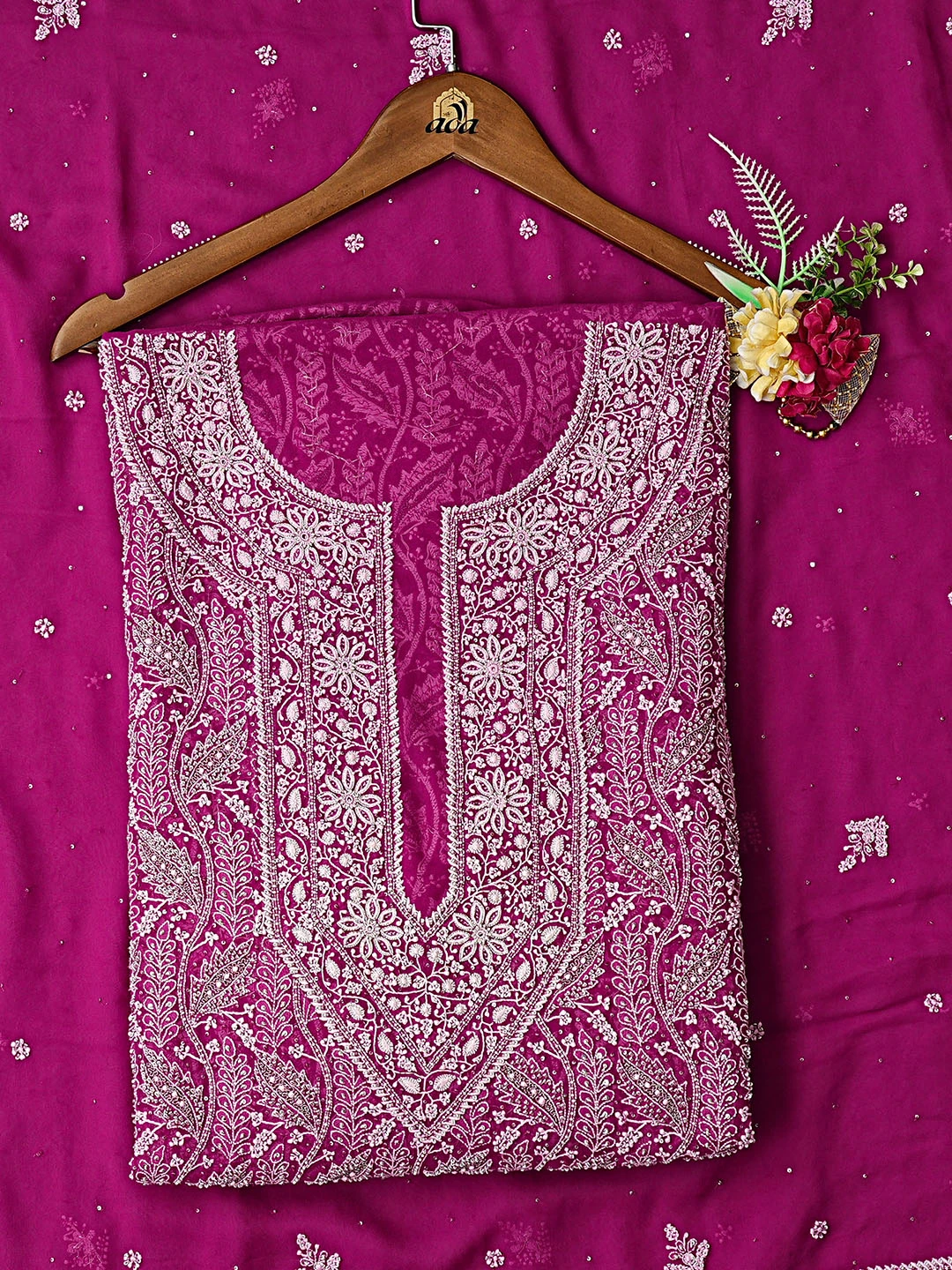 Ada Hand Embroidered Magenta Pure Georgette Lucknowi Chikankari Unstitched Kurta Dupatta Set With Pearl Work 01A361370