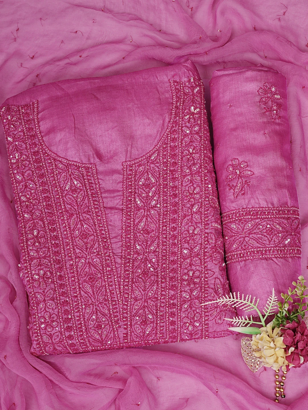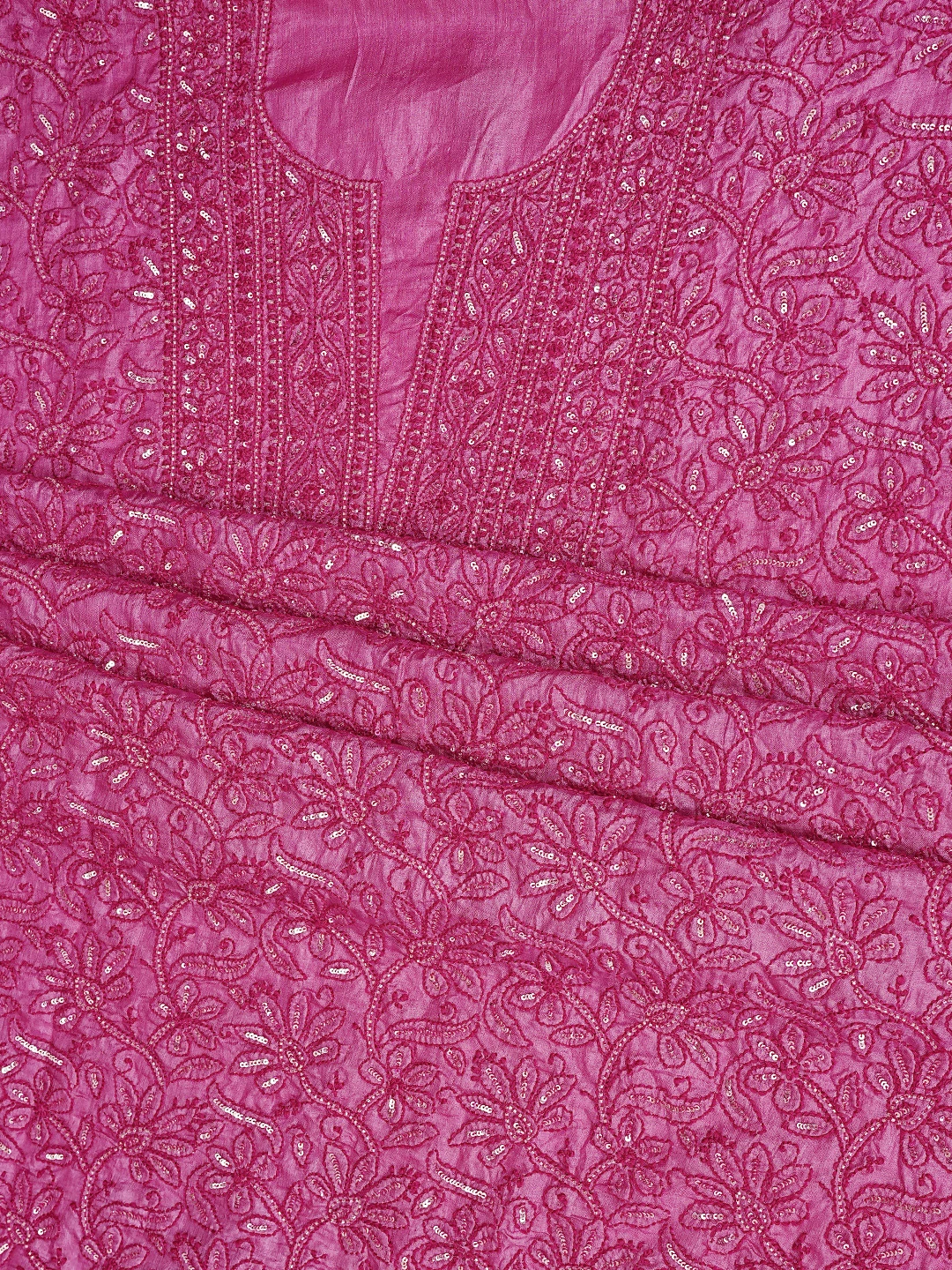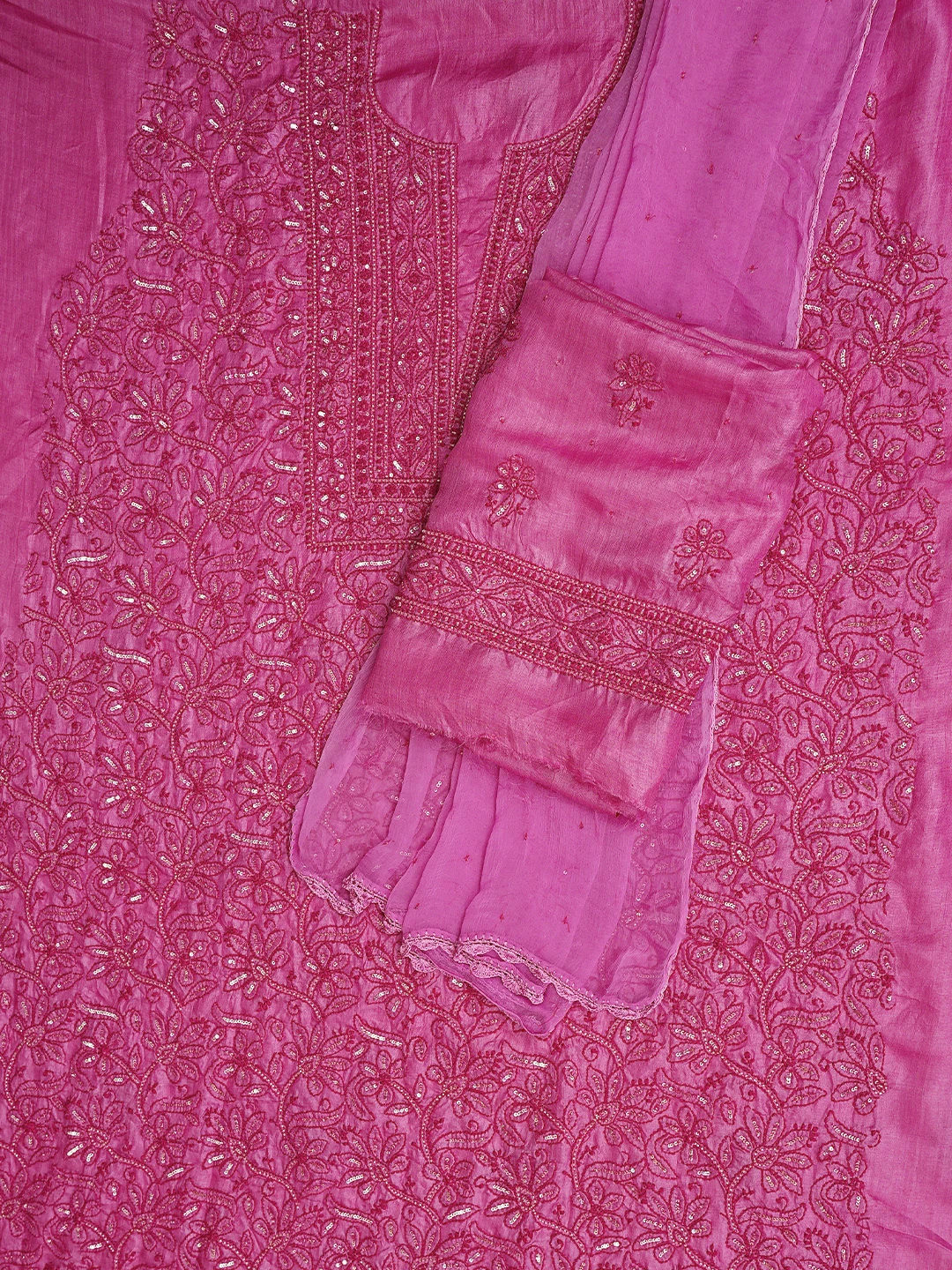 Ada Hand Embroidered Magenta Tussar Silk Lucknowi Chikankari Unstitched Suit Piece With Cutdana Work 01A798666