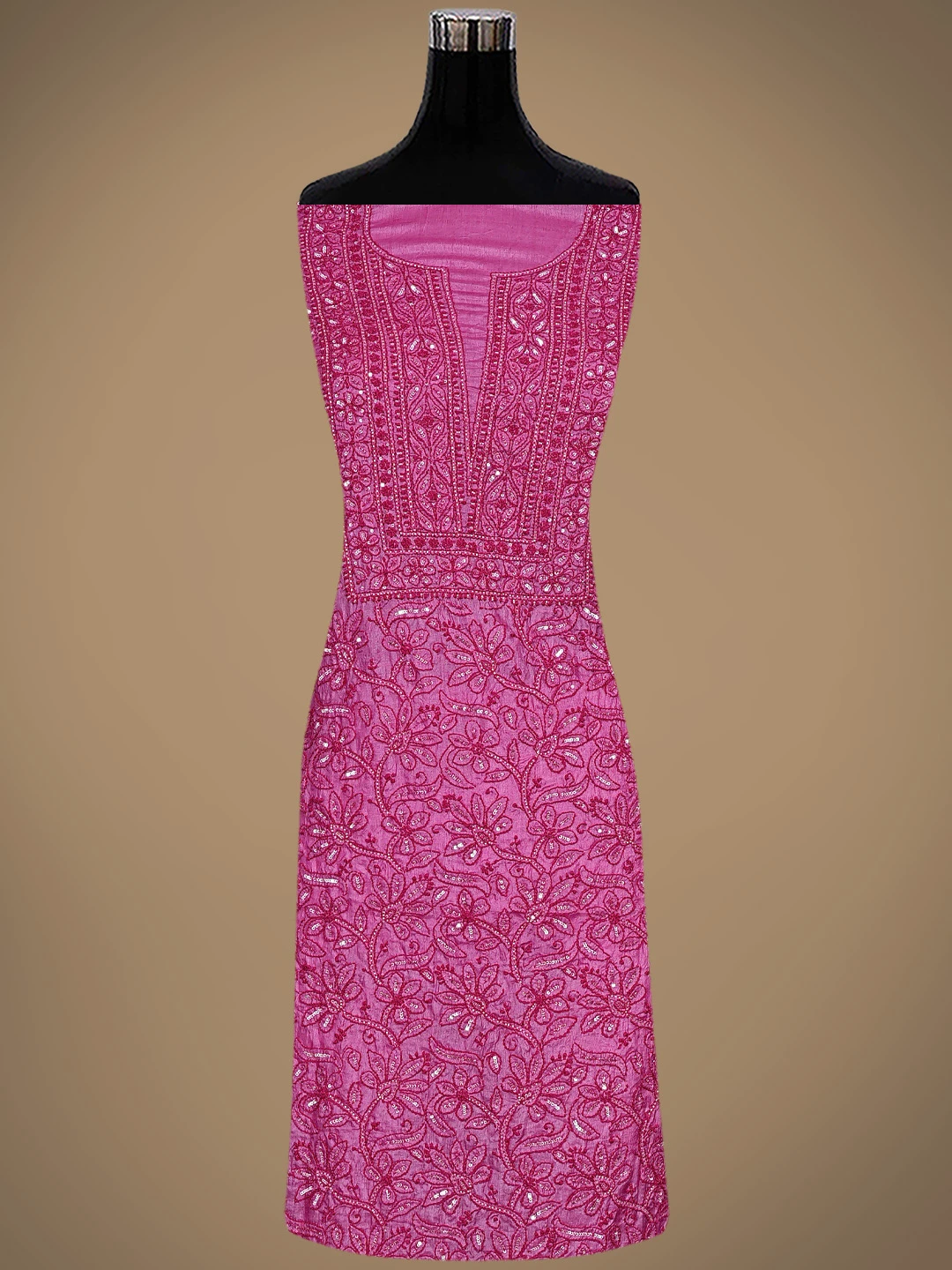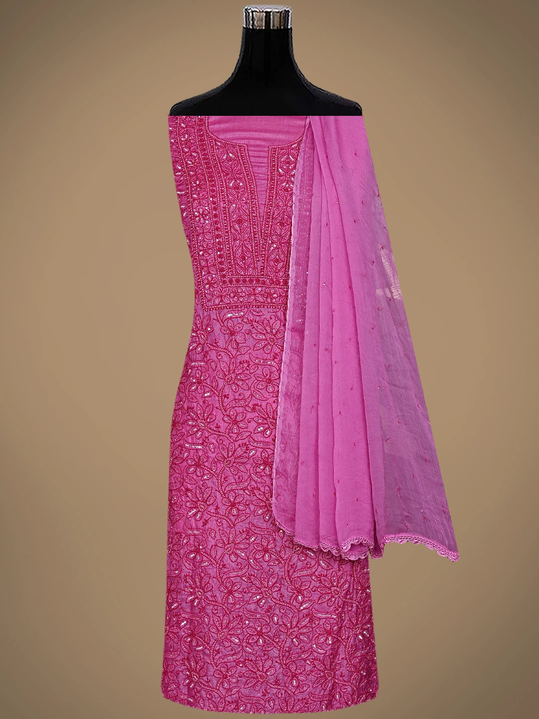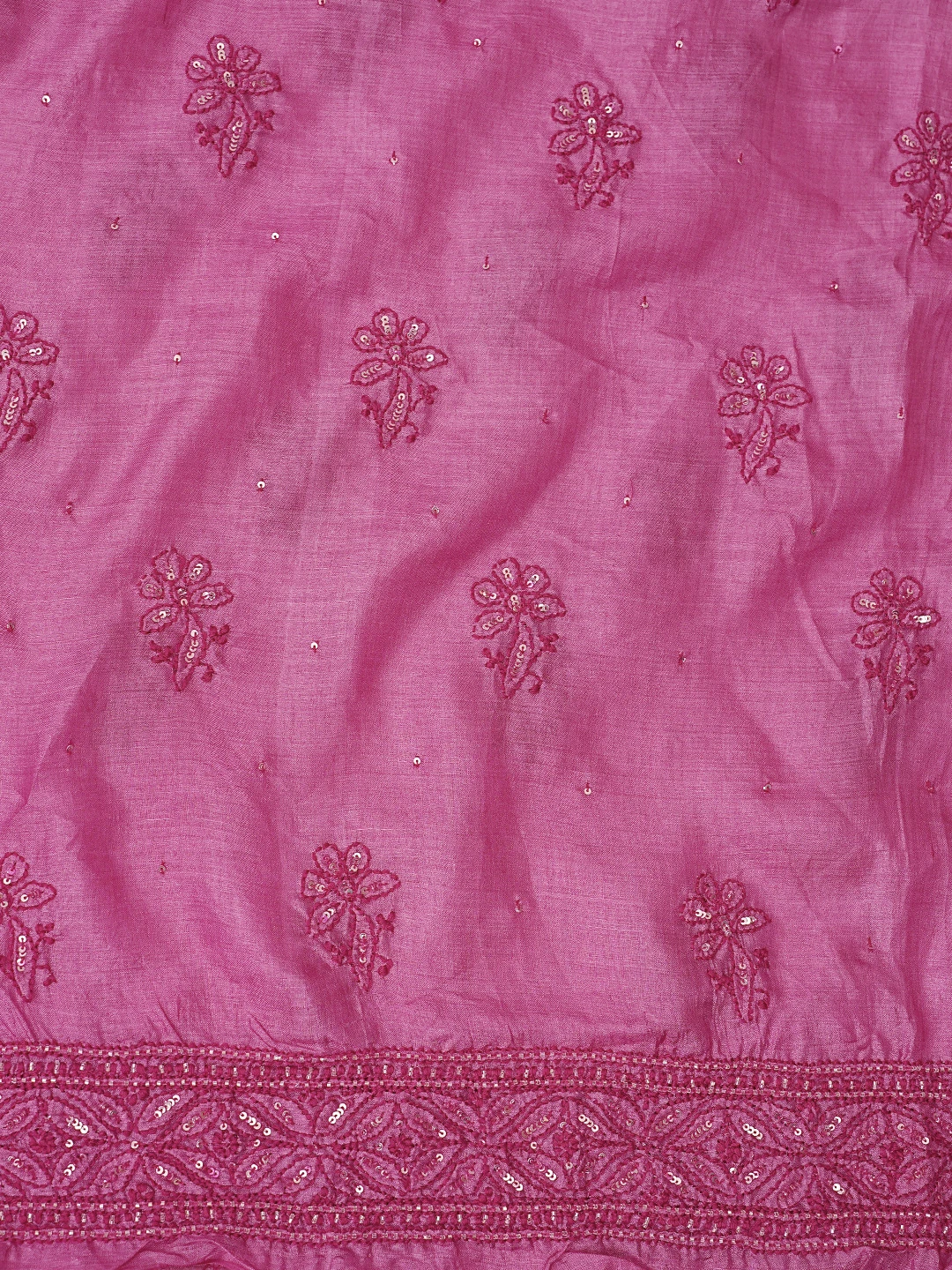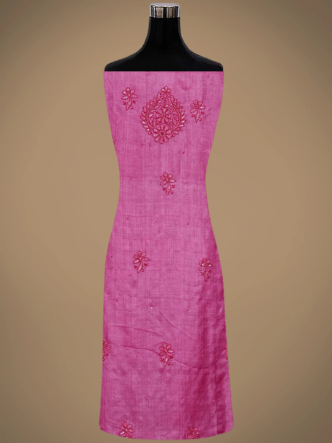 Ada Hand Embroidered Magenta Tussar Silk Lucknowi Chikankari Unstitched Suit Piece With Cutdana Work 01A798666