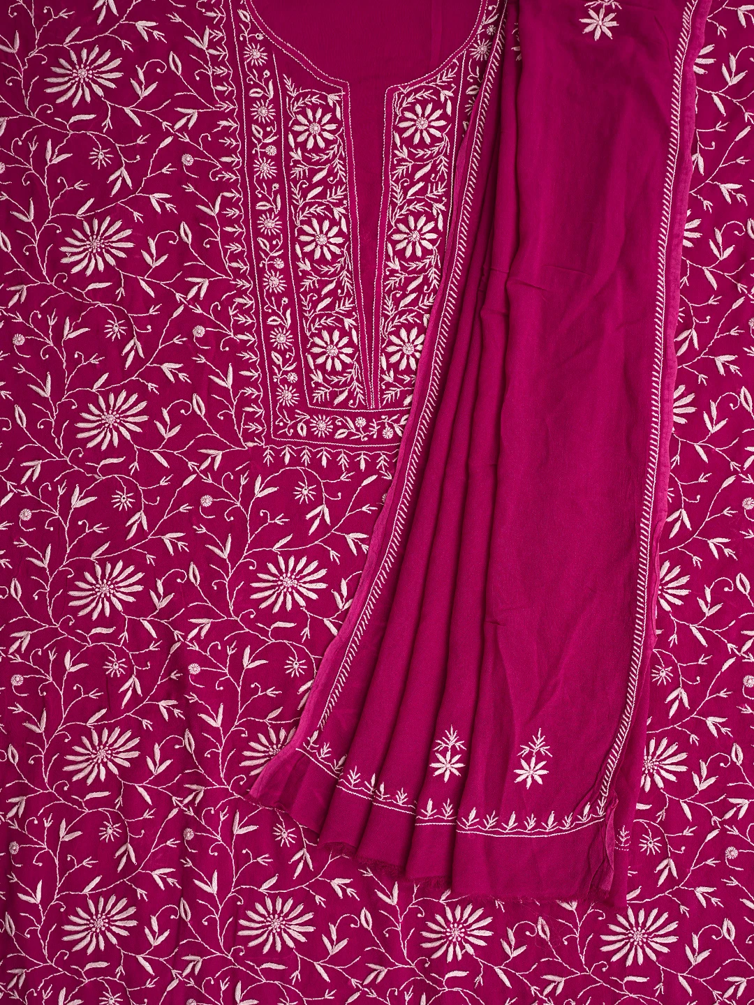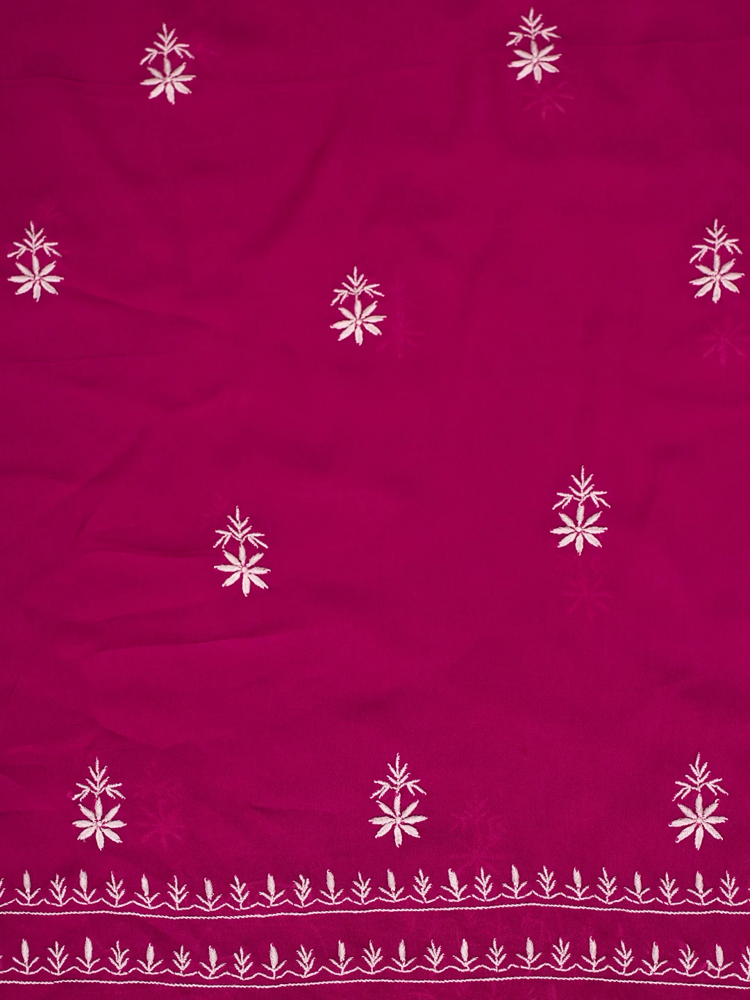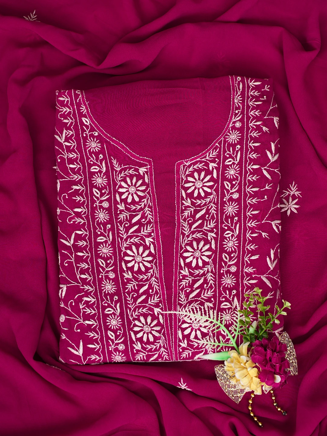 Ada Hand Embroidered Magenta Viscose Georgette Lucknowi Chikankari Unstitched Kurta Dupatta Set 01A856661