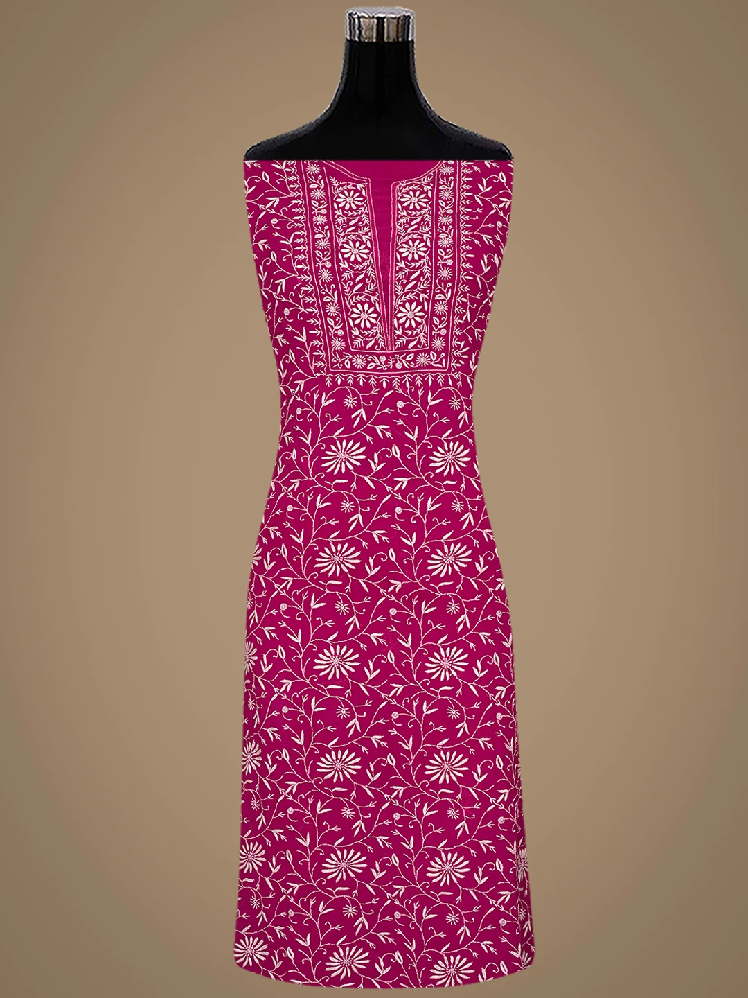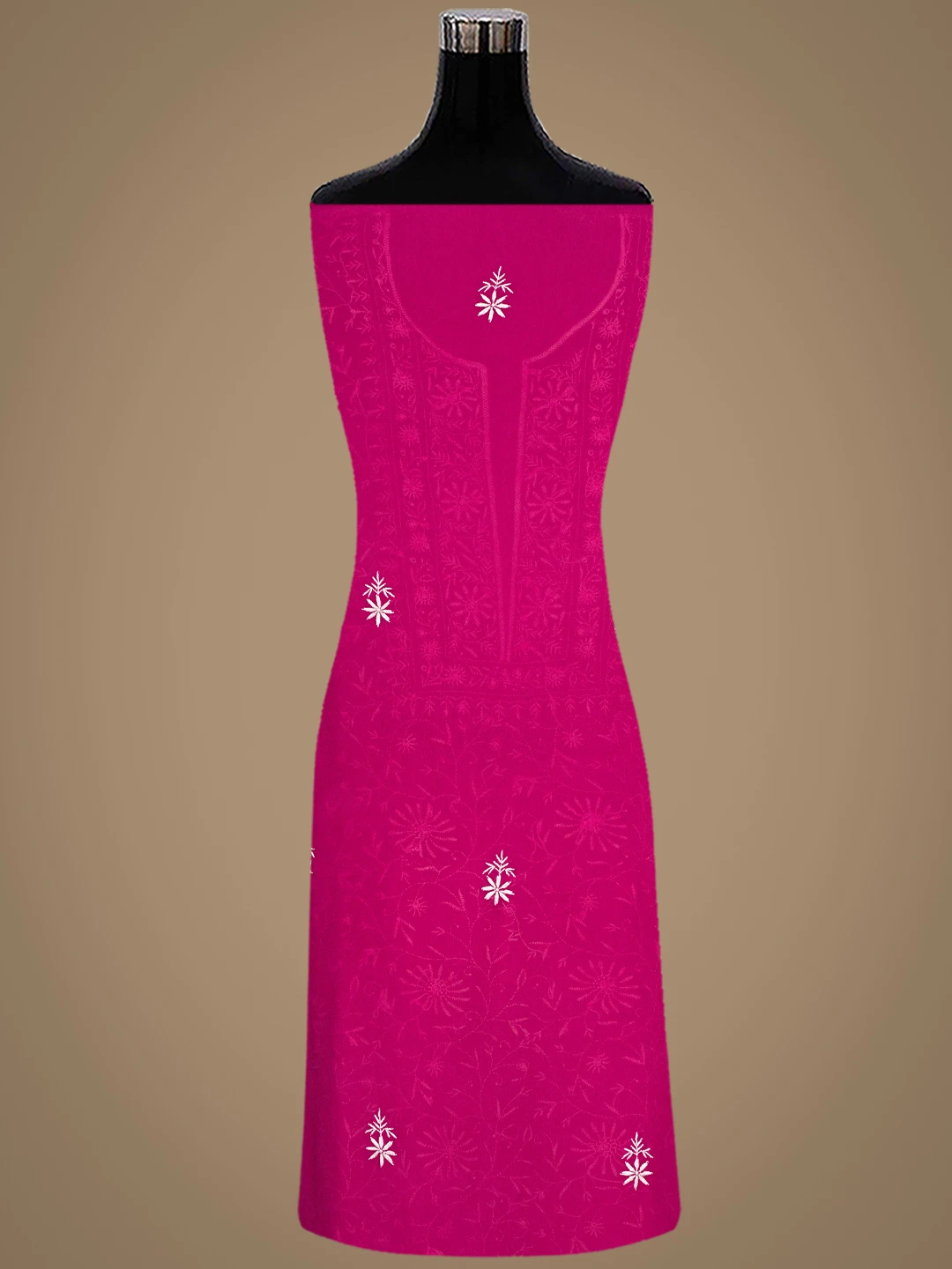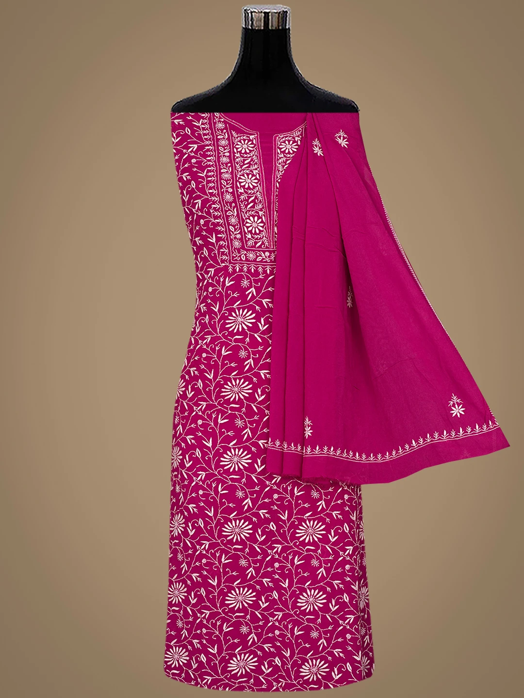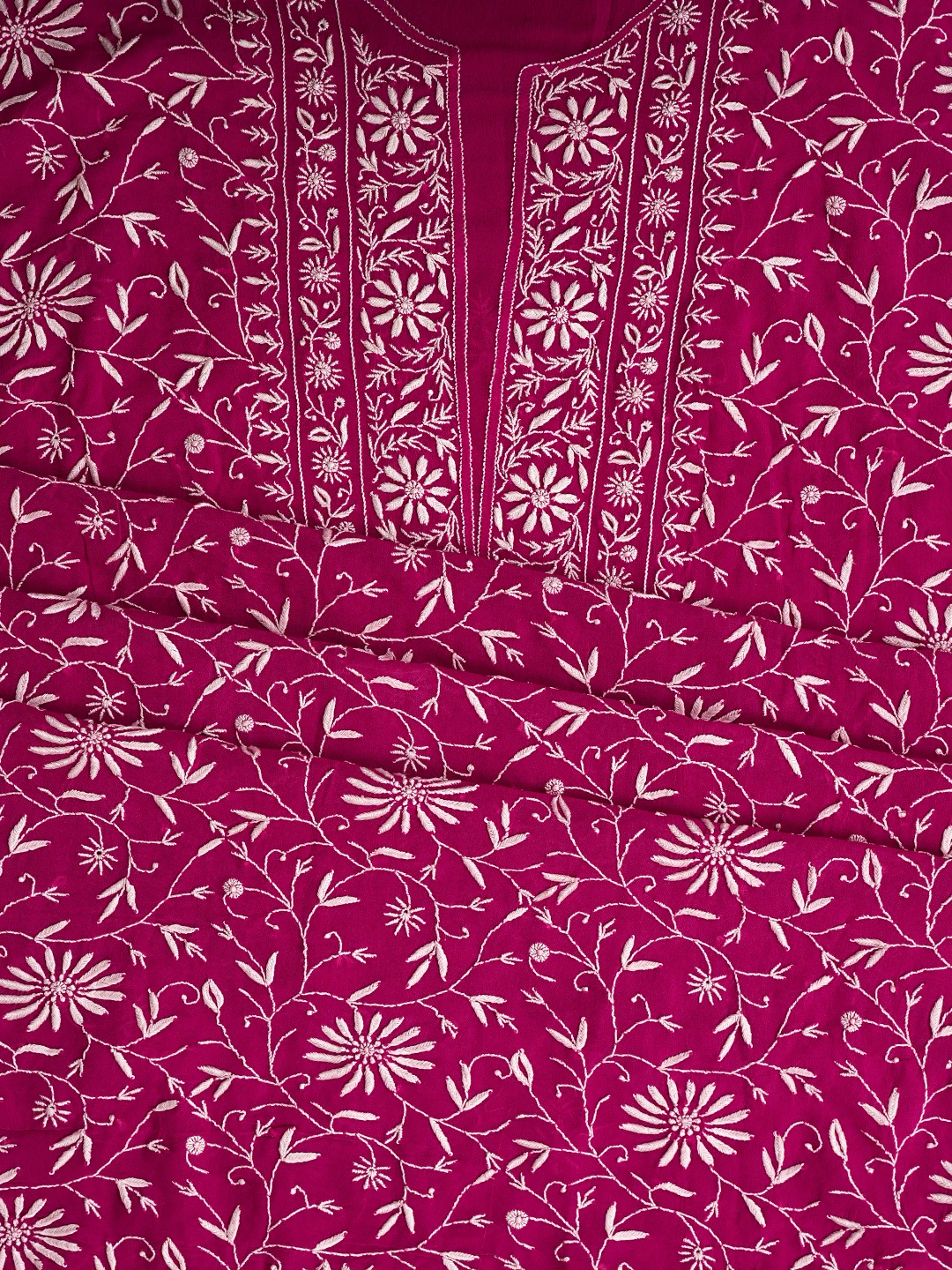 Ada Hand Embroidered Magenta Viscose Georgette Lucknowi Chikankari Unstitched Kurta Dupatta Set 01A856661