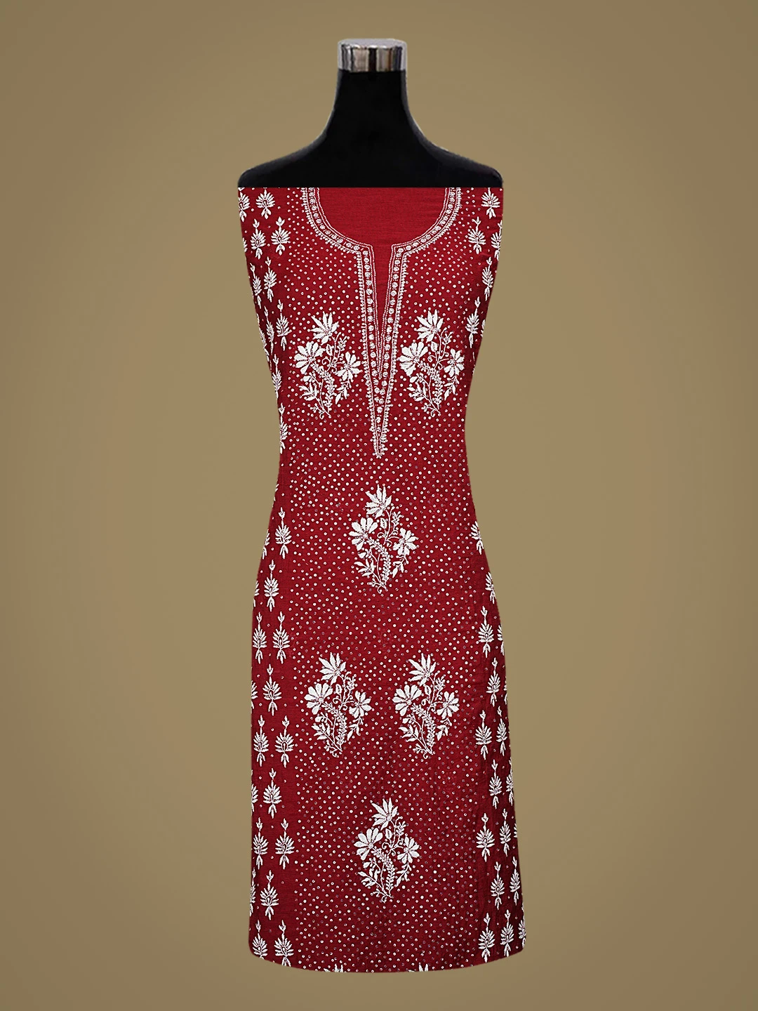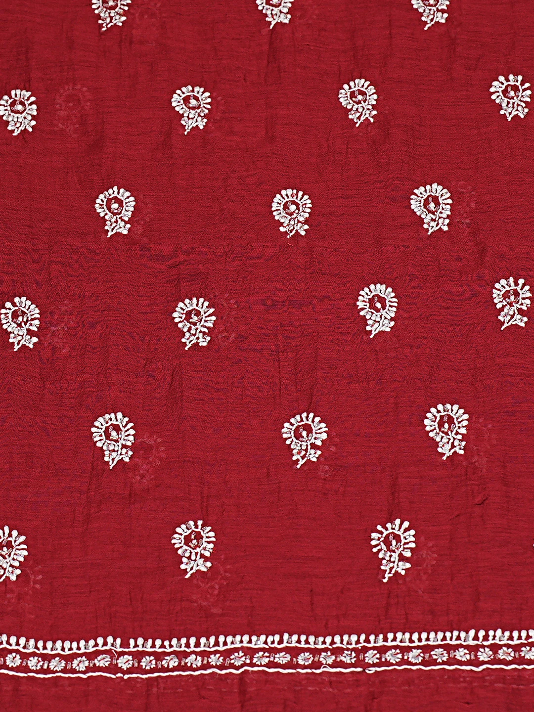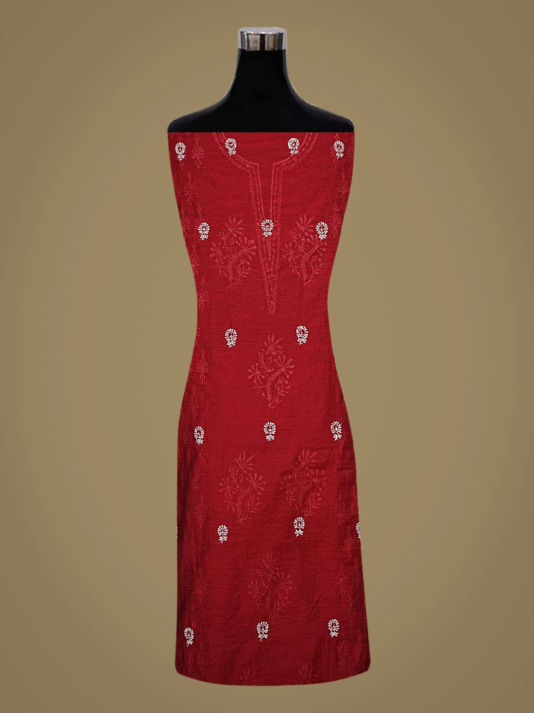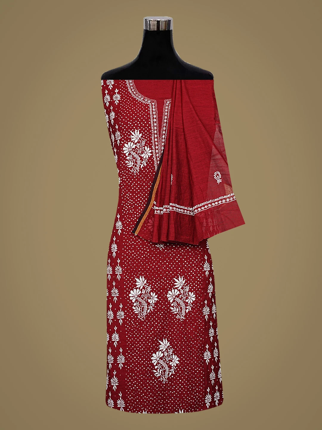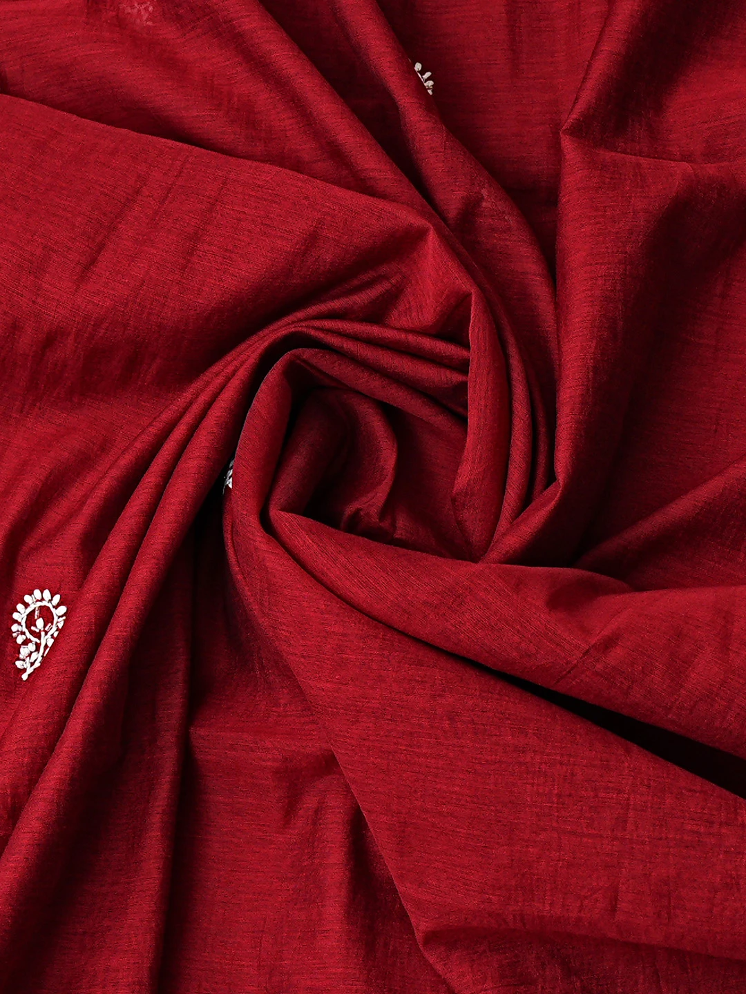 Ada Hand Embroidered Maroon Chanderi Lucknowi Chikankari Unstitched Kurta Dupatta Set With Cutdana Work 01A800821
