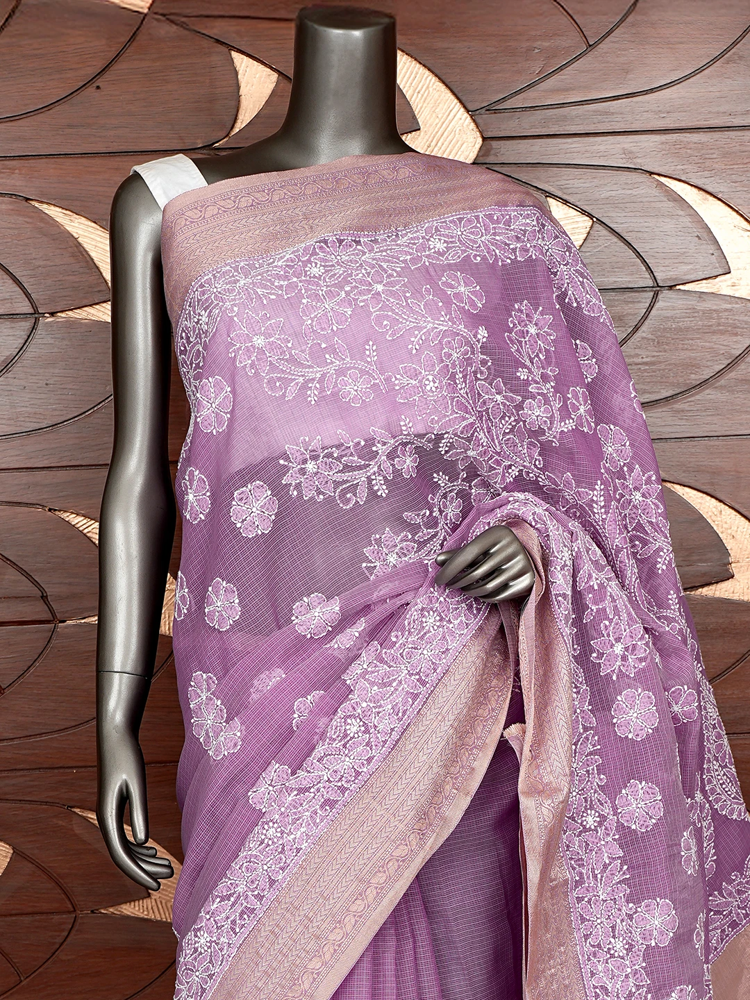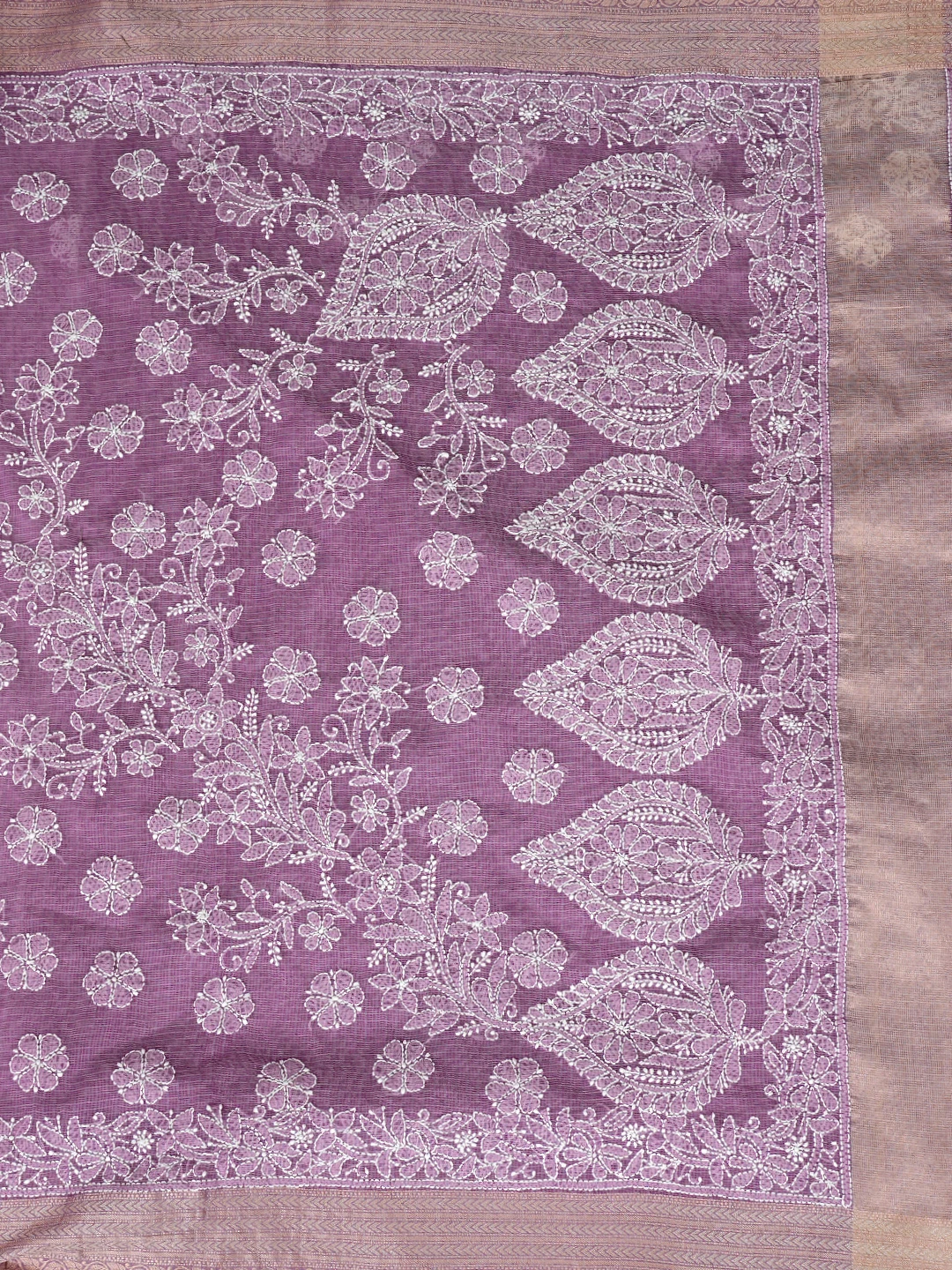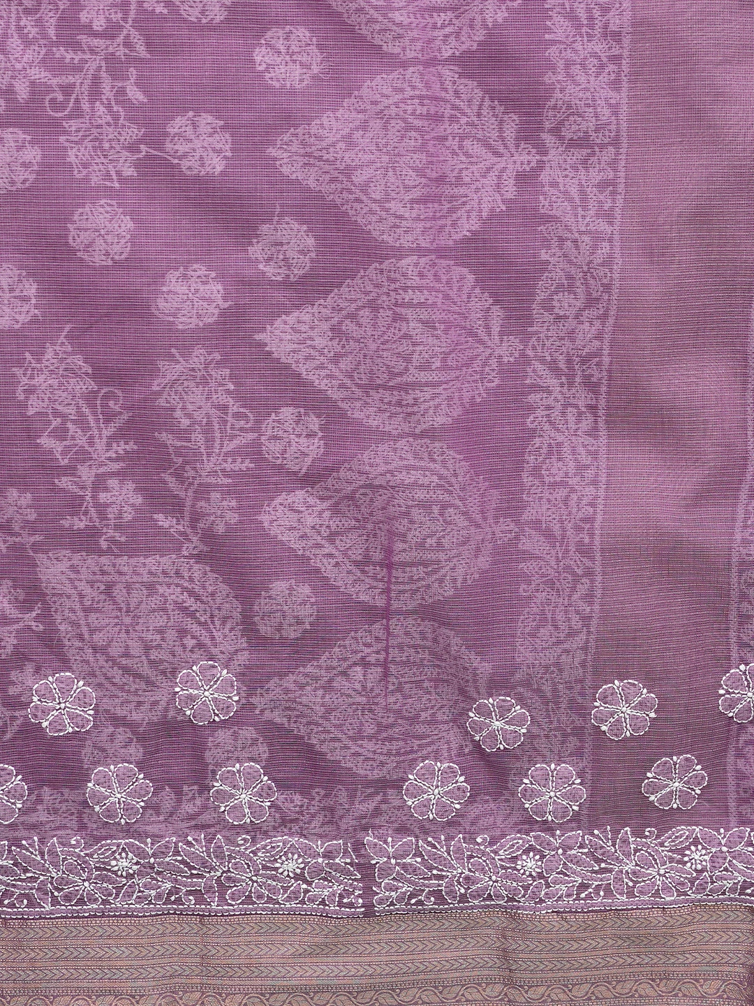 Ada Hand Embroidered Mauve Chanderi Lucknowi Chikankari Saree With Blouse 01A863328