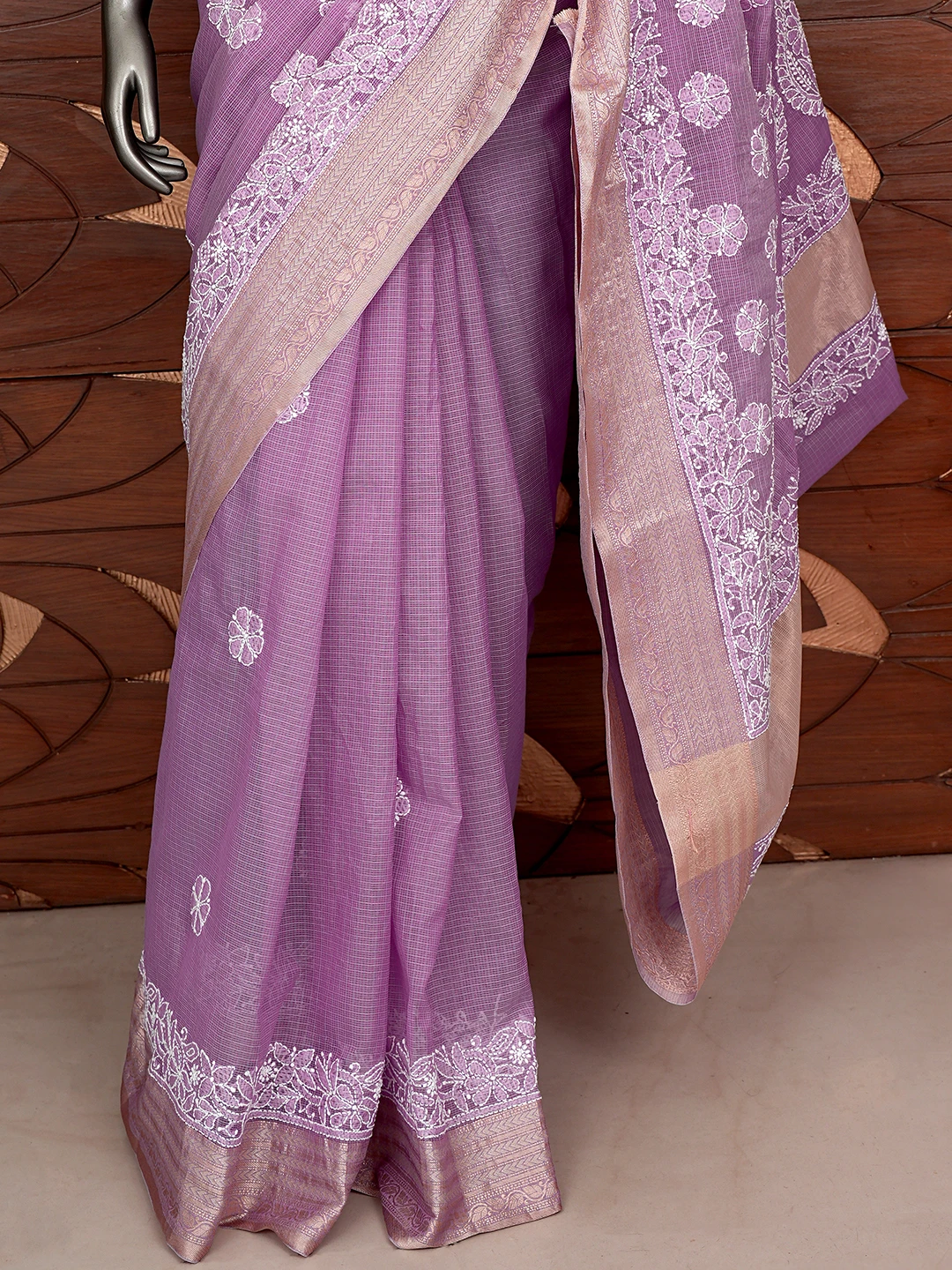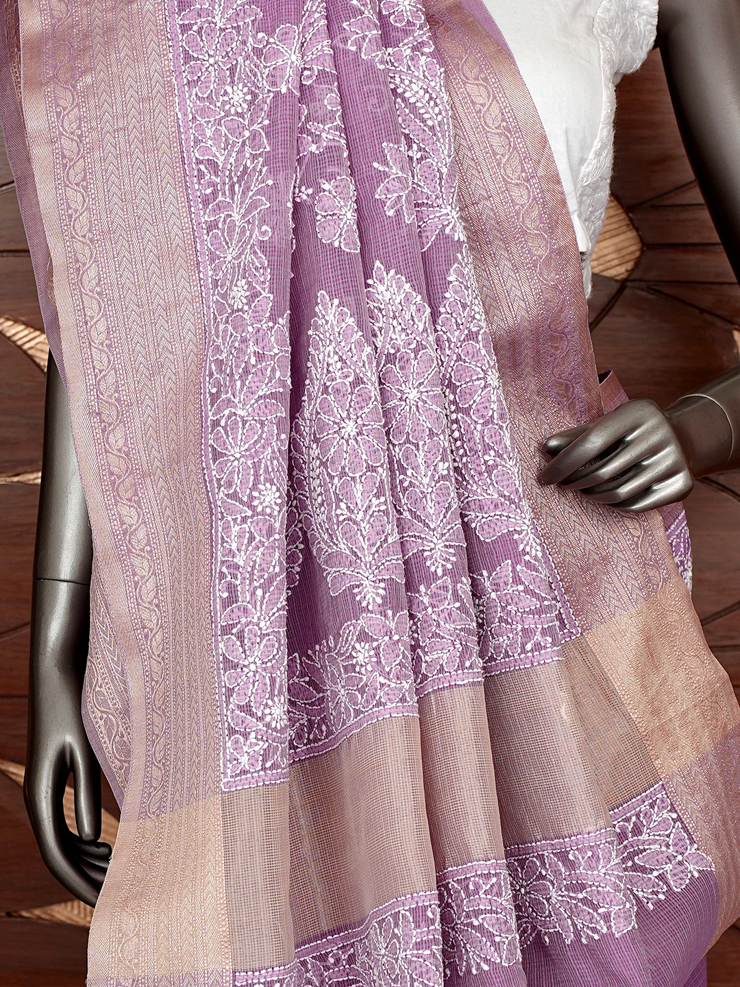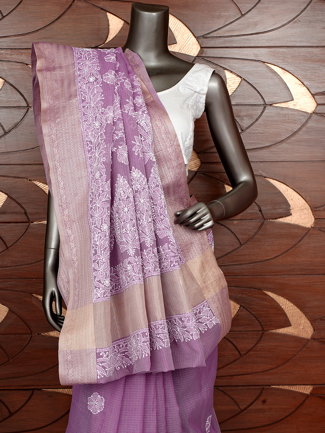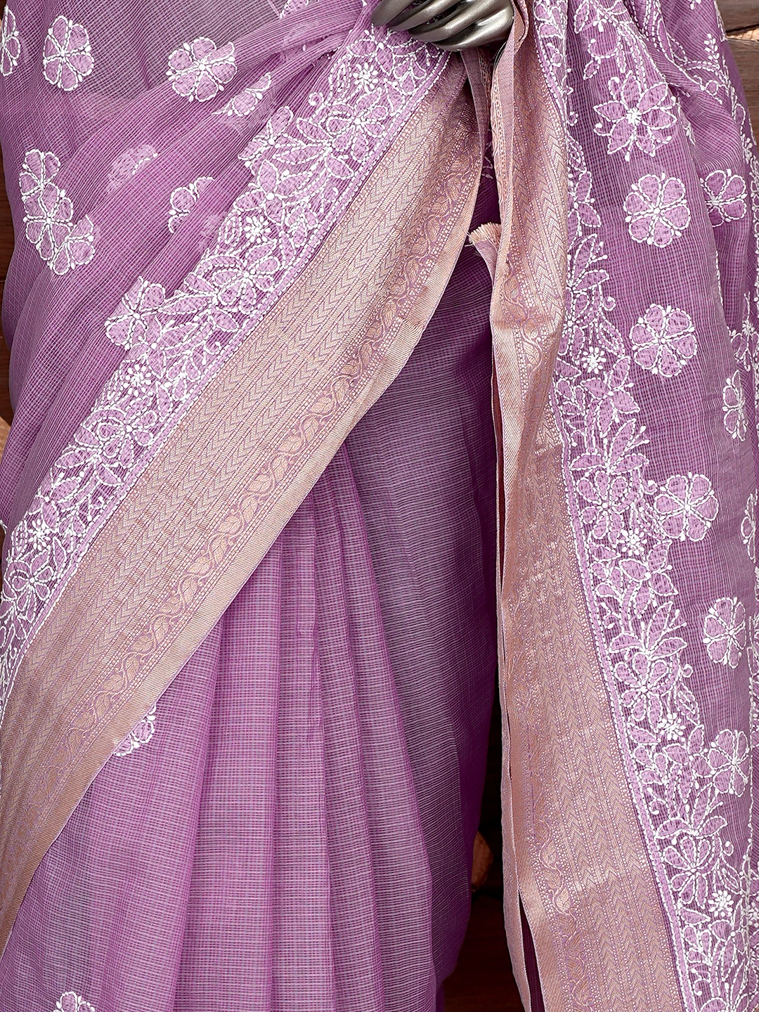 Ada Hand Embroidered Mauve Chanderi Lucknowi Chikankari Saree With Blouse 01A863328