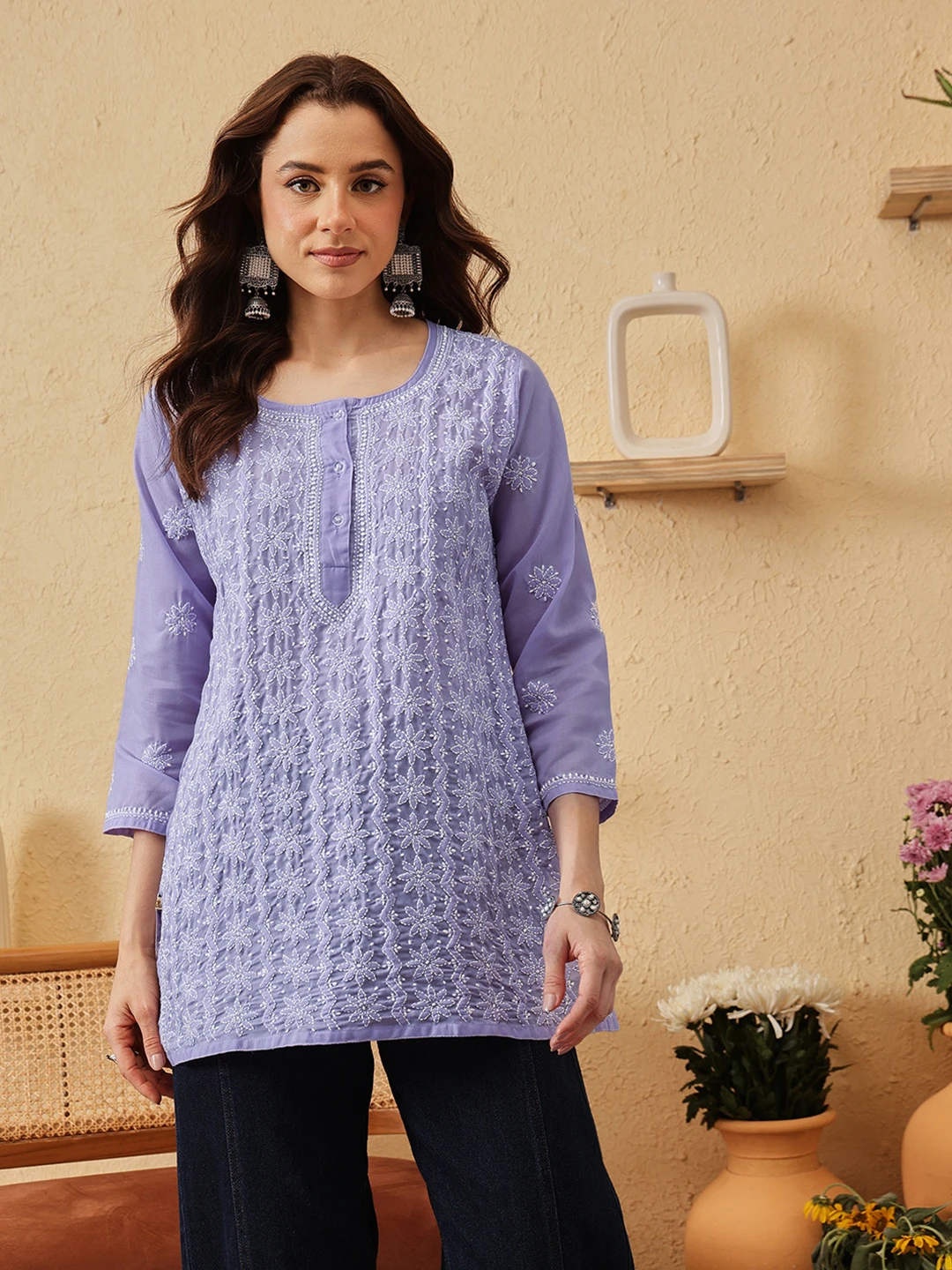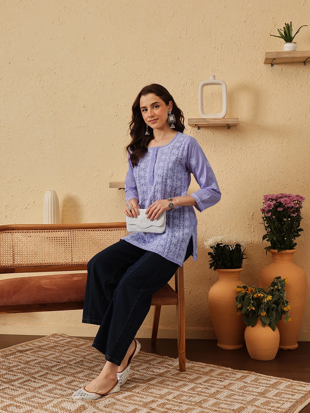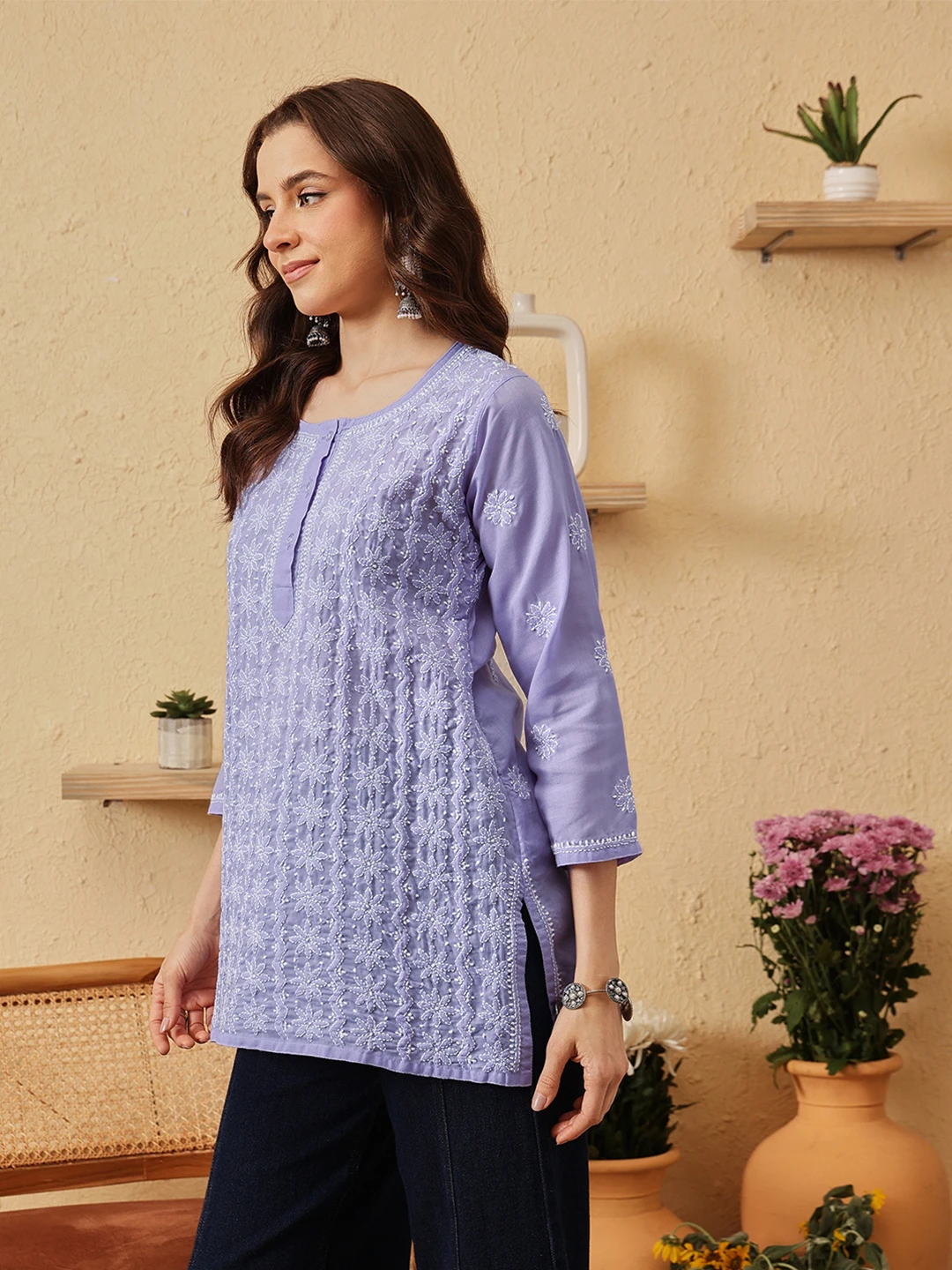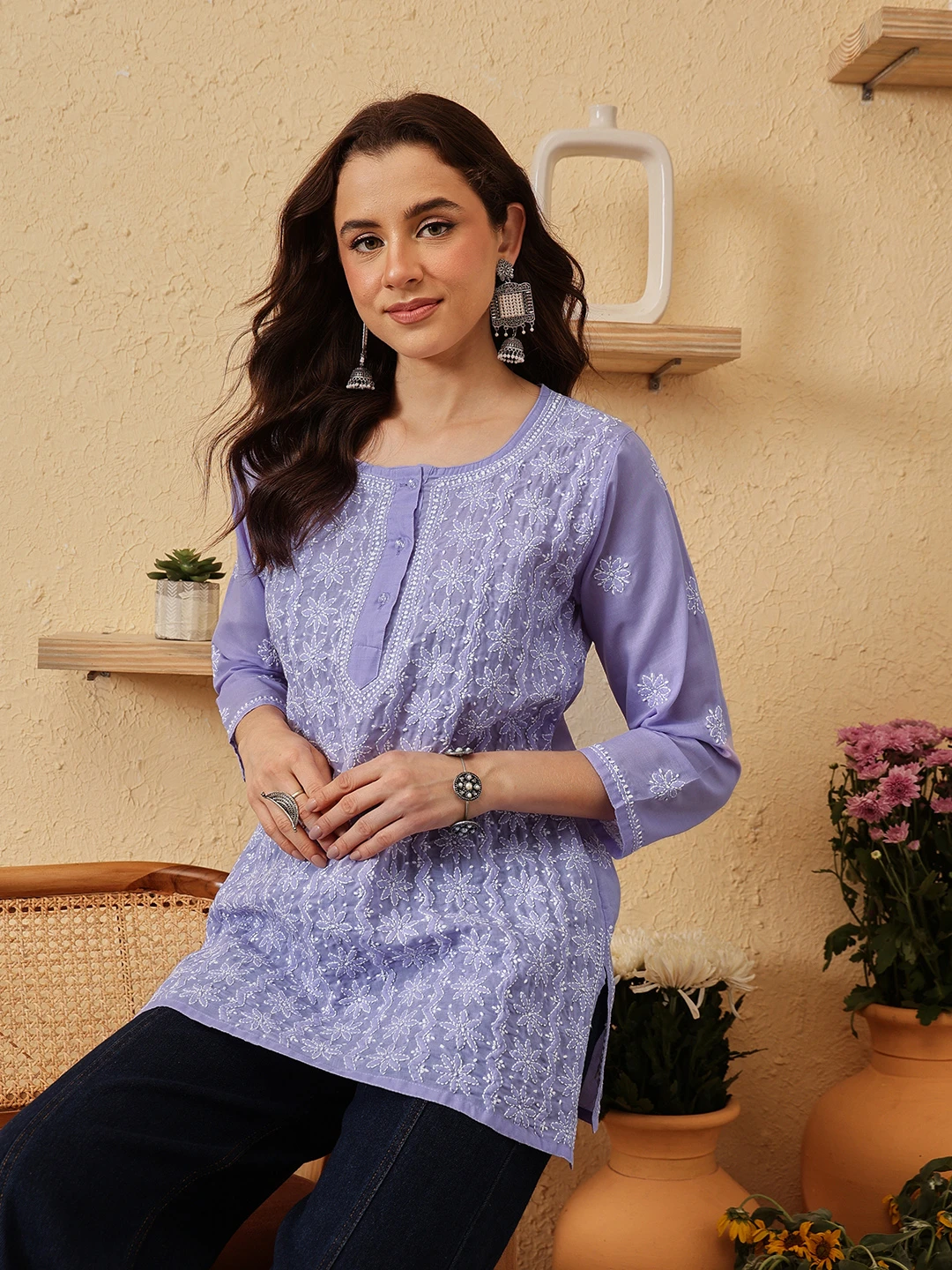 Ada Hand Embroidered Mauve Cotton Lucknowi Chikankari Short Kurti A911530