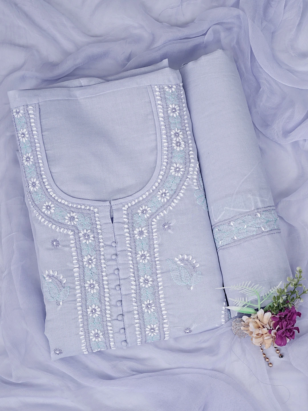 Ada Hand Embroidered Mauve Cotton Lucknowi Chikankari Unstitched Suit Piece 01A879769