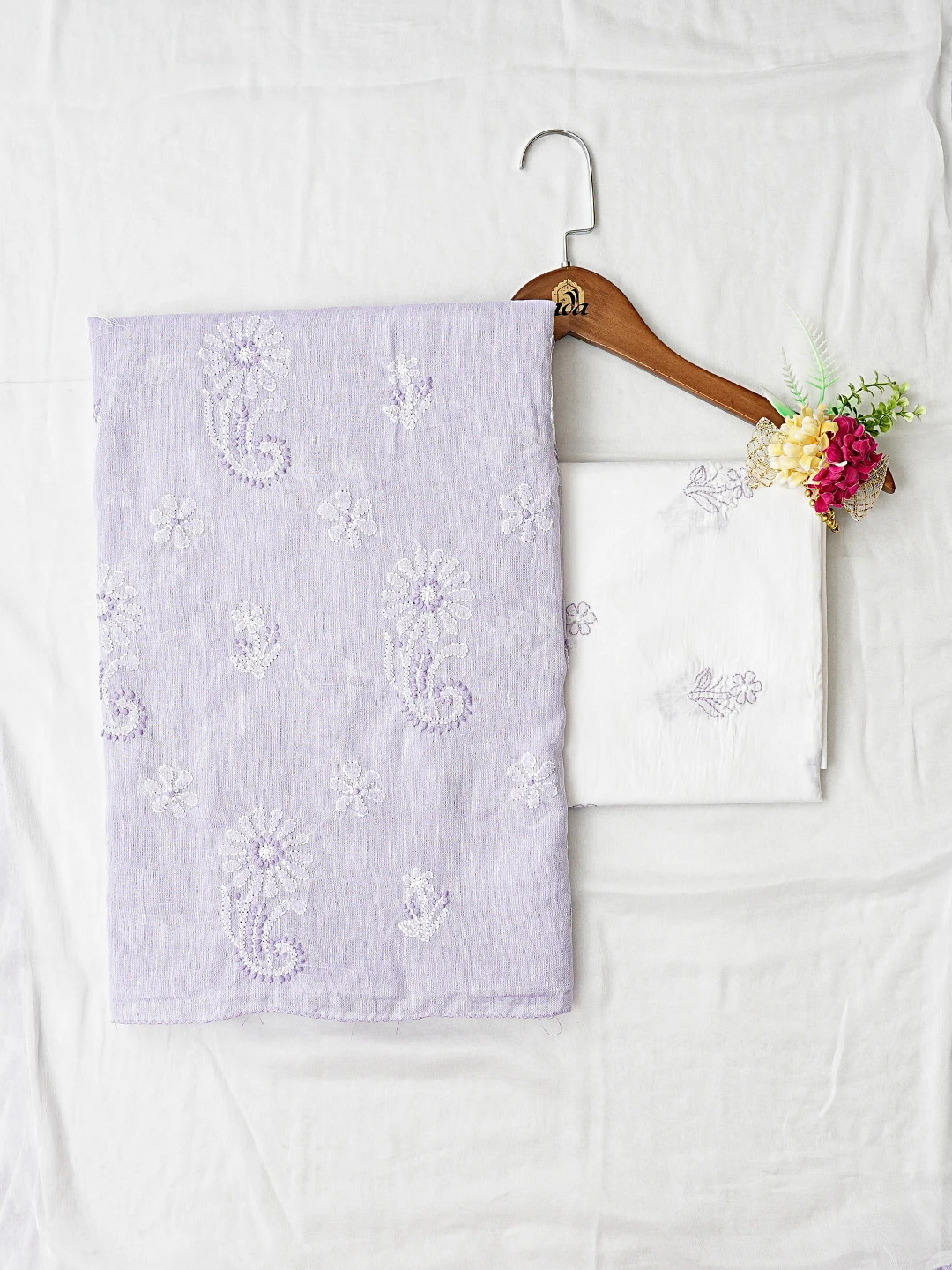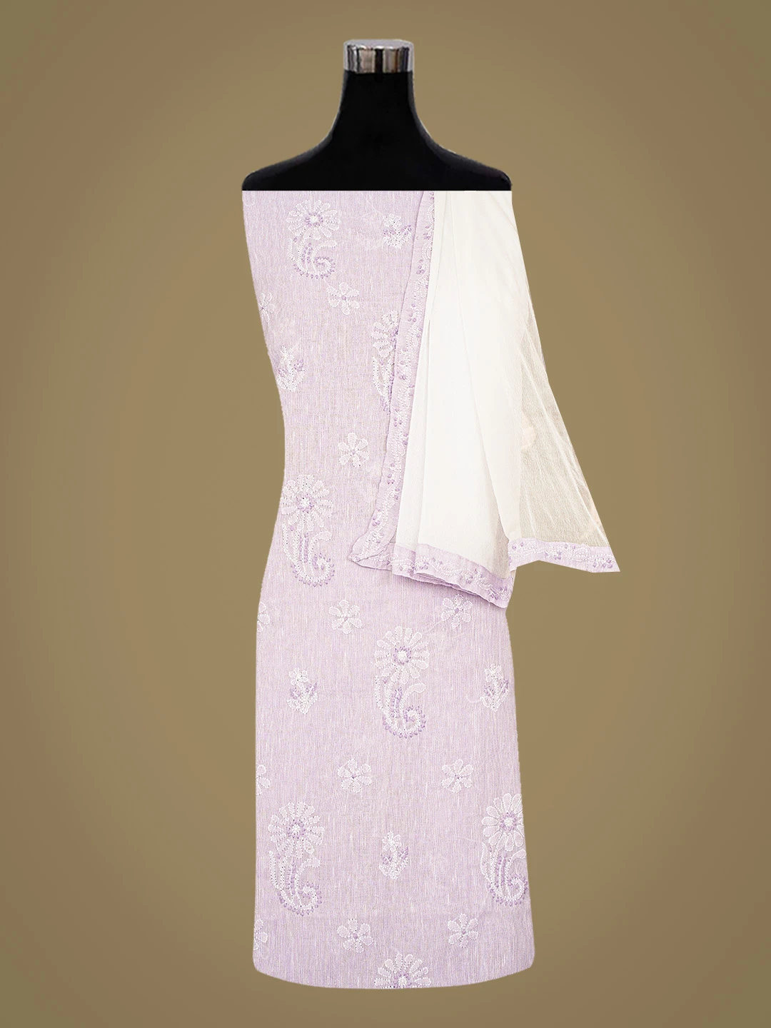 Ada Hand Embroidered Mauve Linen Lucknowi Chikankari Unstitched Suit Piece 01A867683